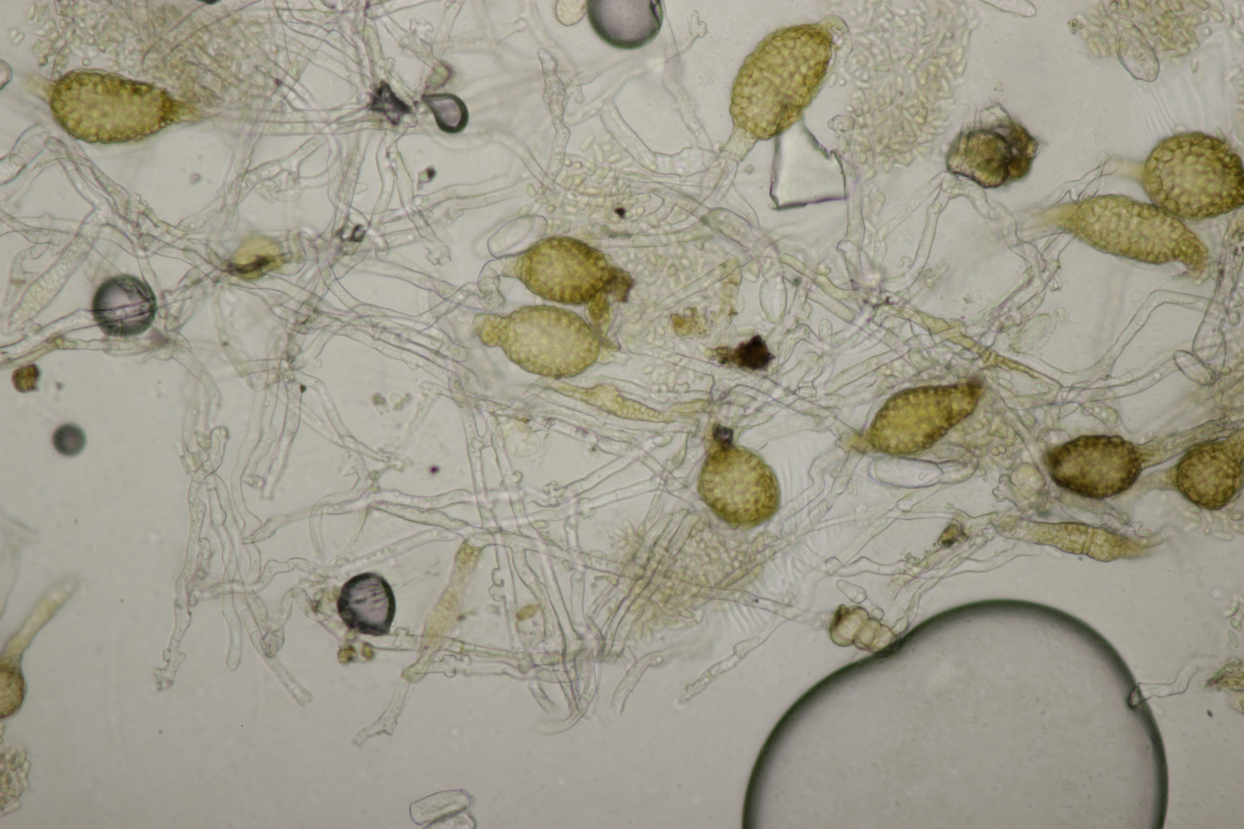 4. Pseudoidium hortensiae ex Hydrangea sp. Außerdem Ampelomyces quisqualis als Hyperparasit auf dem Mehltau.