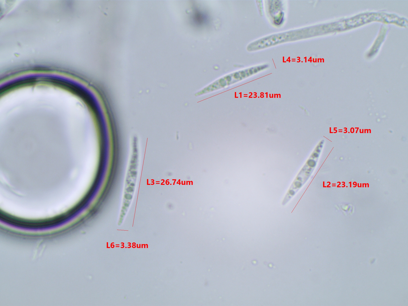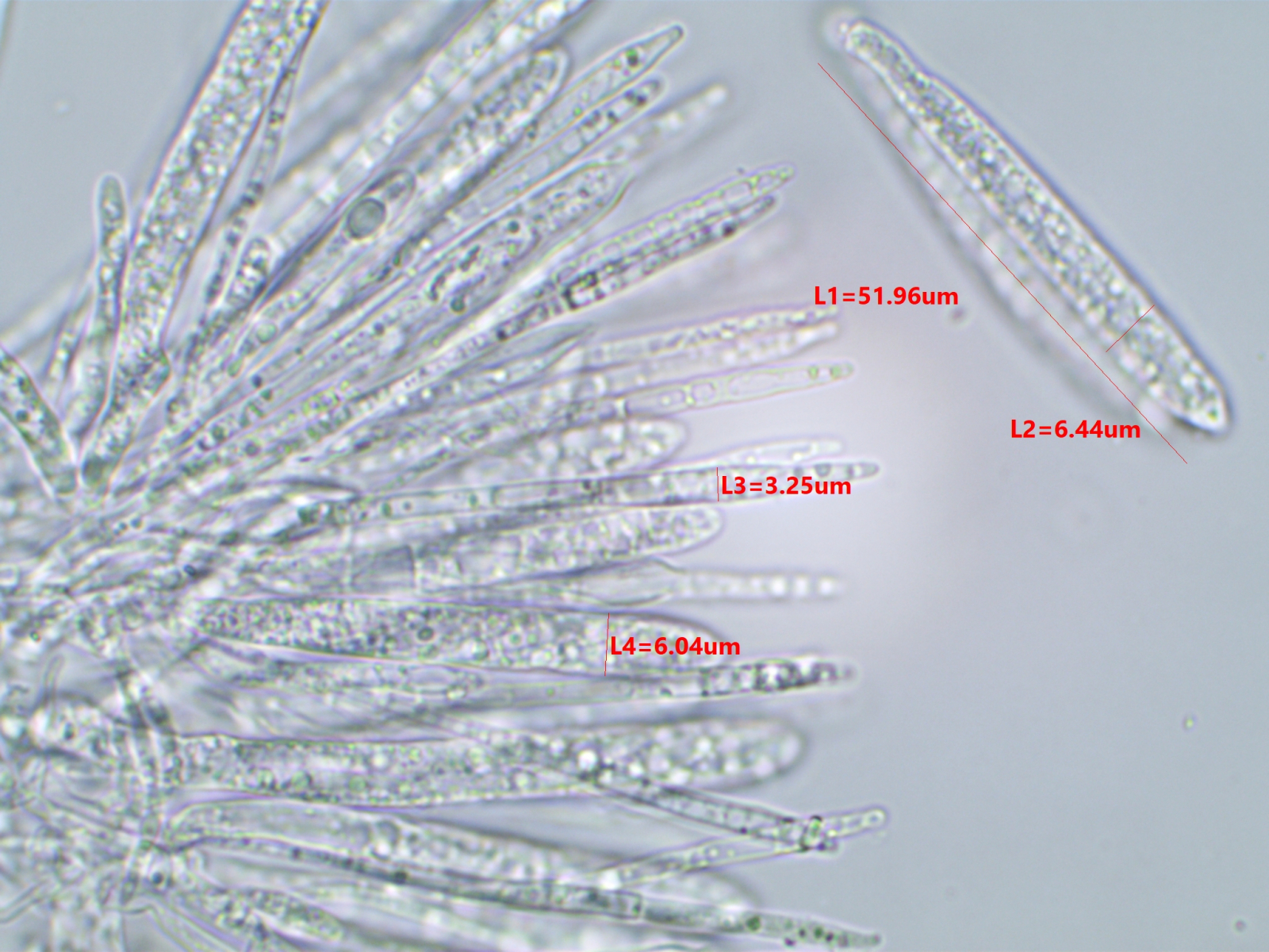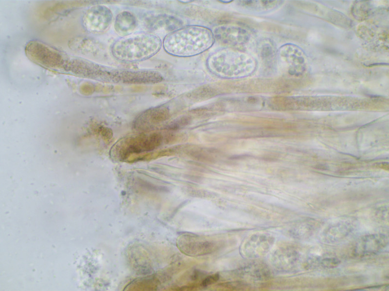 Paraphysen mit gelbem Inhalt, an der Spitze leicht verdickt bis ca. 6my