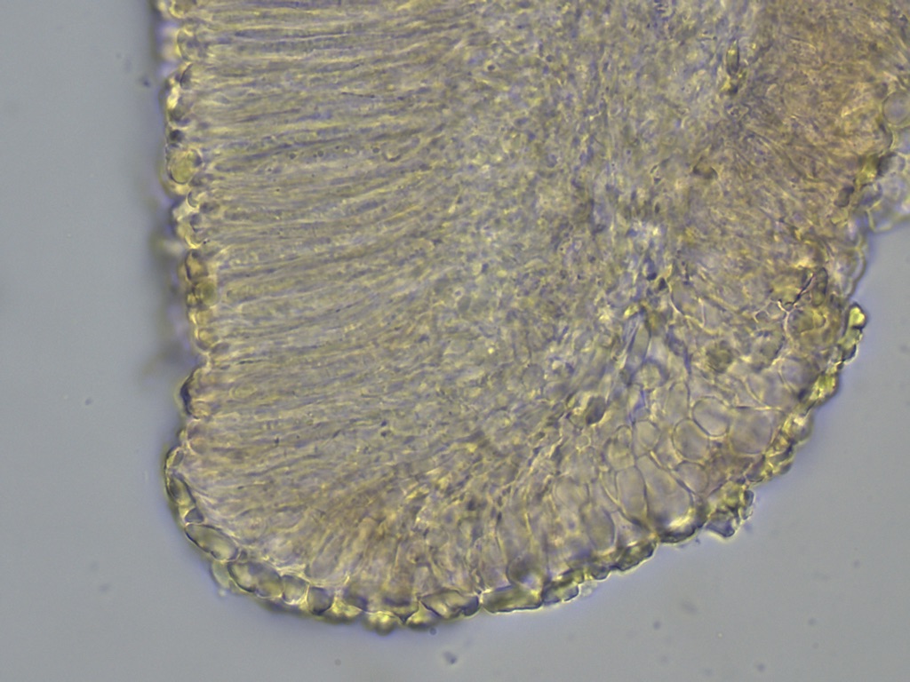 Subhymenium, Medullary Excipulum, Ectal Excipulum, Bindehyphen (von oben nach unten)