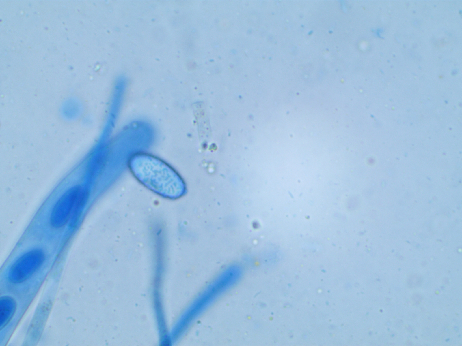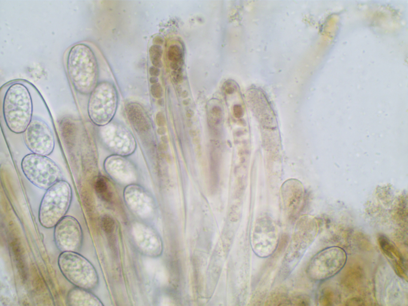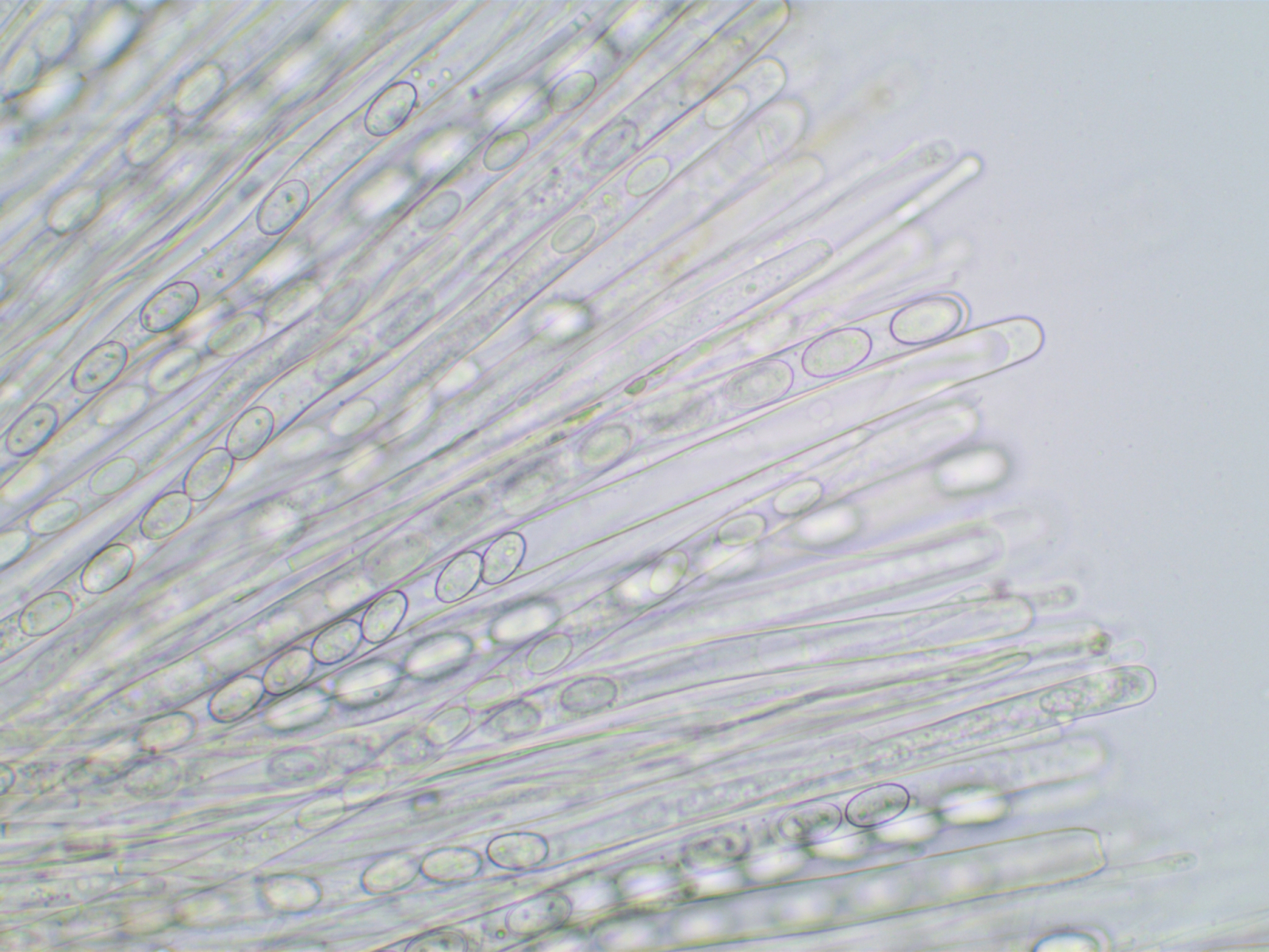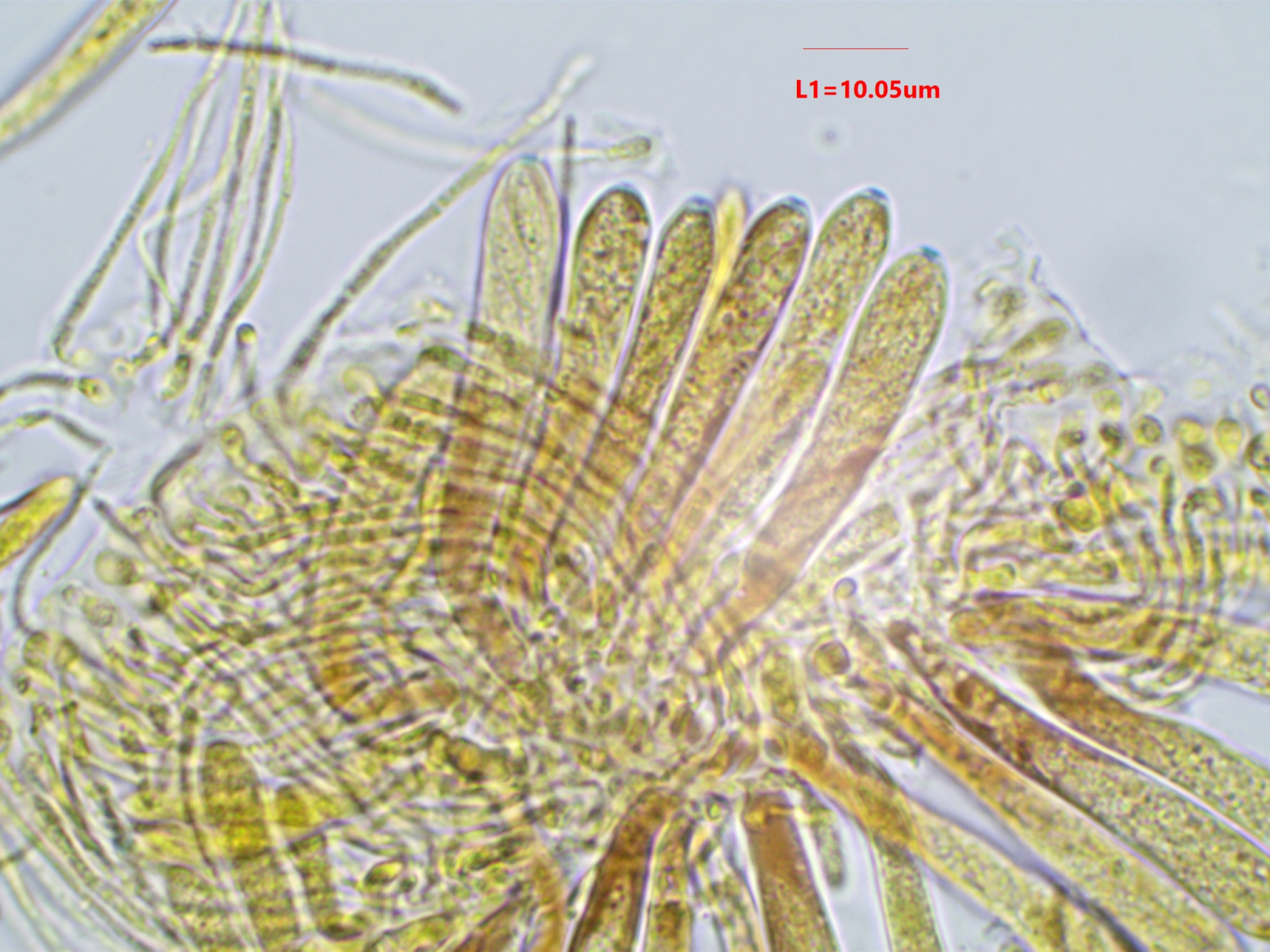 Paraphysen mit gelbem Inhalt, an der Spitze leicht verdickt bis ca. 6my