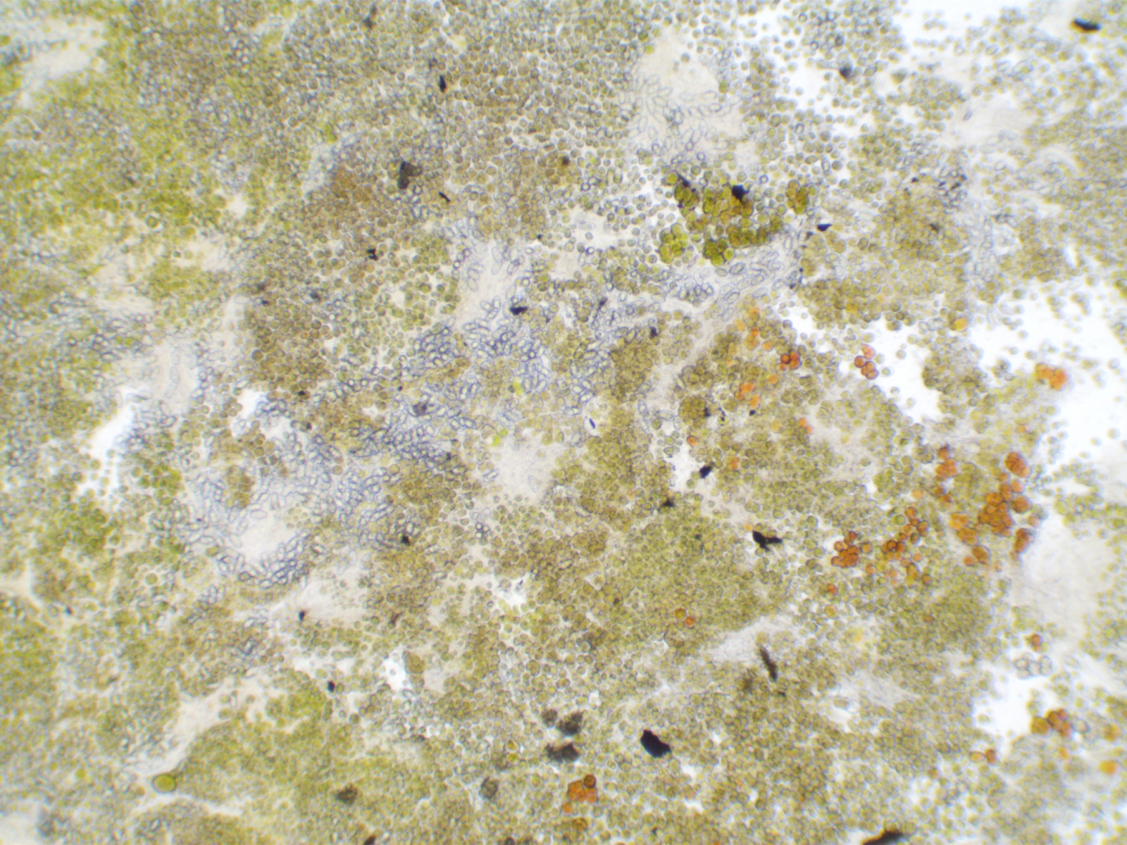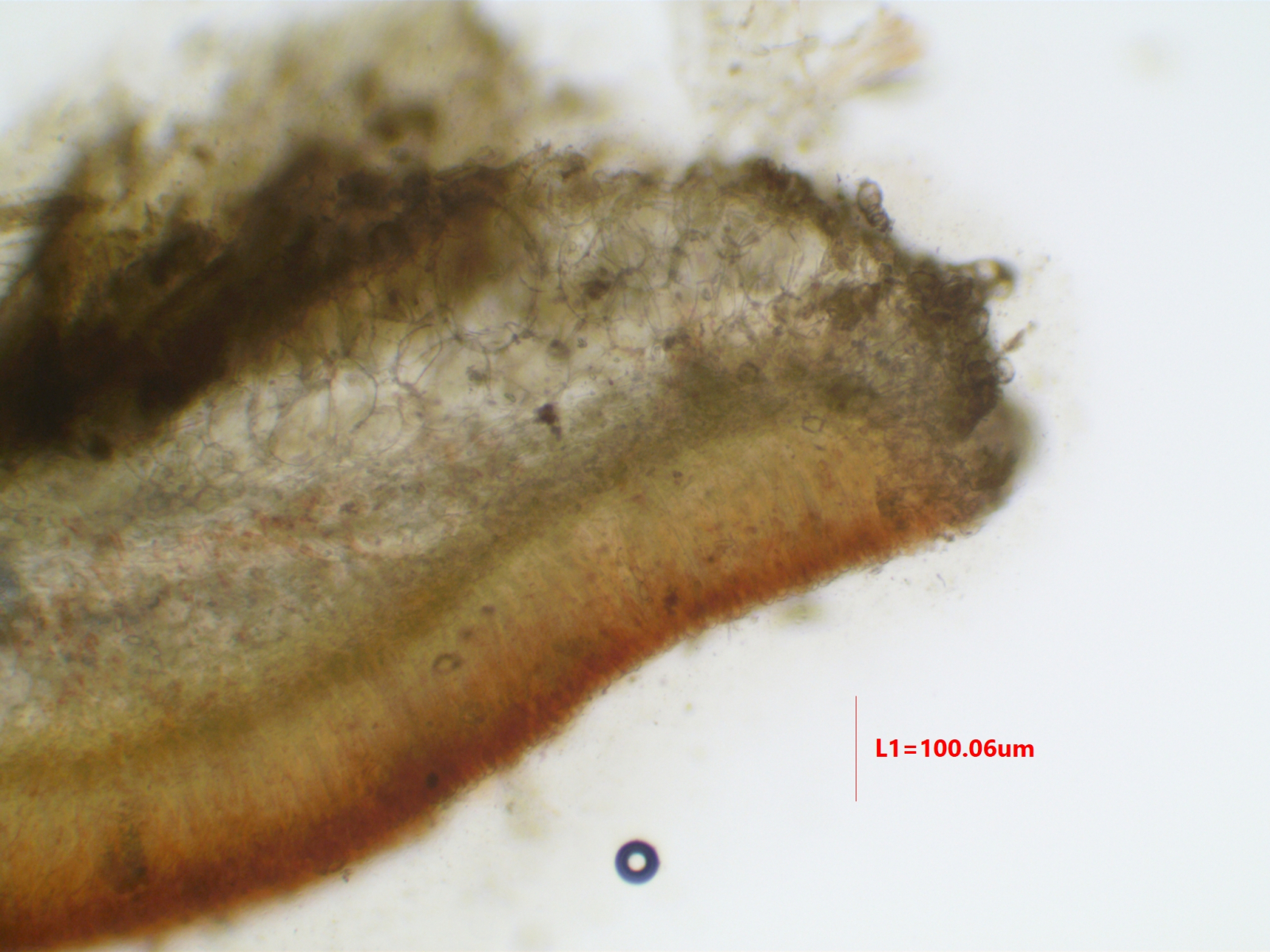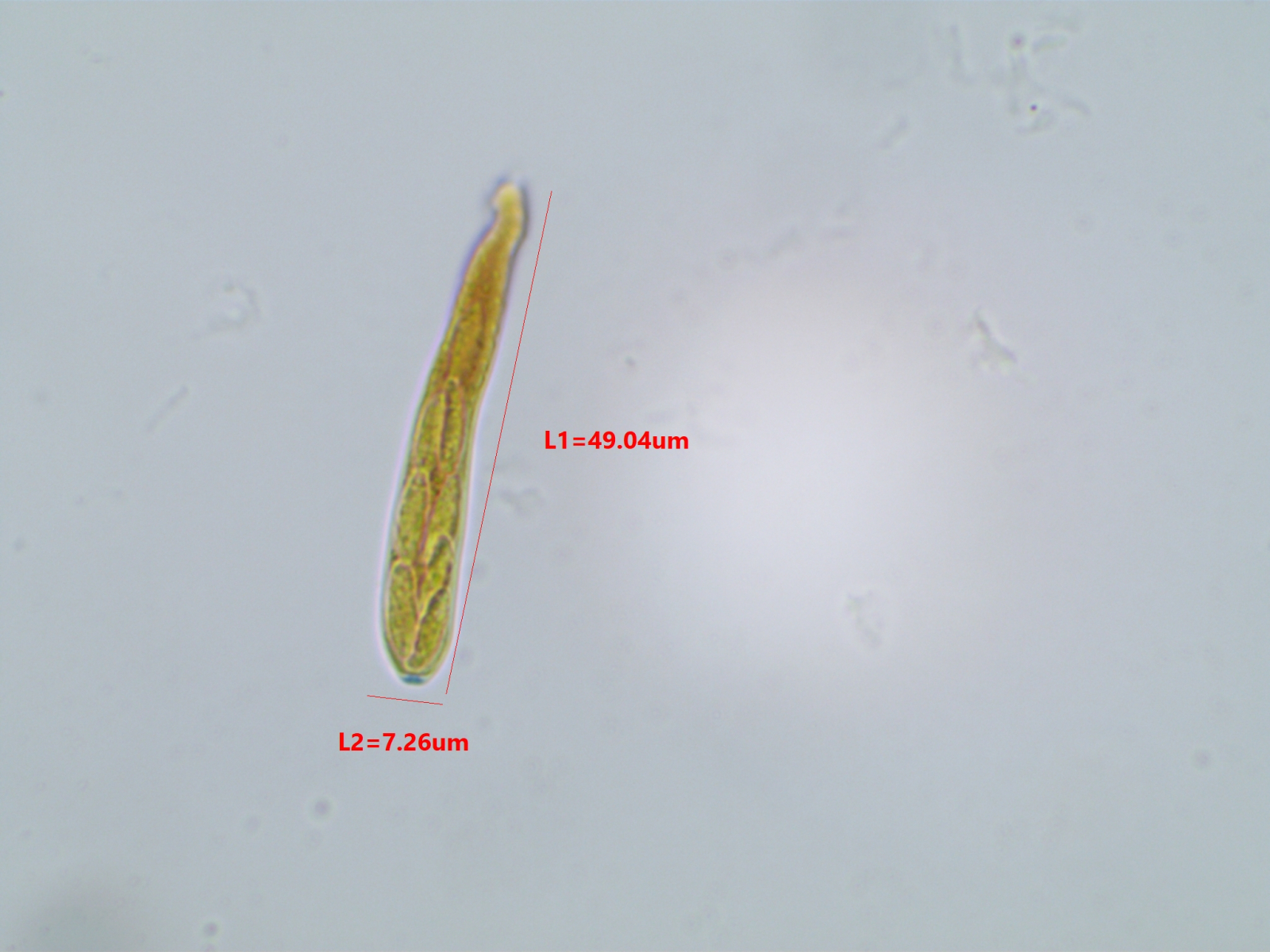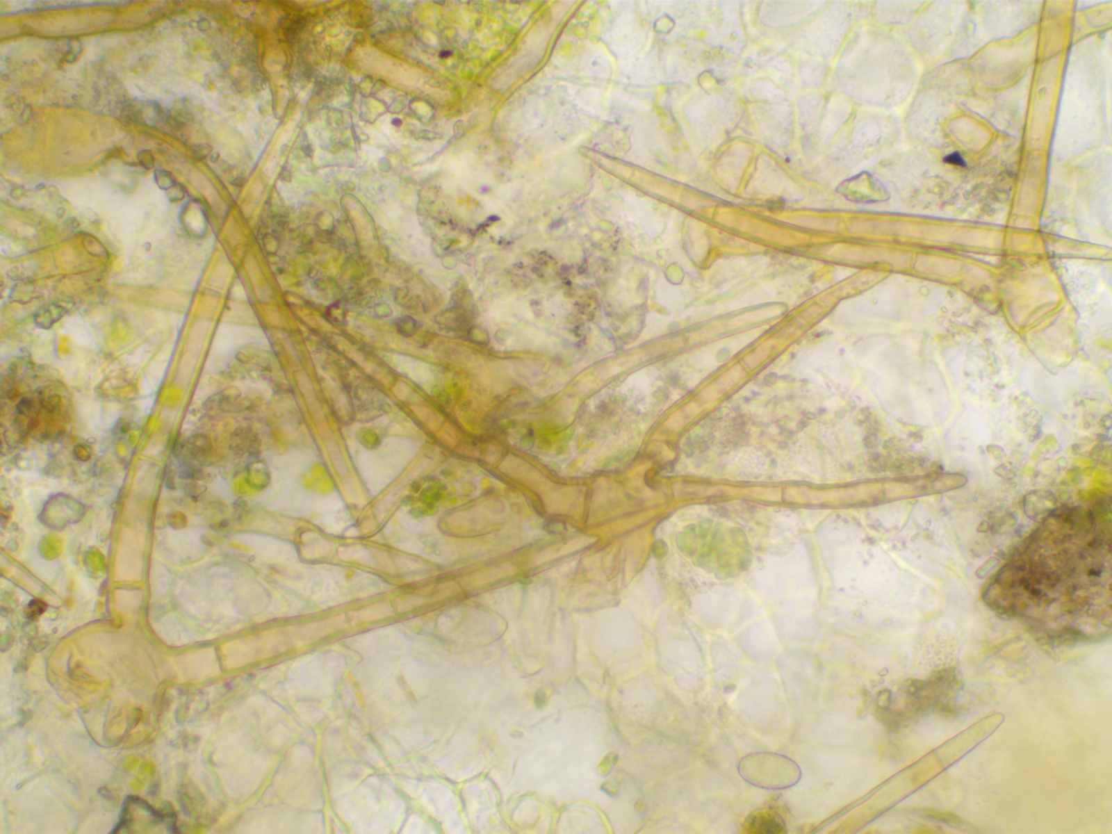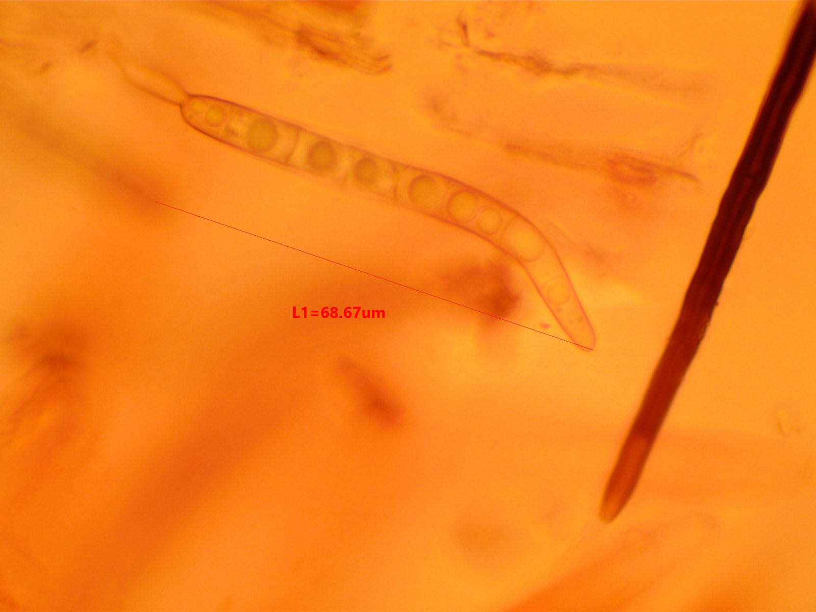 Paraphysen mit gelbem Inhalt, an der Spitze leicht verdickt bis ca. 6my