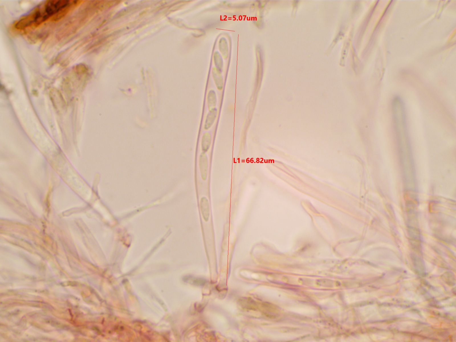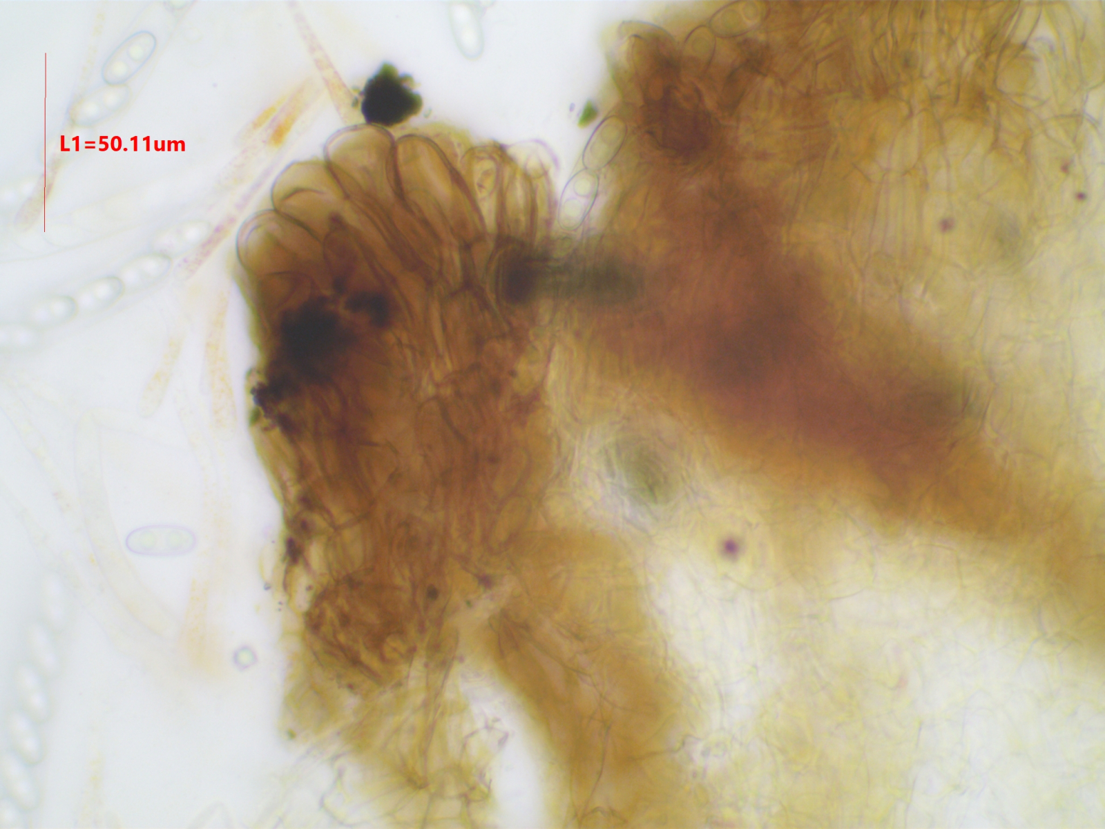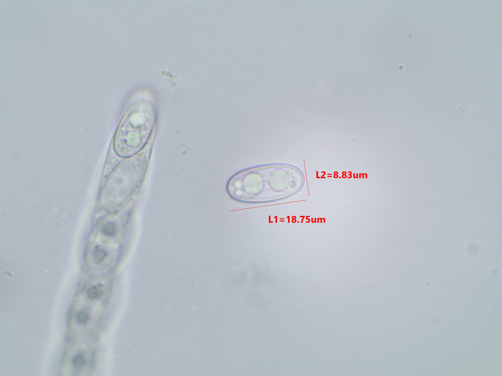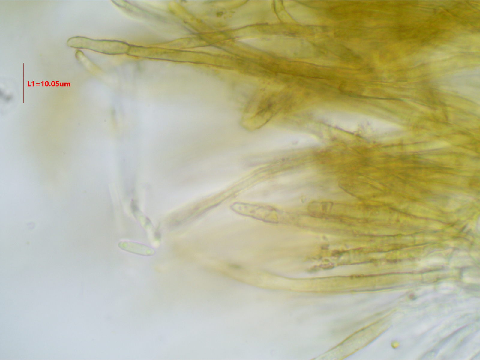 Die Sporen sind ca. 14-15x8, die Iodreaktion ist sehr undeutlich und nur bei leeren Asci zu sehen, was ja eigentlich passen würde.