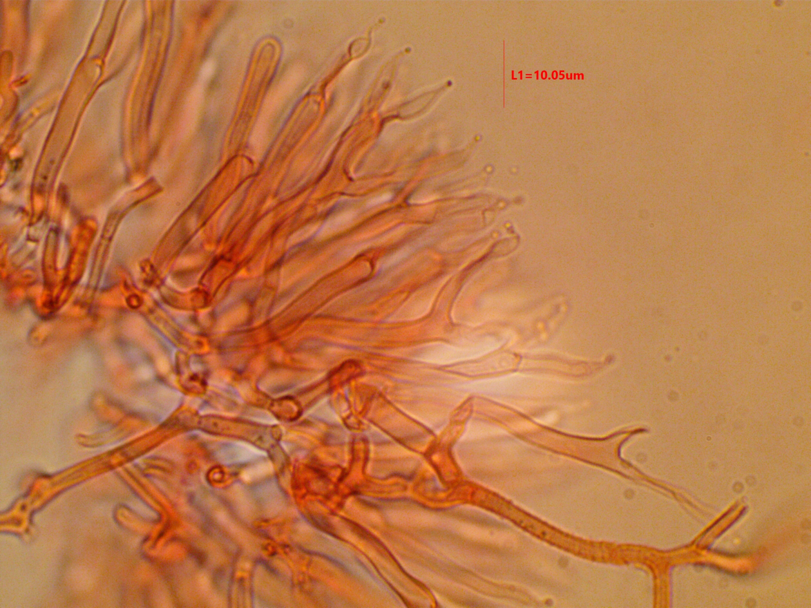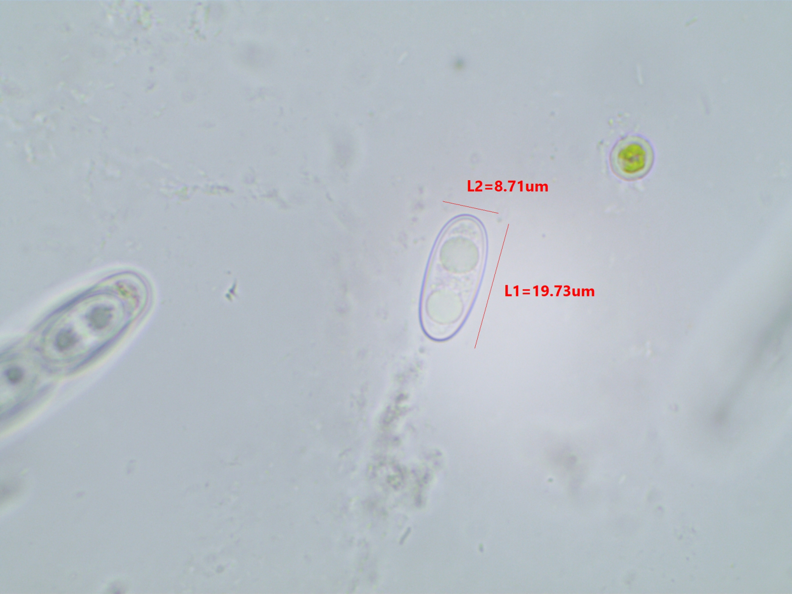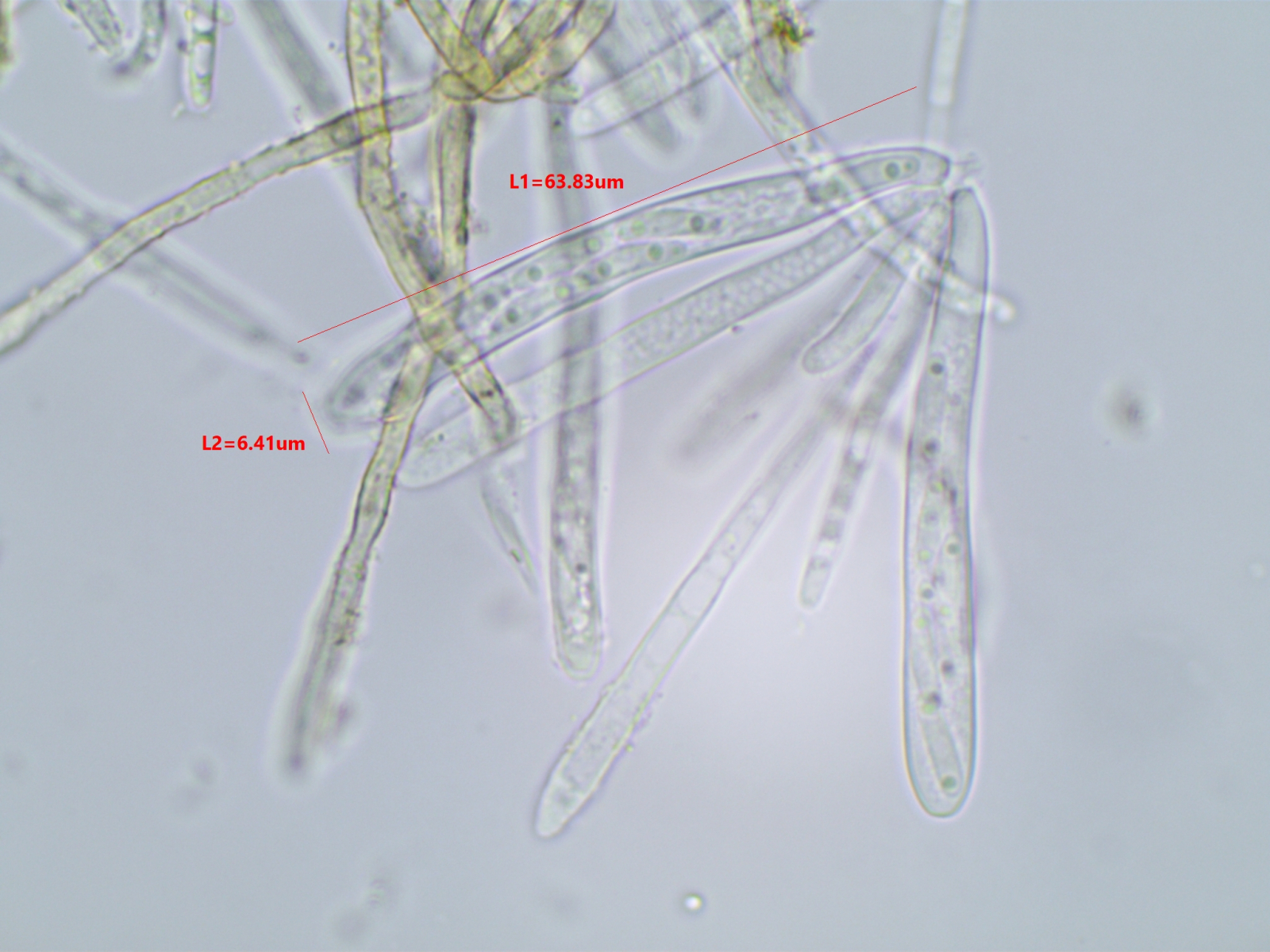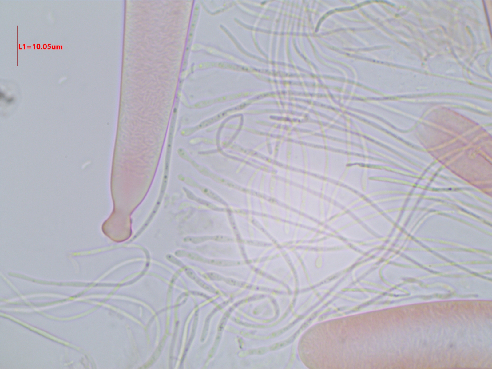 Die Sporen sind ca. 14-15x8, die Iodreaktion ist sehr undeutlich und nur bei leeren Asci zu sehen, was ja eigentlich passen würde.