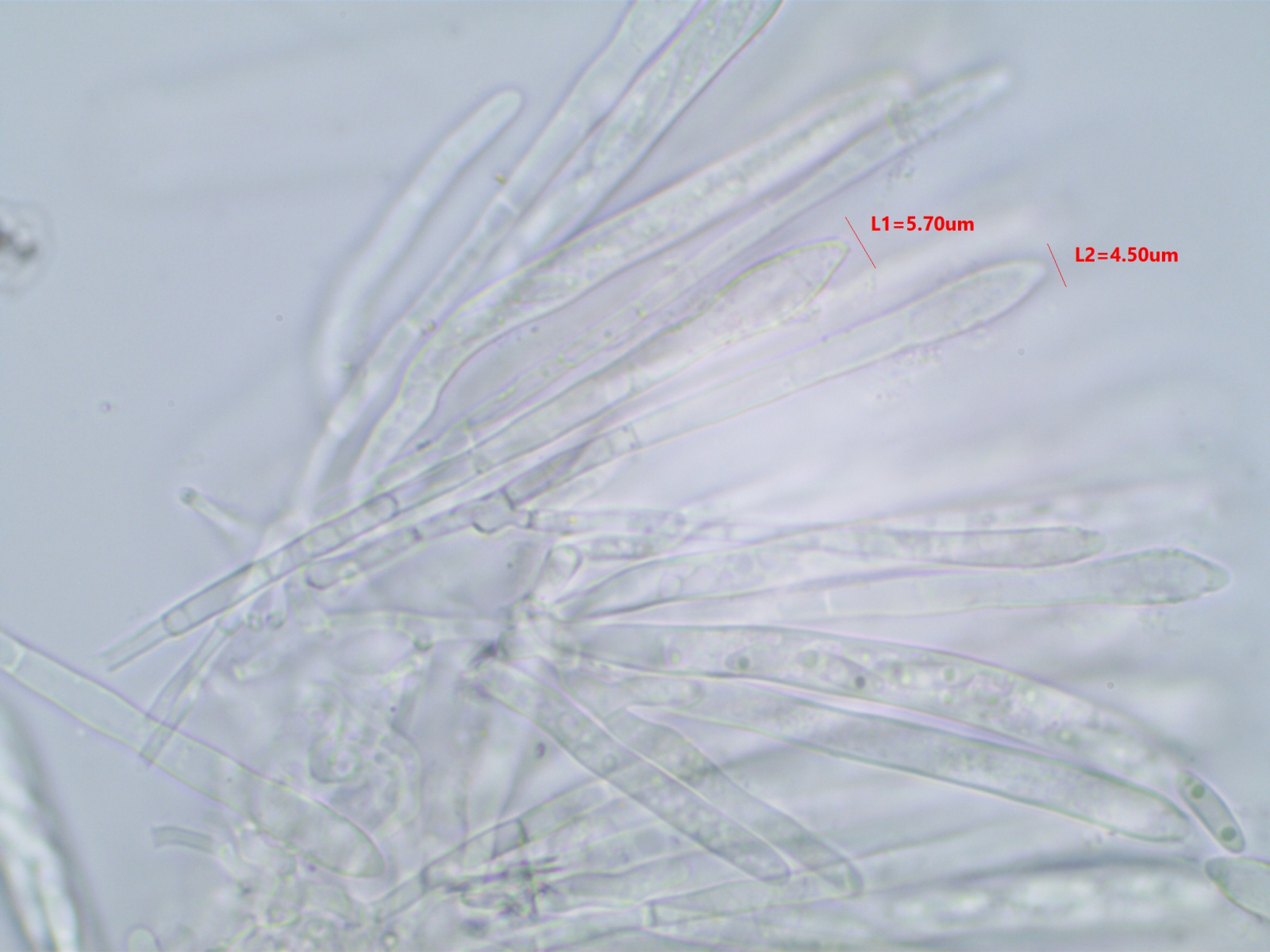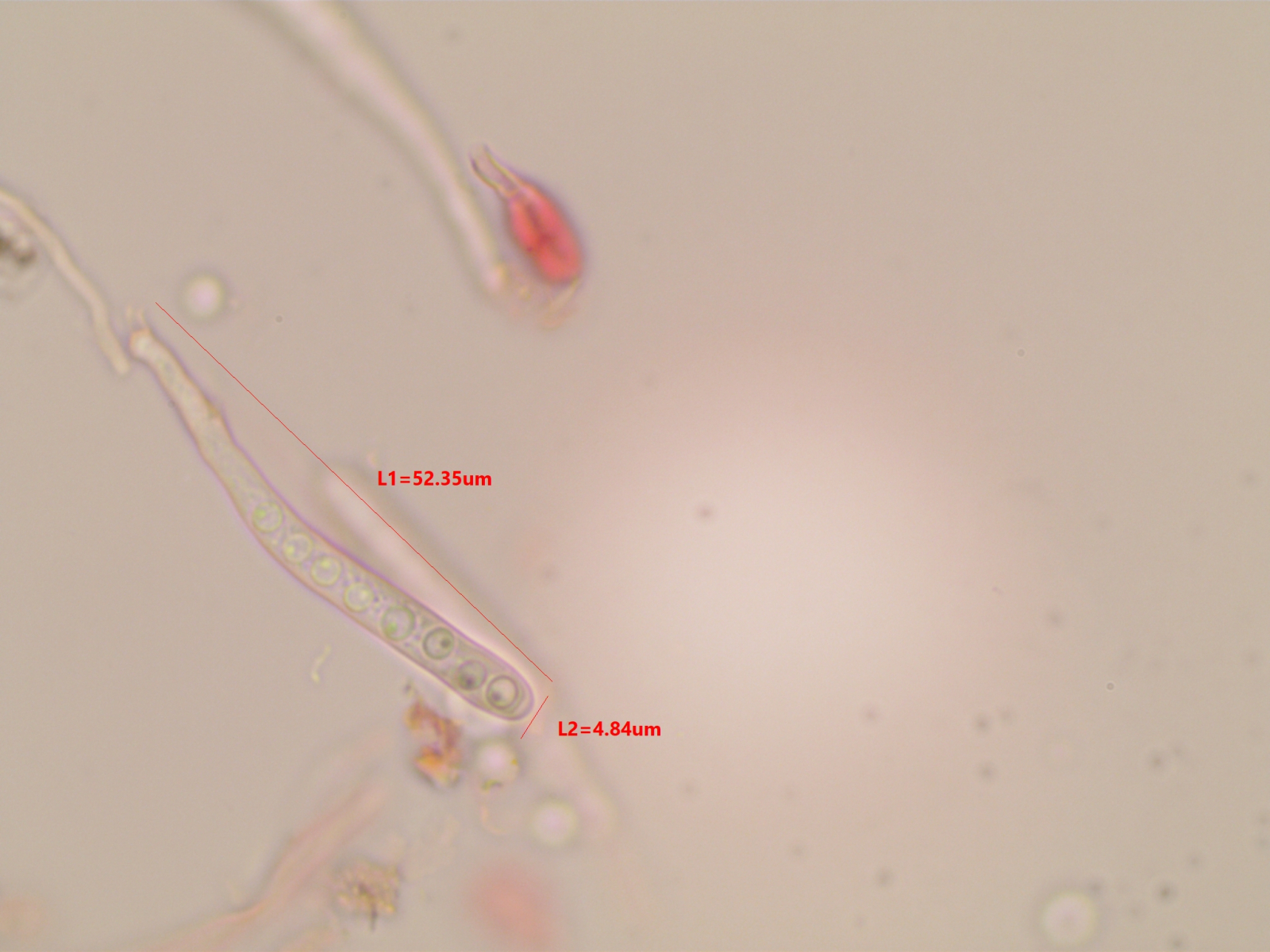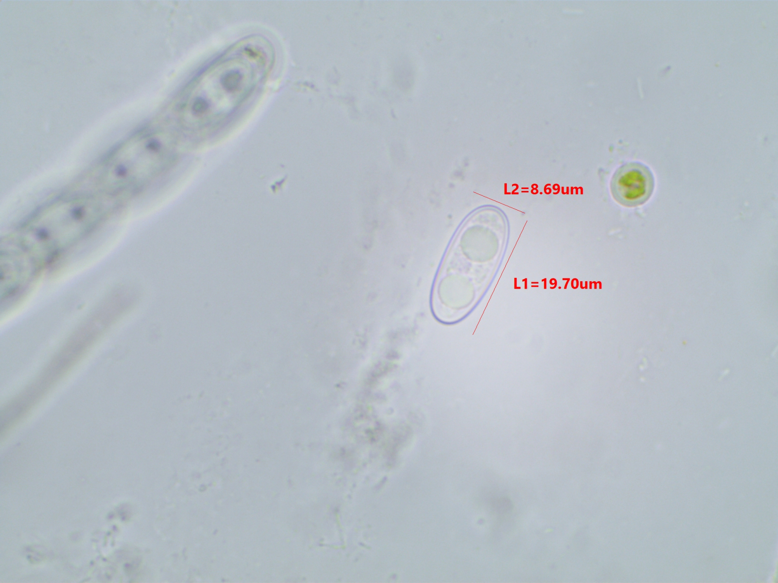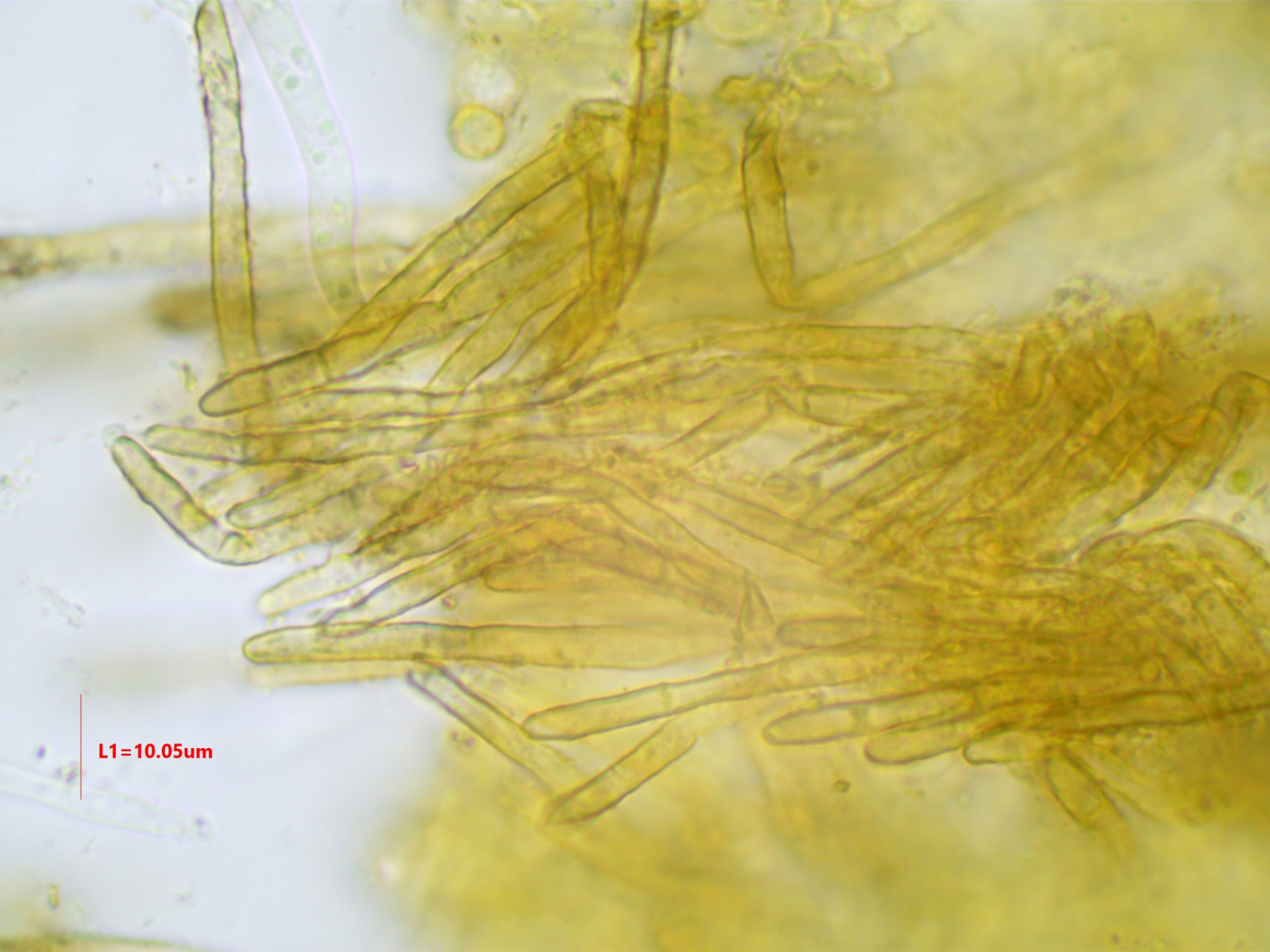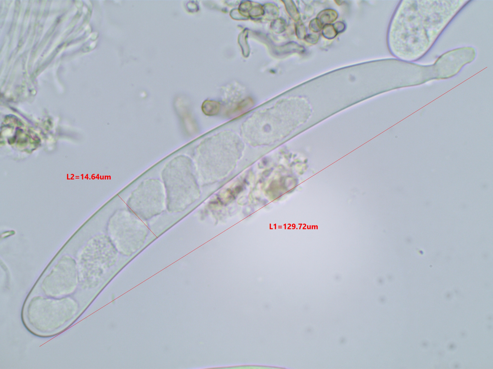 Die Sporen sind ca. 14-15x8, die Iodreaktion ist sehr undeutlich und nur bei leeren Asci zu sehen, was ja eigentlich passen würde.