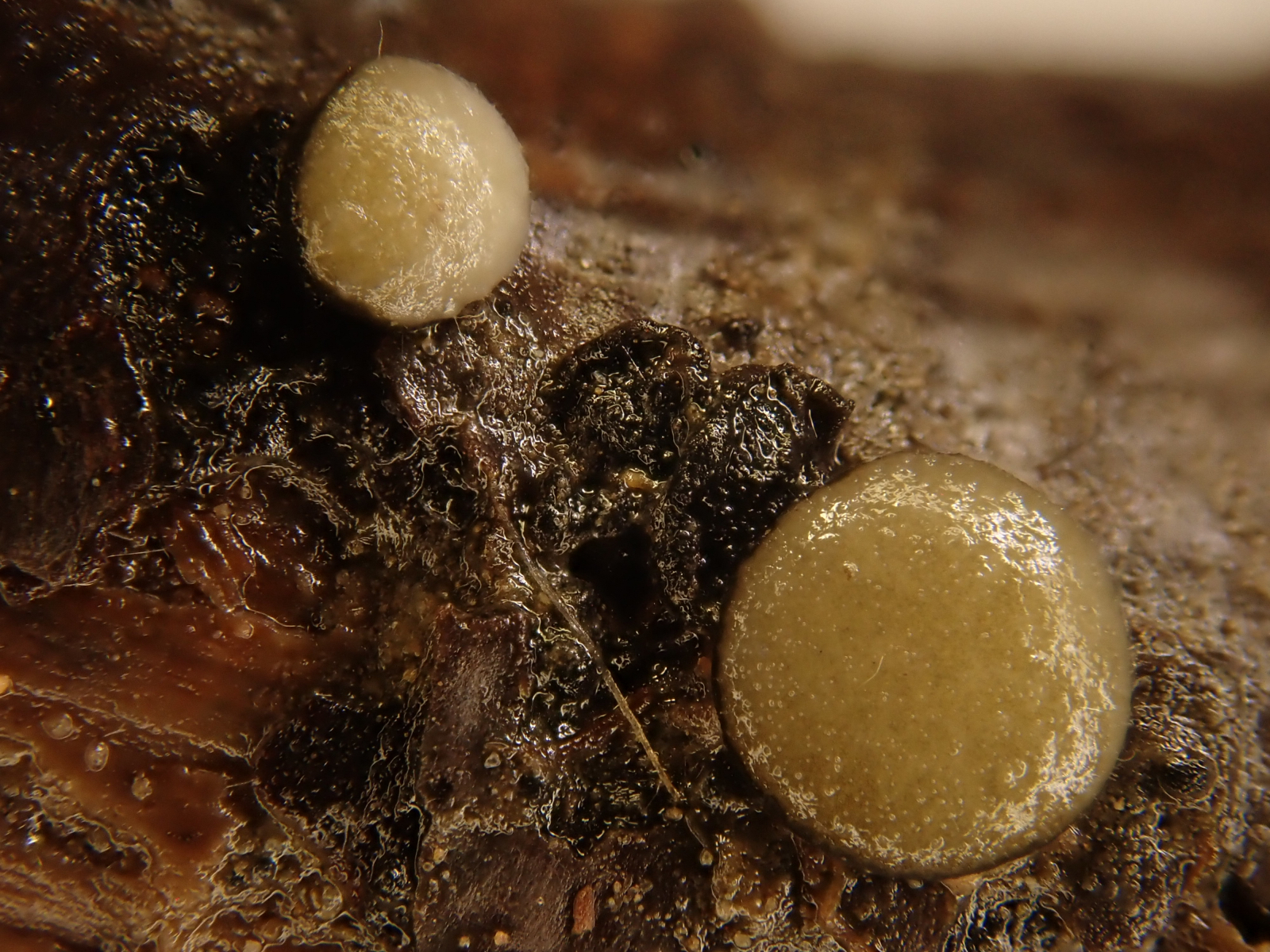 Am 16. August habe ich in einer Studienwoche einen Pilz gefunden, der auf den ersten Blick aussah wie Petrakia liobae (siehe oben). Allerdings war die Wirtspflanze nicht Buche sondern Grünerle. Ich habe dann etwas im Internet recherchiert und bin darauf gekommen, dass es sich um Mycopappus alni handeln könnte. Mein Bekannter beim WSL fand das so interessant, dass ich ihm auf dem Heimweg direkt eine Probe zum sequenzieren abgeliefert habe. Ich habe nicht nochmals nachgefragt, aber da mein Fund mittlerweile im Verbreitungsatlas als Mycopappus alni eingetragen ist gehe ich davon aus dass bei der Sequenzierung nichts anderes herausgekommen ist.