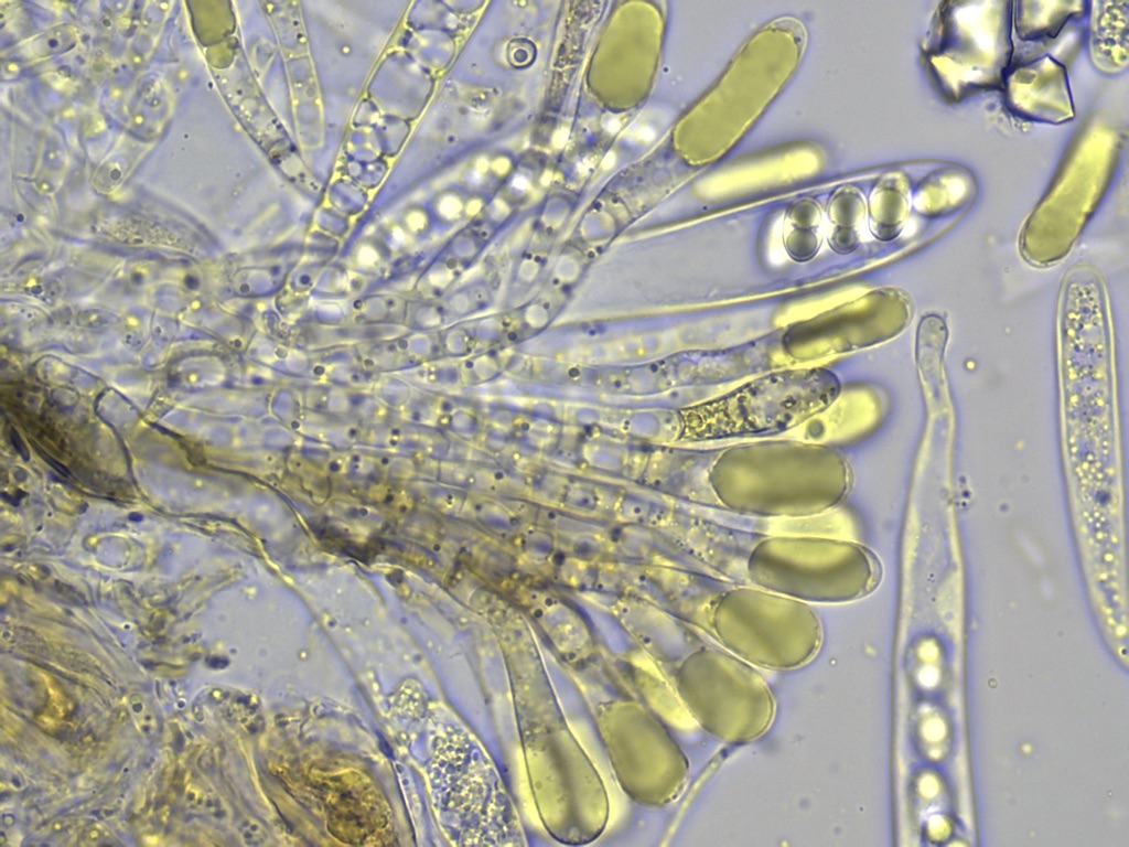 Mich irritiert es etwas, dass ich in einem Fruchtkörper Paraphysen gefunden habe, die gegabelt sind. Davon steht in meiner Literatur nichts.