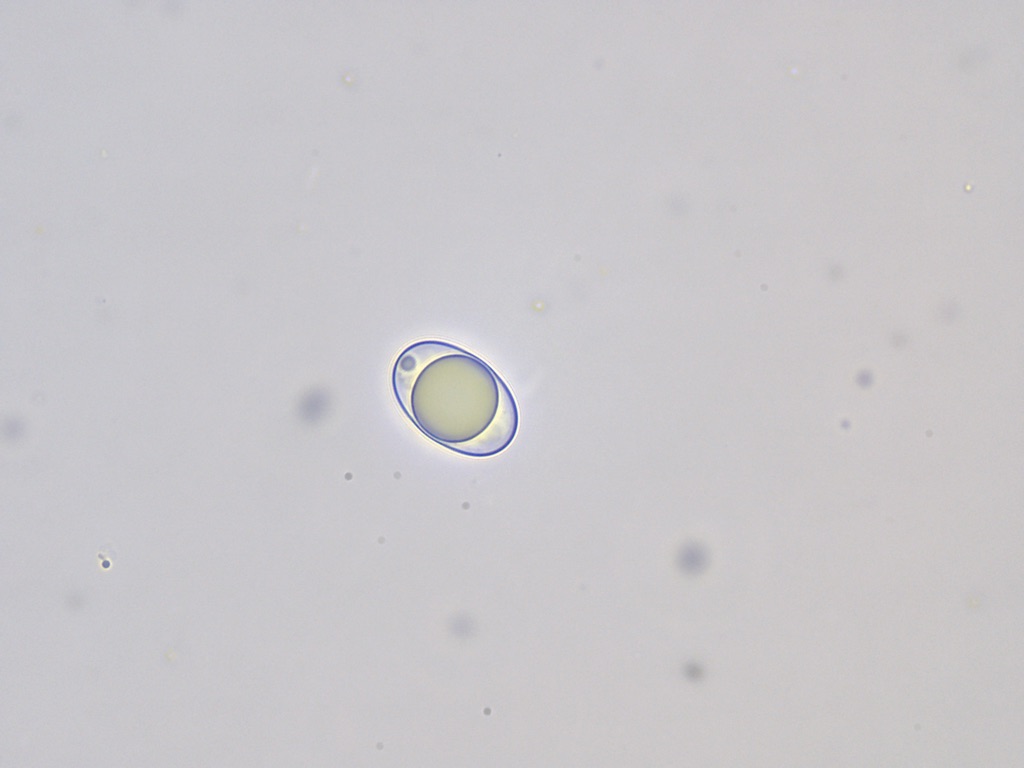 Sporenabwurf in Wasser. Sporen elipsoidisch, schwach asymetrisch, mit 2 Nuclei