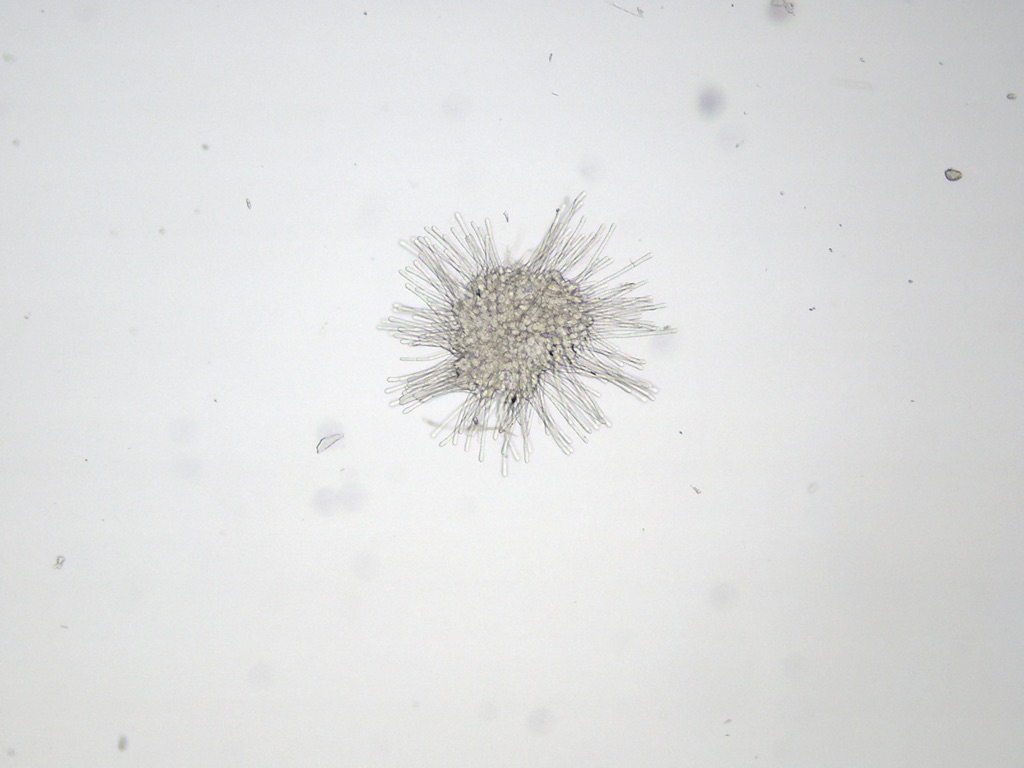 Die kräftigen Haare und die schlanken, nahezu spindeligen Sporen charakterisieren die Art sehr gut.