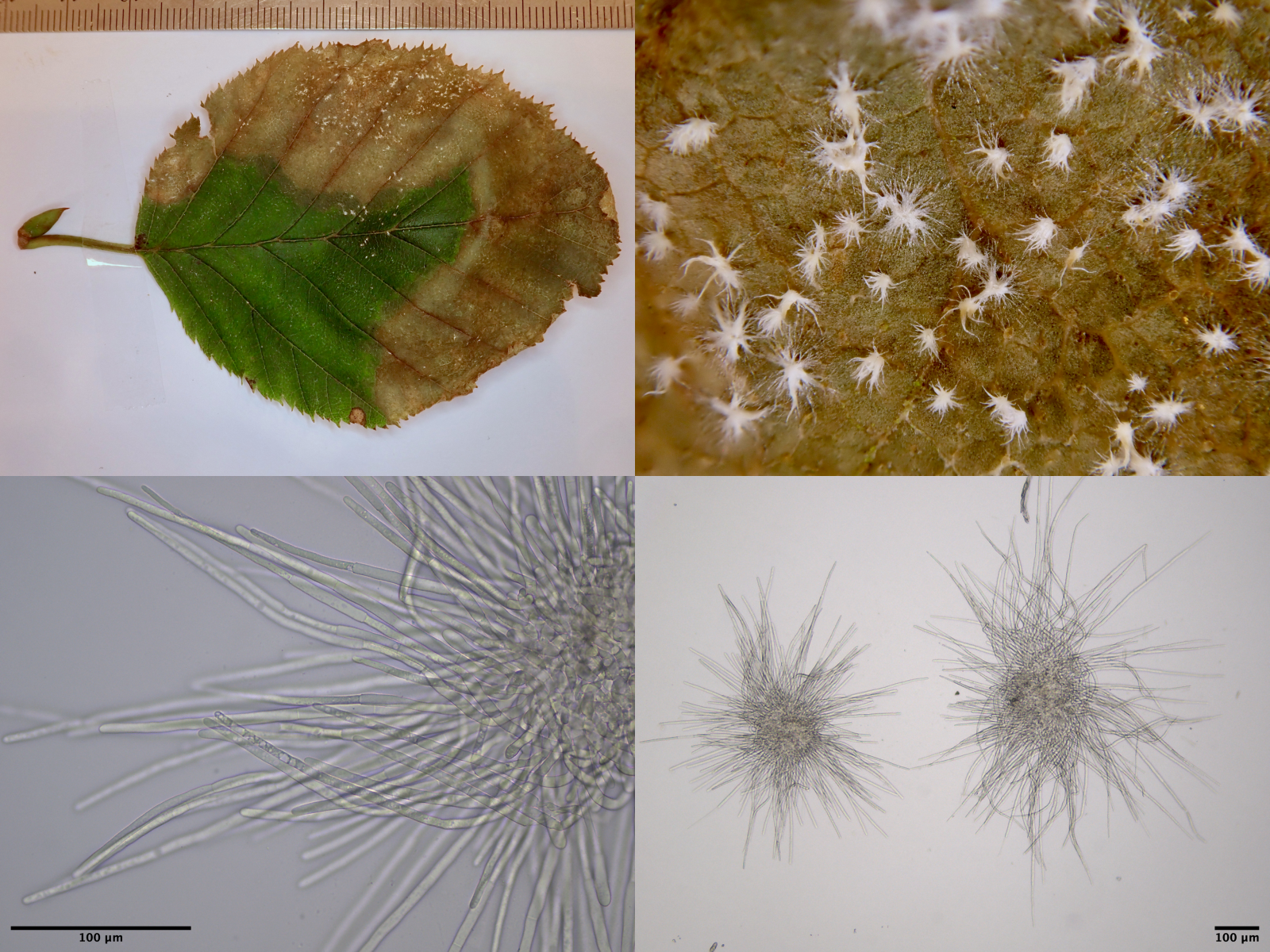 Petrakia liobae. Der breitet sich hier auf Buchen rasant aus. Im Sommer werden auf den Blättern Diasporen/Propagulen gebildet worauf der Baum die befallenen Blätter verliert. Im Frühling wird dann in der Streuschicht der Telemorph gebildet den ich weiter oben mal gezeigt habe.