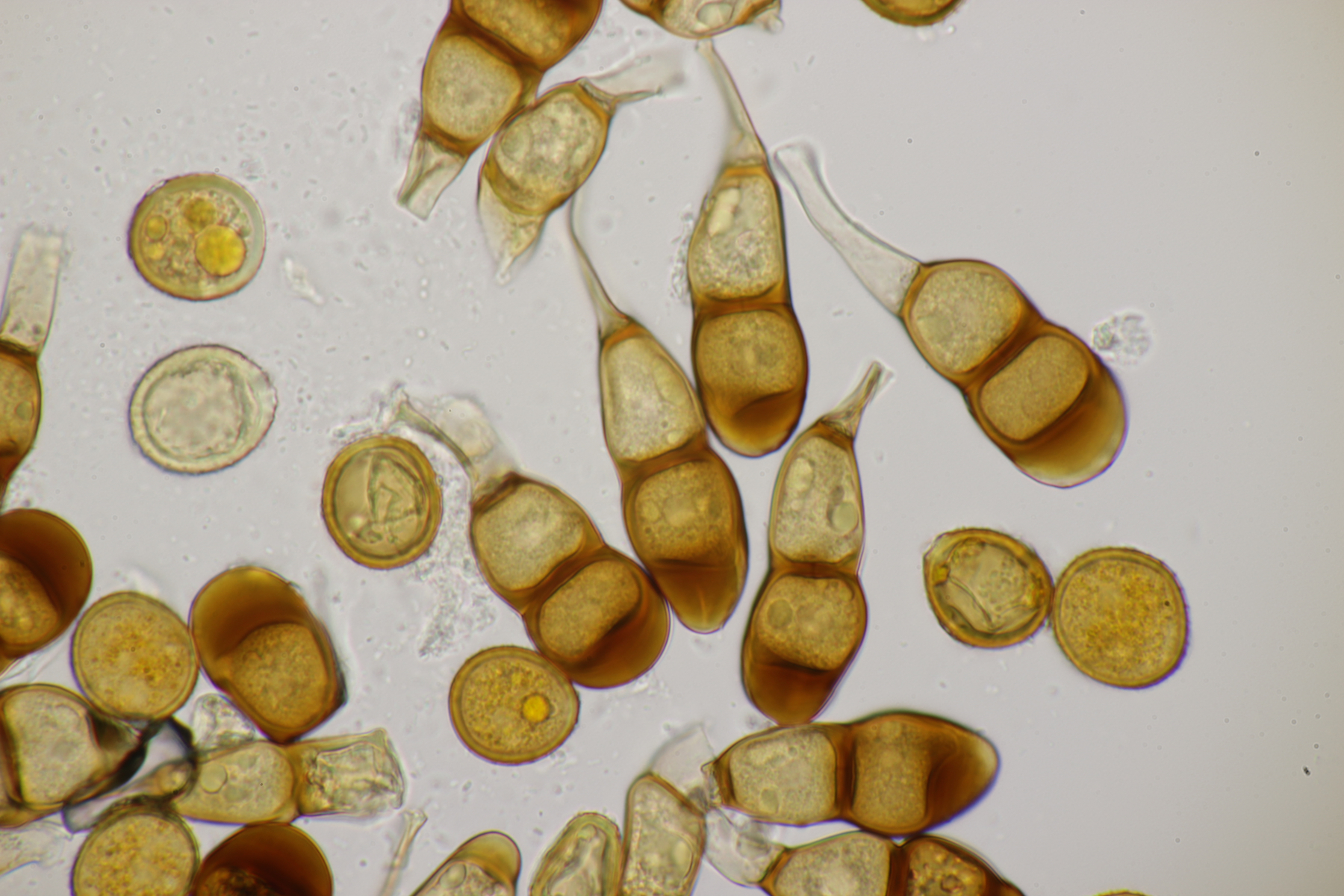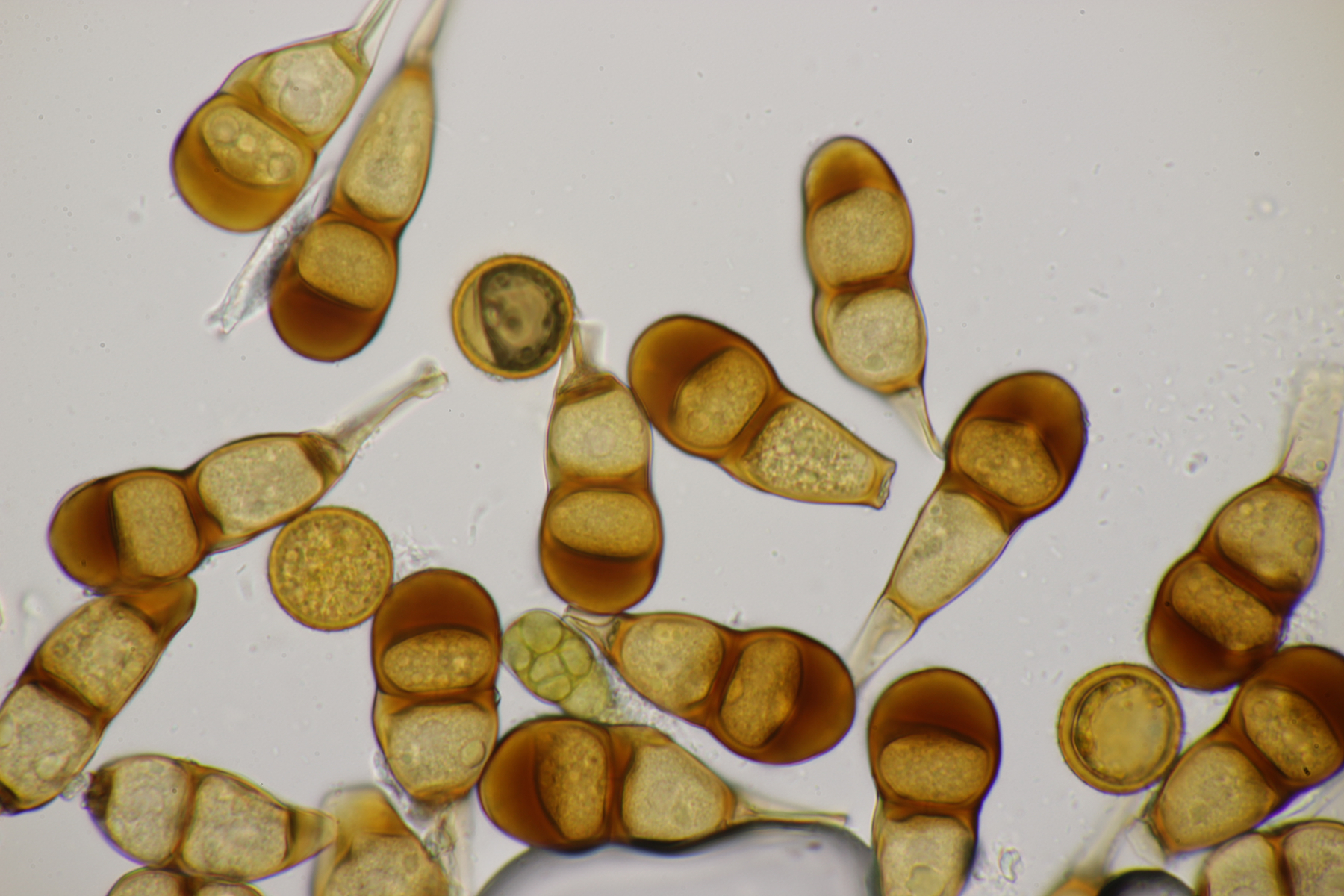 8. Wahrscheinlich Melampsora allii-populina auf Populus balsamifera oder Populus trichocarpa. Das Einzige, was stört sind die Paraphysen, die eine Wanddicke von 5-6 µm haben.