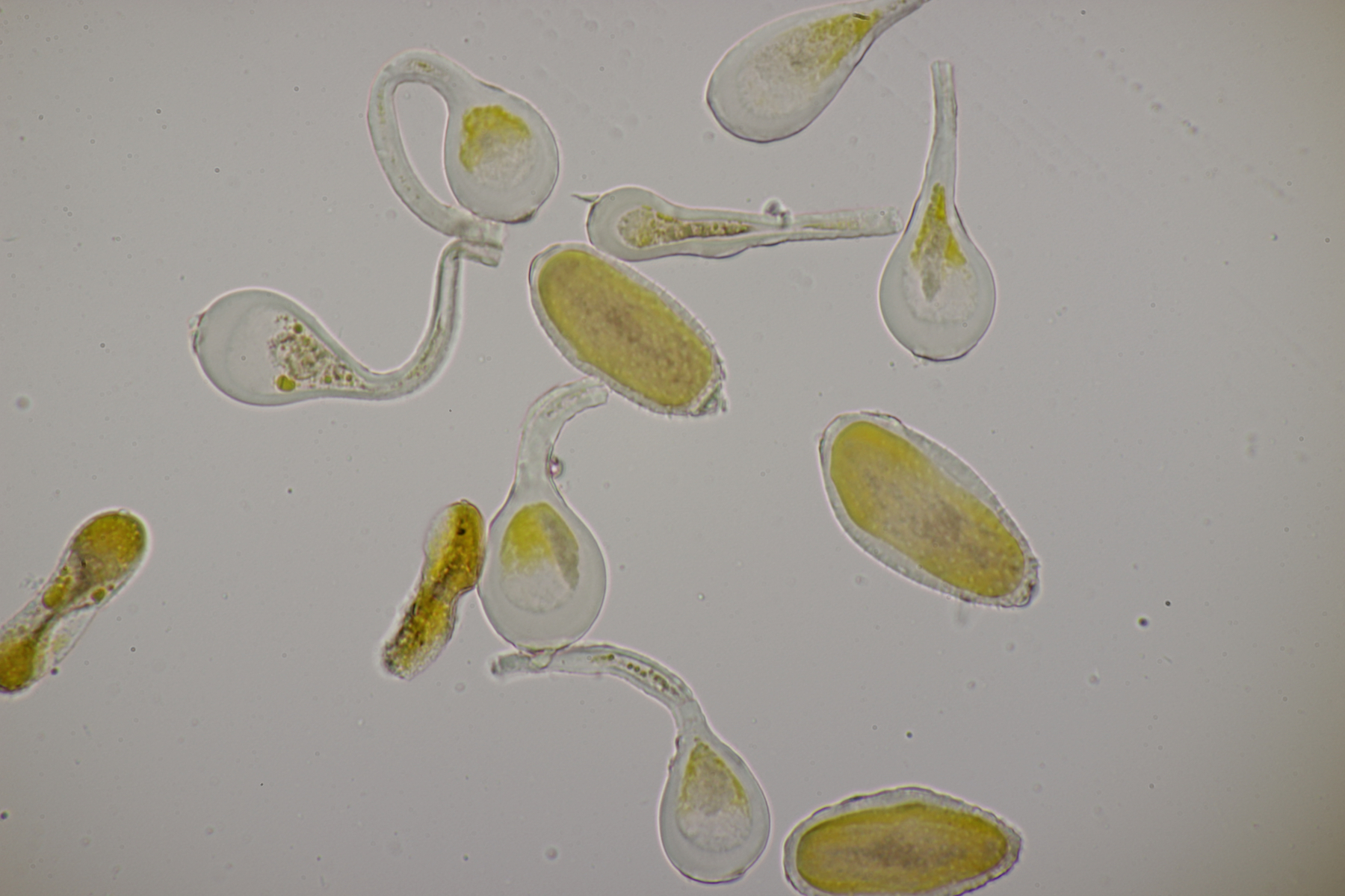1. Erysiphe pseudoregularis ex Salix caprea. Sporen bis 31x19 µm, damit ist E. capreae raus. Anhängsel zählen mag jemand anderes ![]()