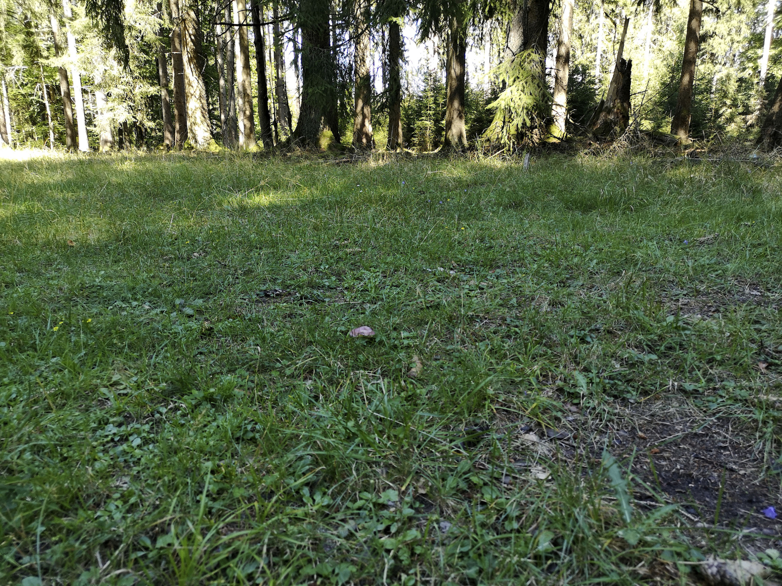 1) schattiger Grasstreifen, vorne und hinten Nadelwald, Fichte, Lärche, vereinzelt Buche