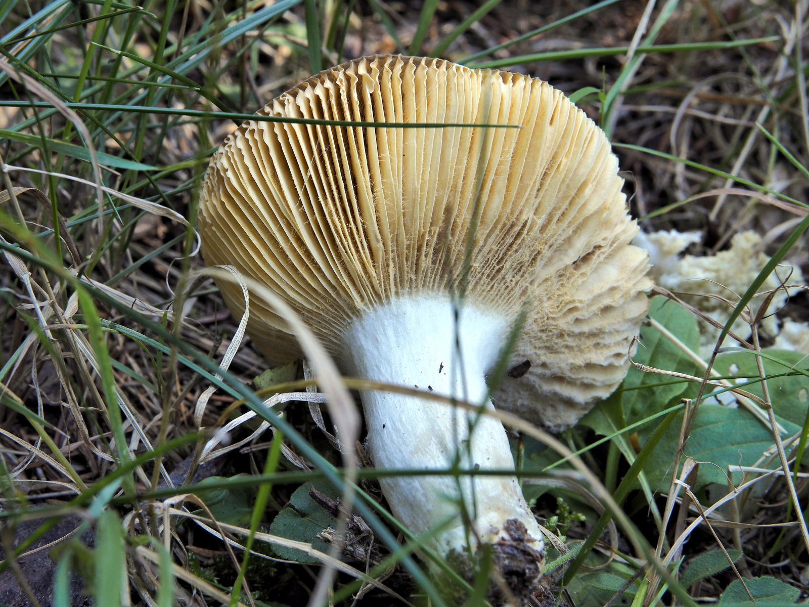 6) Lamellen dünn, engstehend, oft gegabelt, ockergelb-farben