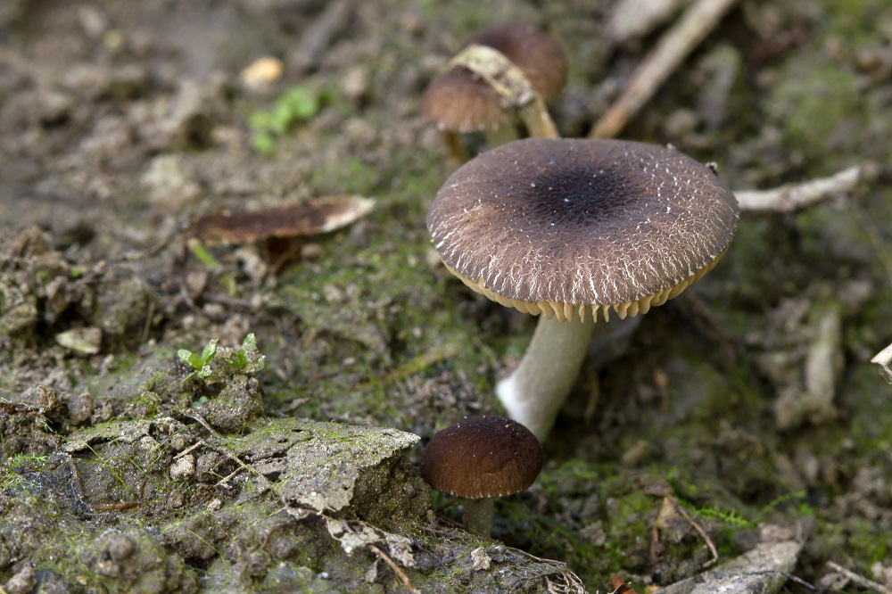 Interessant war, dass das größte Exemplar (Hutdurchmesser 2 cm, sonst 1 cm) an einem Baumstumpf wuchs und bei einem anderen Frk. kleine Holzstücke zu finden waren.