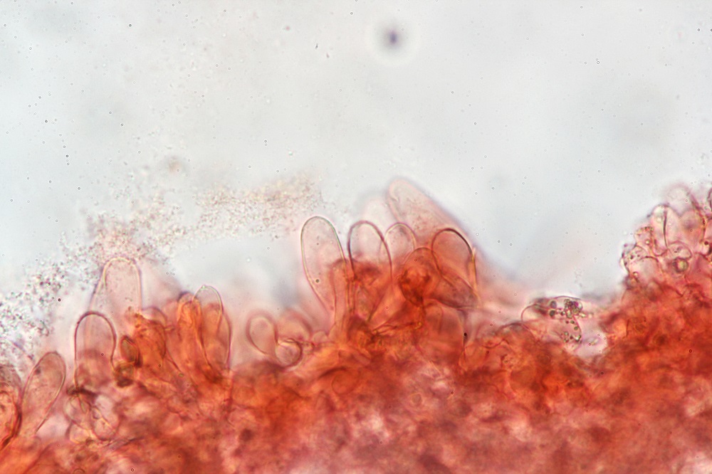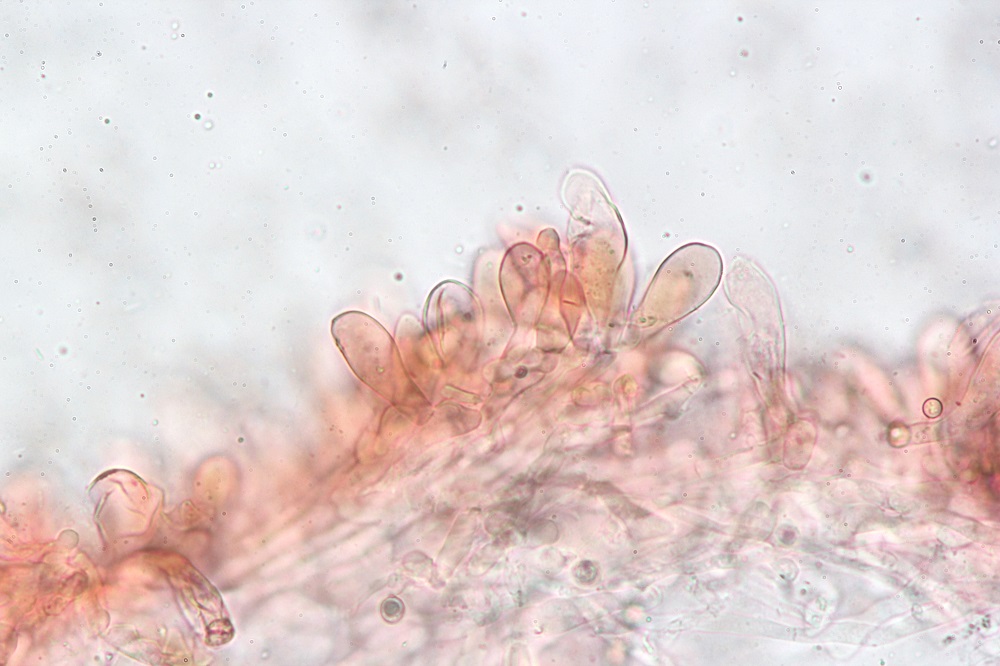 Die Zystiden sind nach den Mikrobildern nicht eindeutig zu beurteilen. thorben96 färbe mal mit Kongorot an und quetsche etwas mehr. Die Cheilos sind meist so zahlreich, dass dann ein größerer Teil frei liegt etwa wie hier bei einer älteren Bestimmung von P. pallescens.