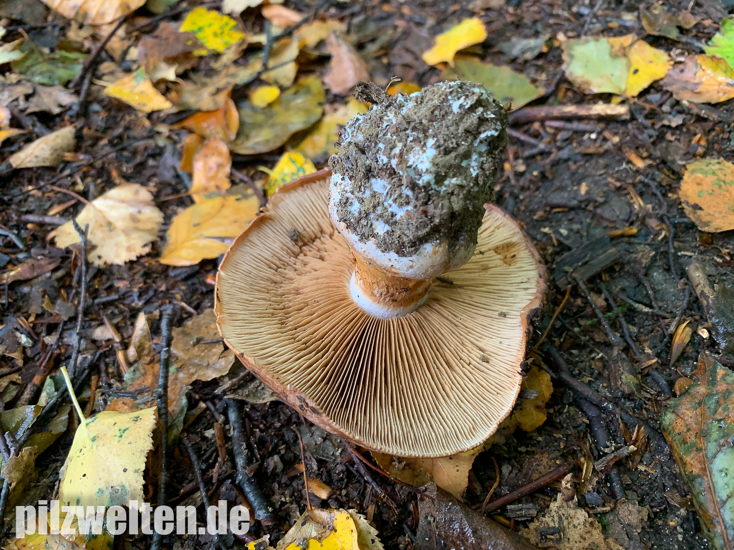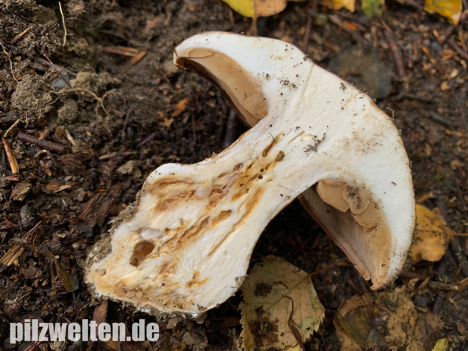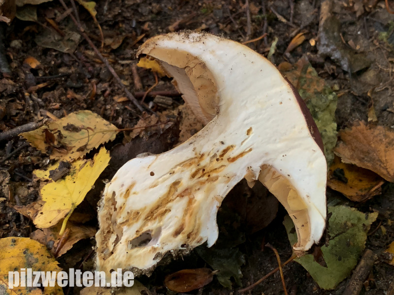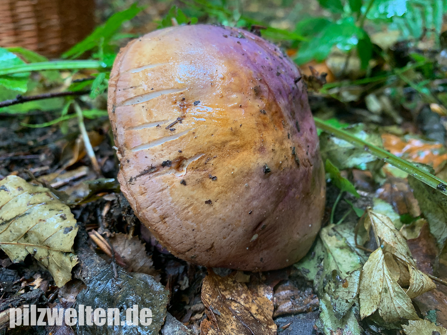 - Besonderheiten: Auffallend für uns vor allem die bunte Hutfarbe mit Schattierungen: Grau-Gelbbräunlich-Violett, Huthaut sehr glatt und feucht etwas schmierig