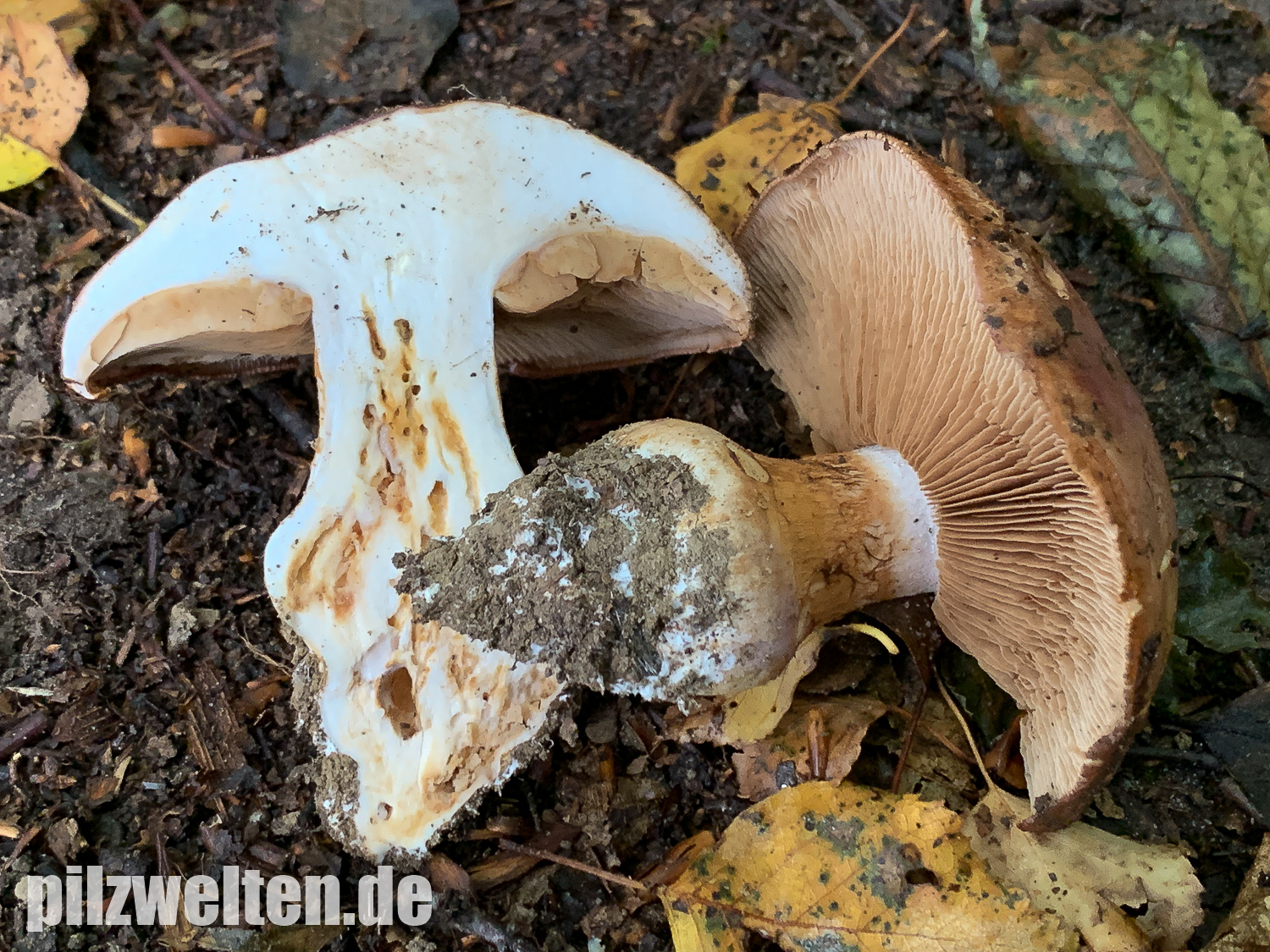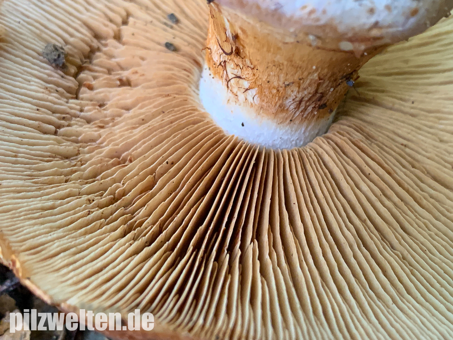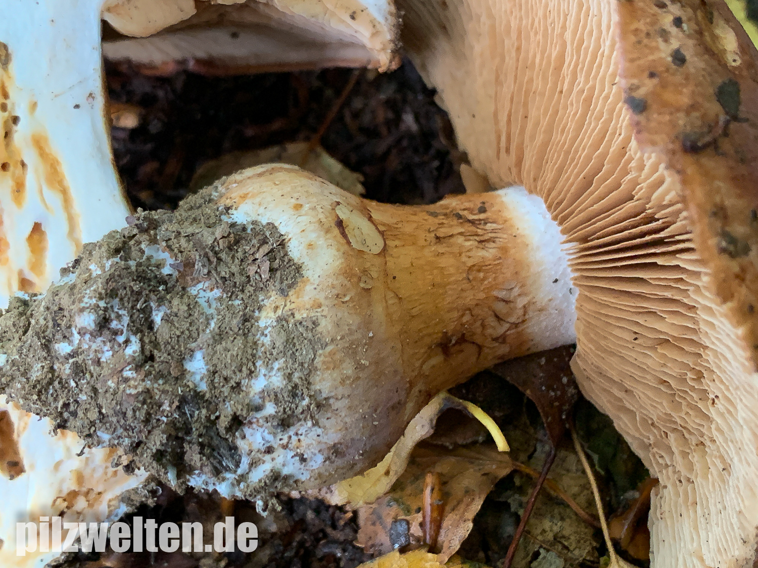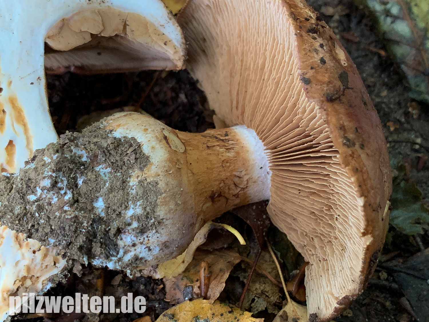 - Besonderheiten: Auffallend für uns vor allem die bunte Hutfarbe mit Schattierungen: Grau-Gelbbräunlich-Violett, Huthaut sehr glatt und feucht etwas schmierig