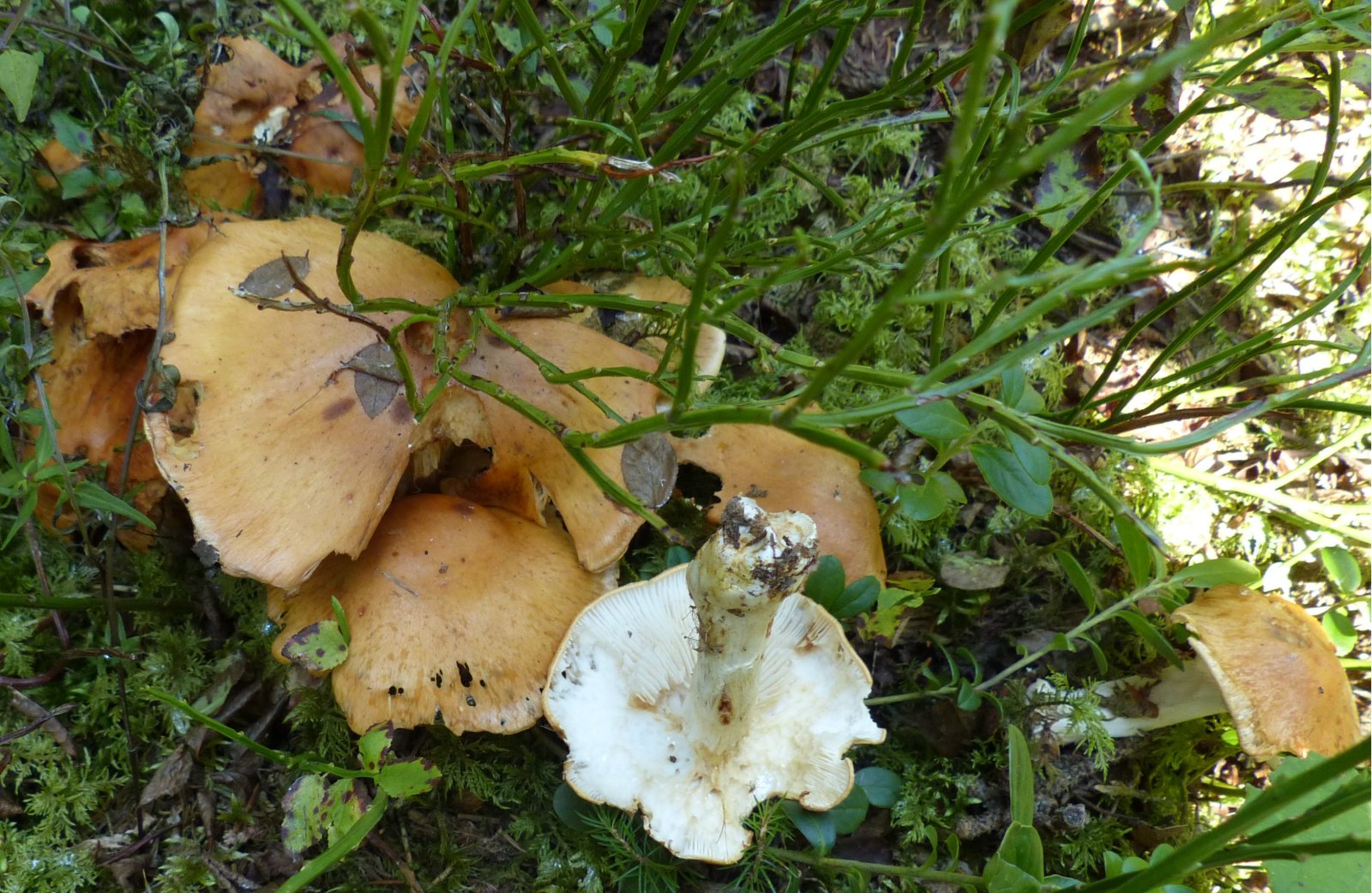 1 = ???; 2 = Grubiger Milchling; 3 = vielleicht Pechschwarzer Milchling (Lactarius picinus); 4 = Kokosflocken Milchling (Lactarius glyciosmus); 5 = Maggipilz; 6 = Mohrenkopfmilchling; 7 = Lärchenmilchling