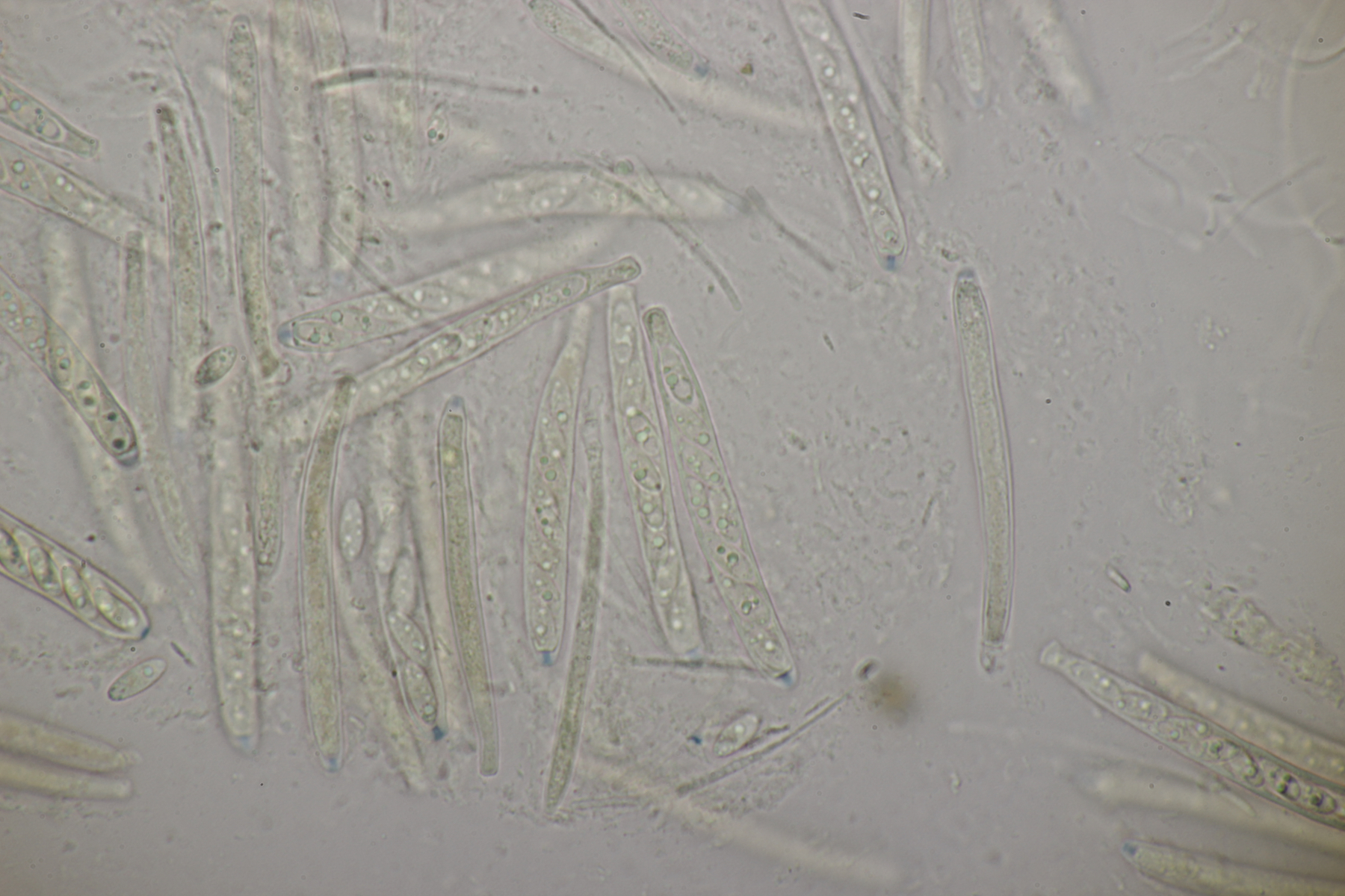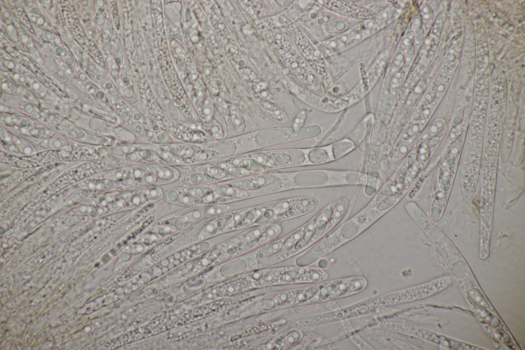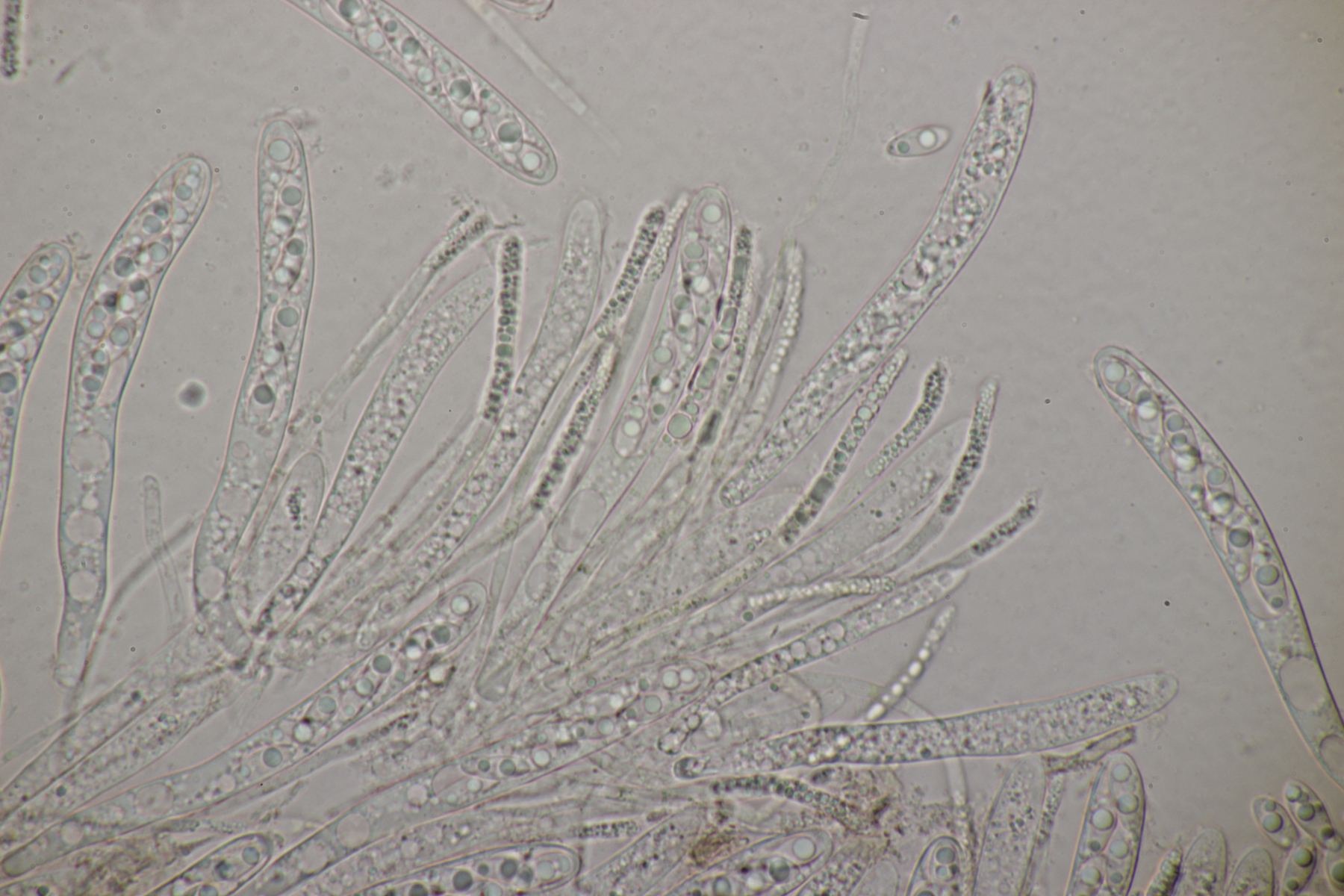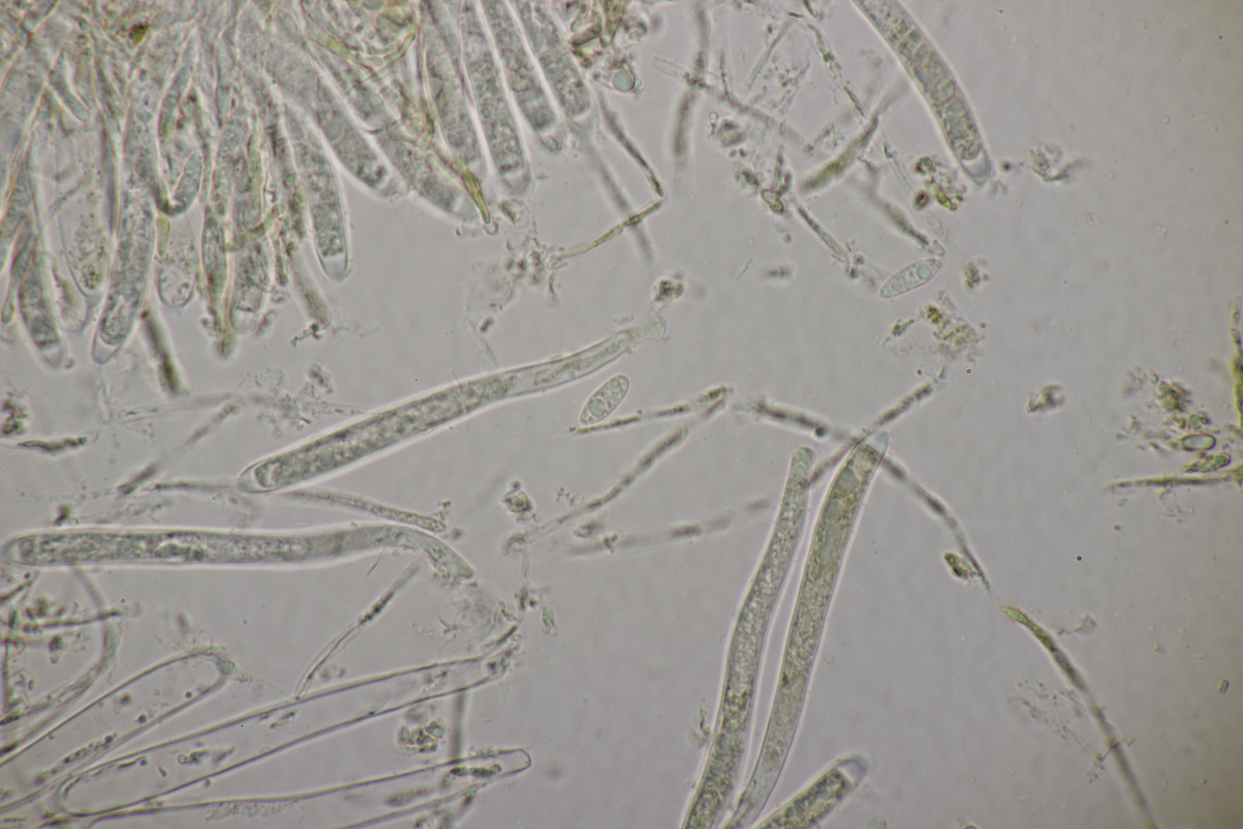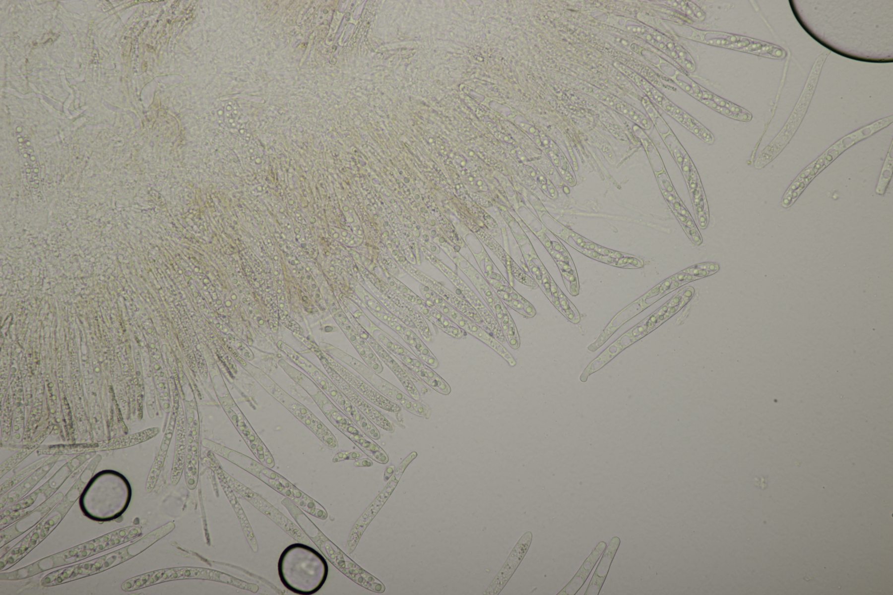 5. Noch ein Ascomycet, an feucht liegender Buchecker. Auch hier fehlt mir der Zugang. Asci mit Lugol blau, Haken evtl. vorhanden