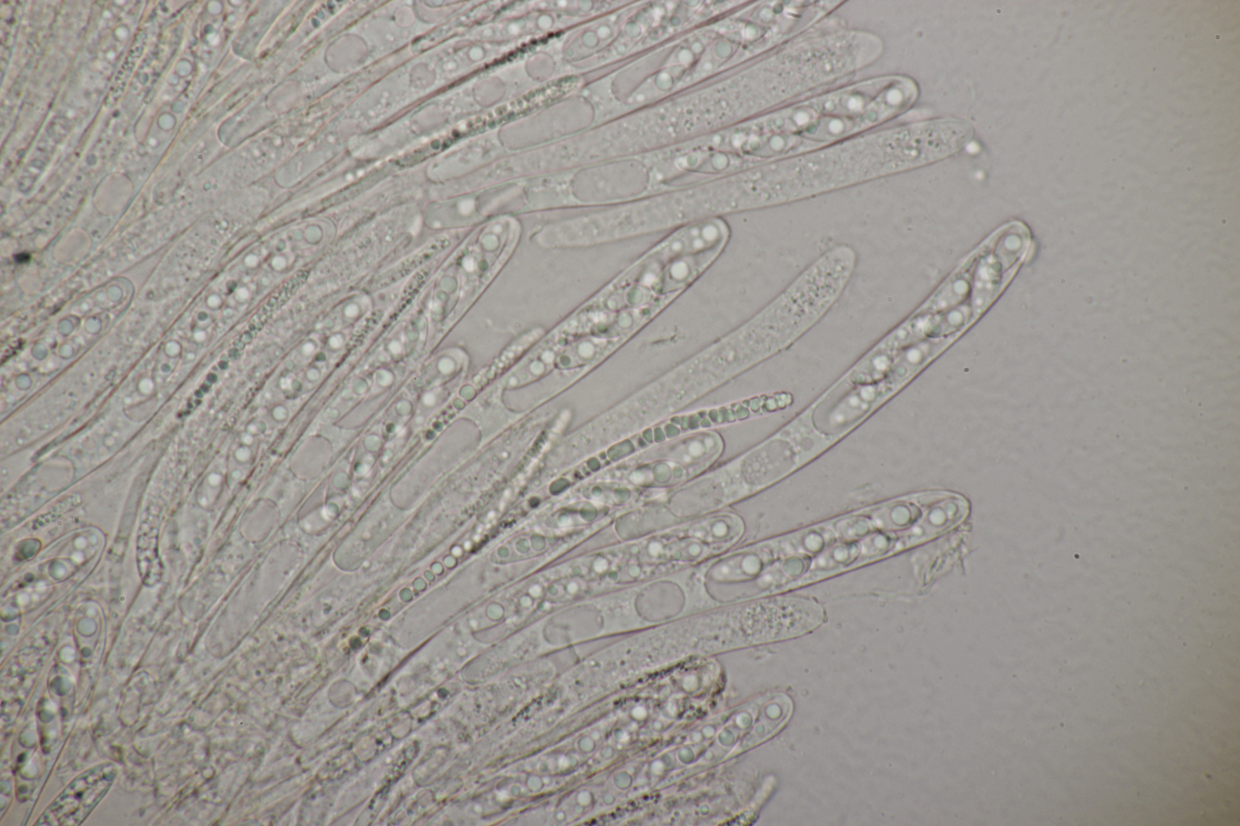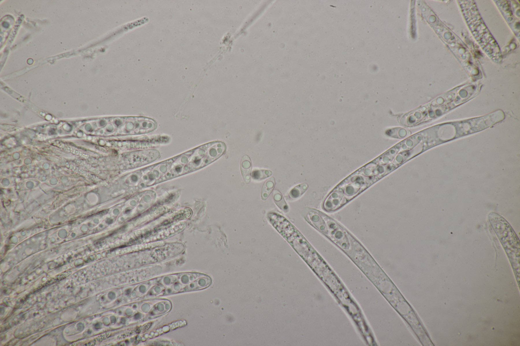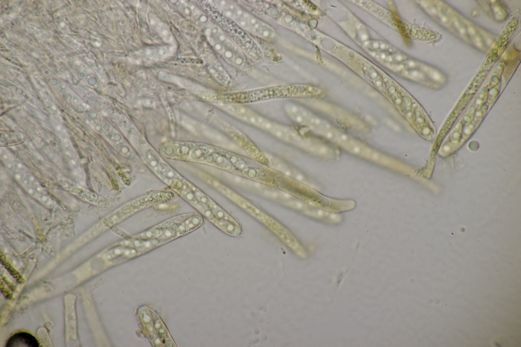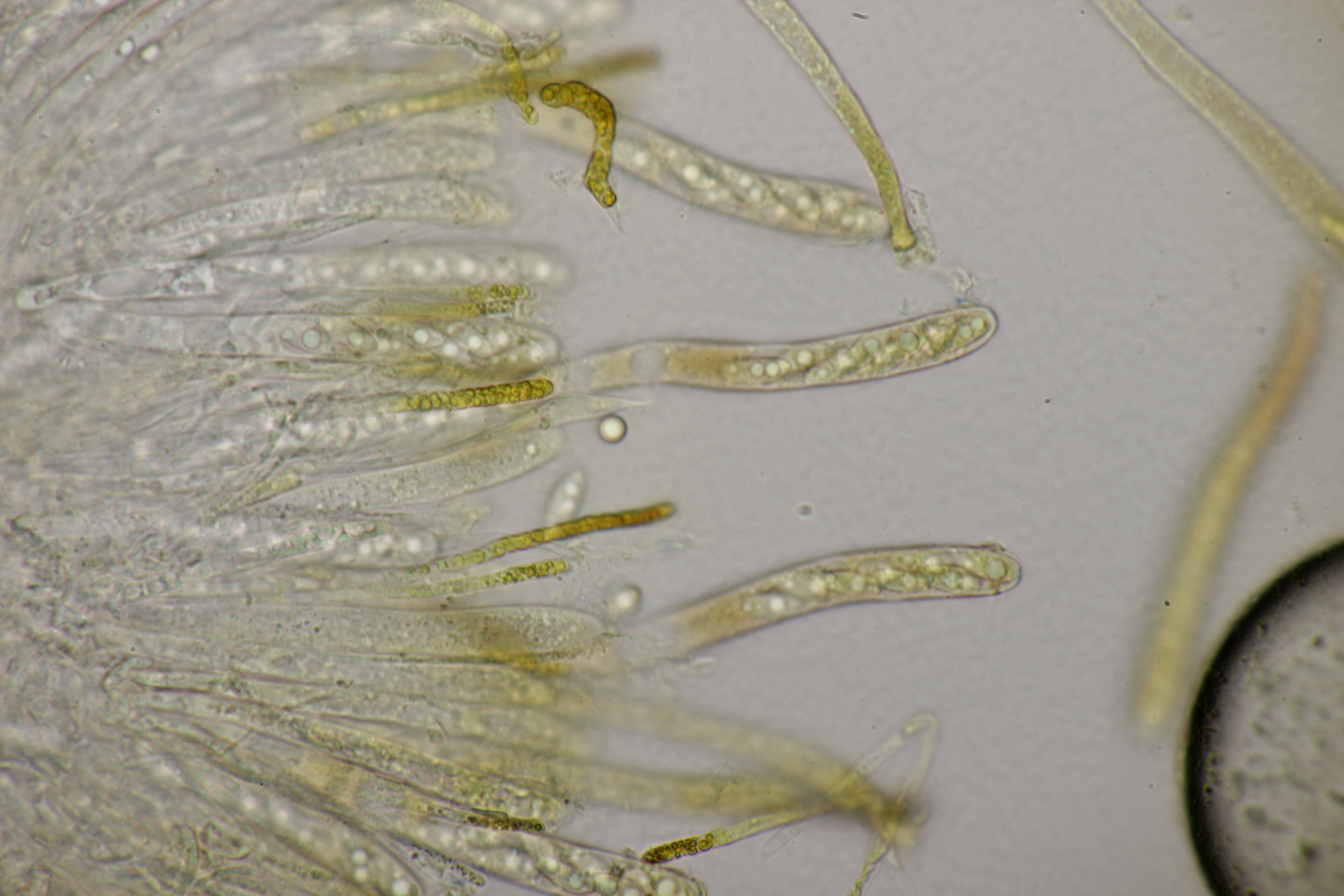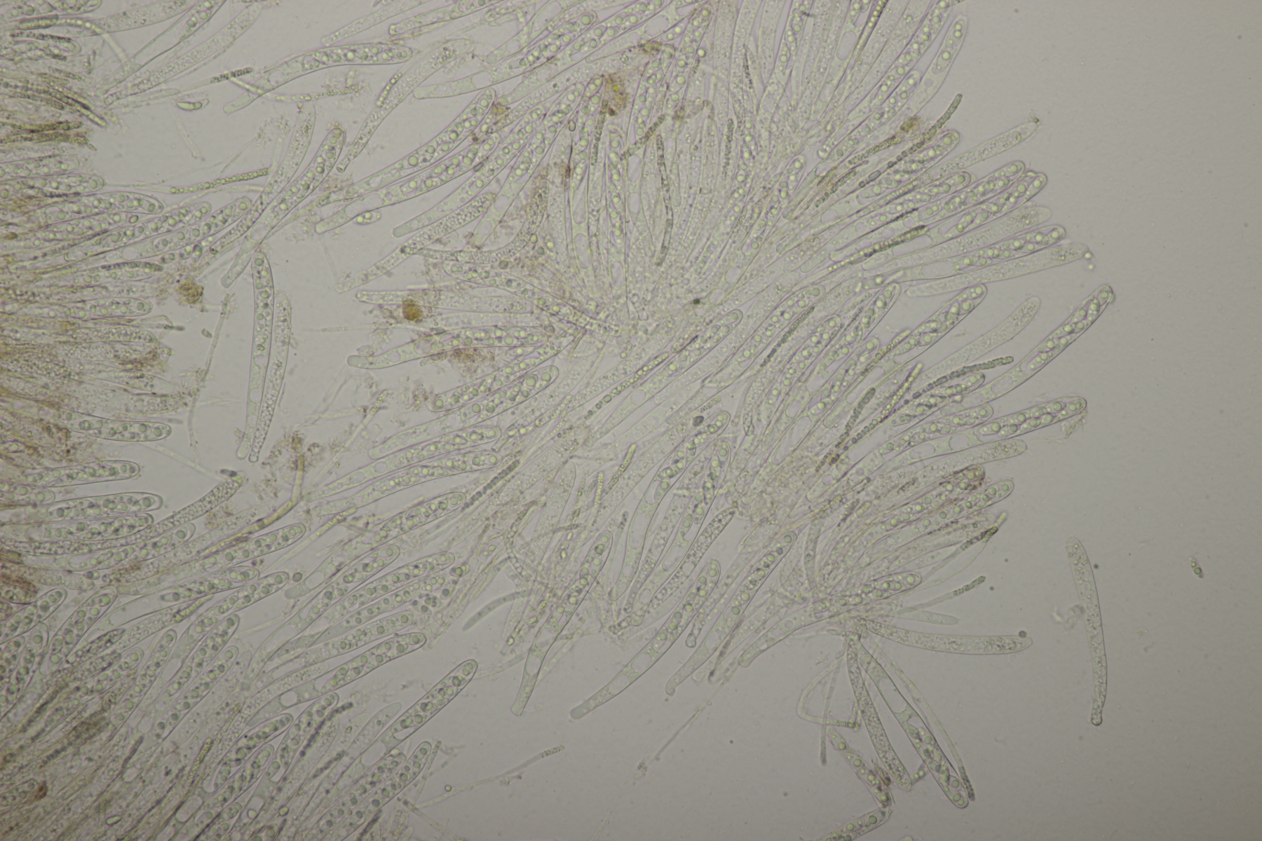 5. Noch ein Ascomycet, an feucht liegender Buchecker. Auch hier fehlt mir der Zugang. Asci mit Lugol blau, Haken evtl. vorhanden