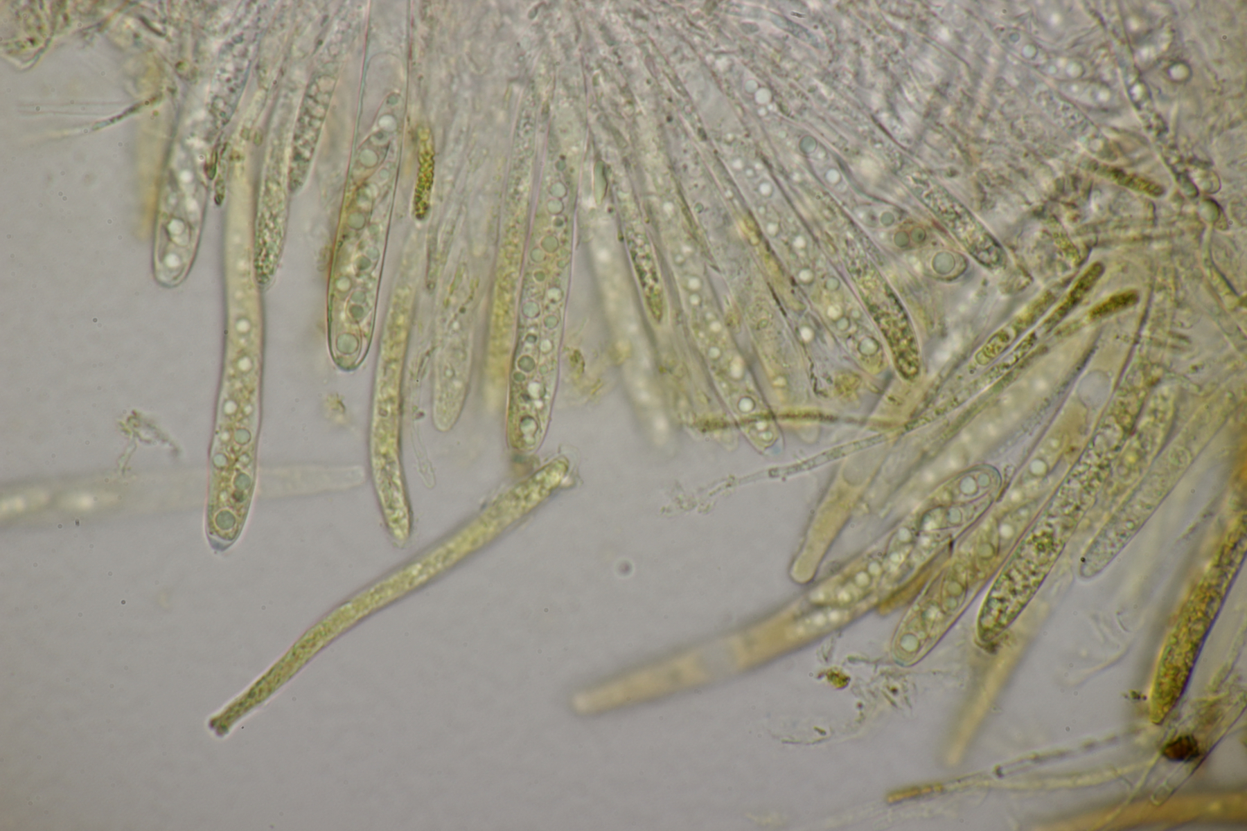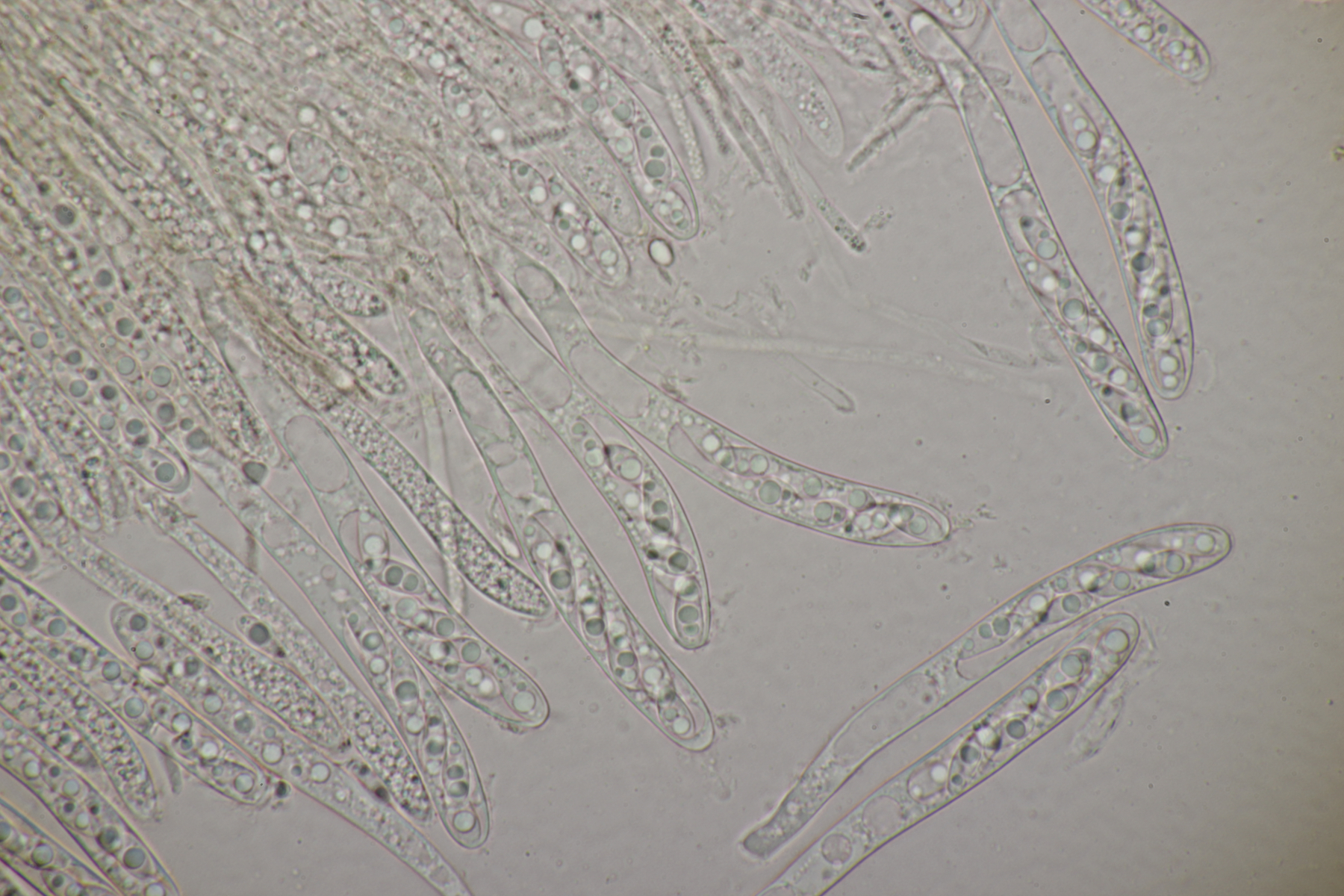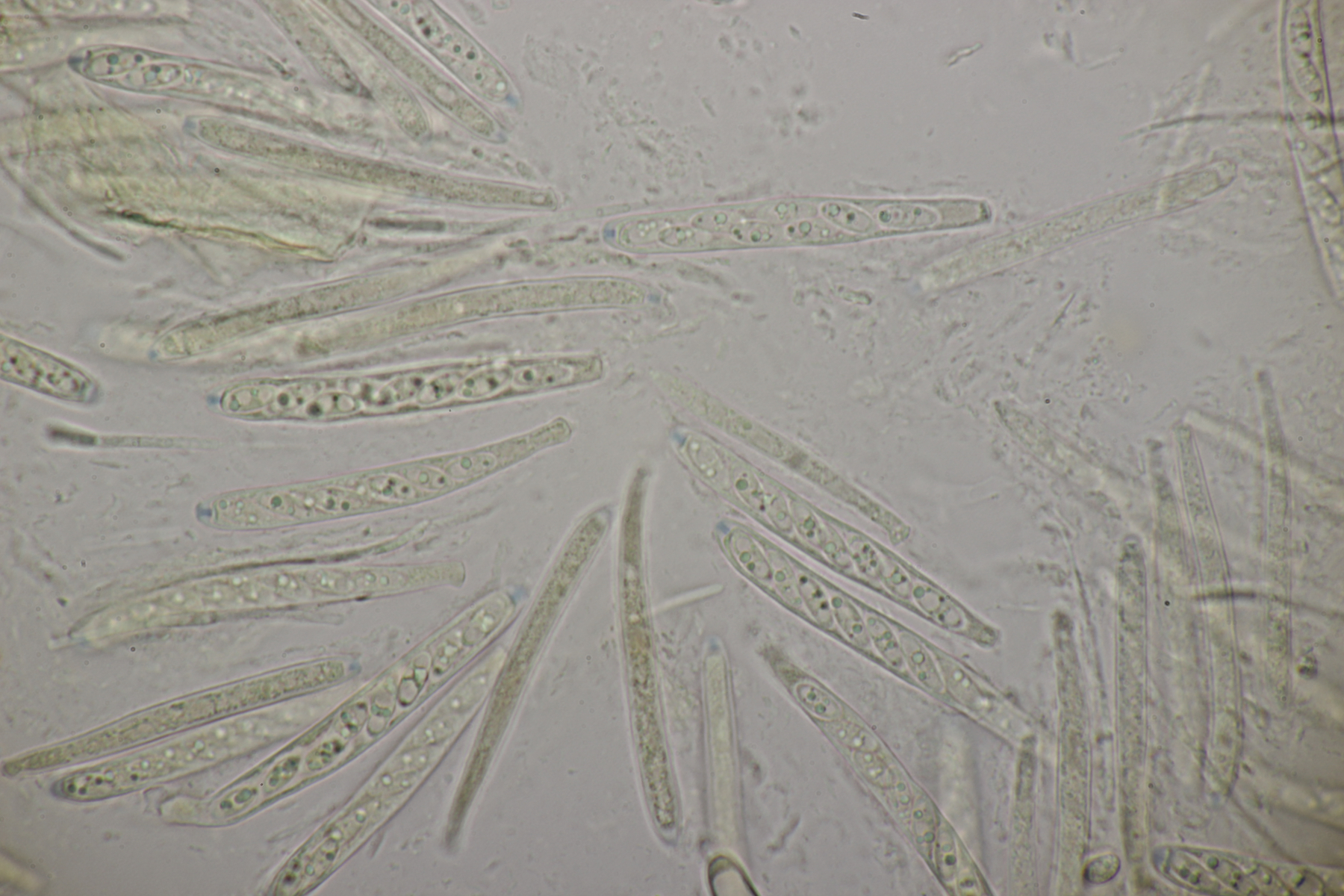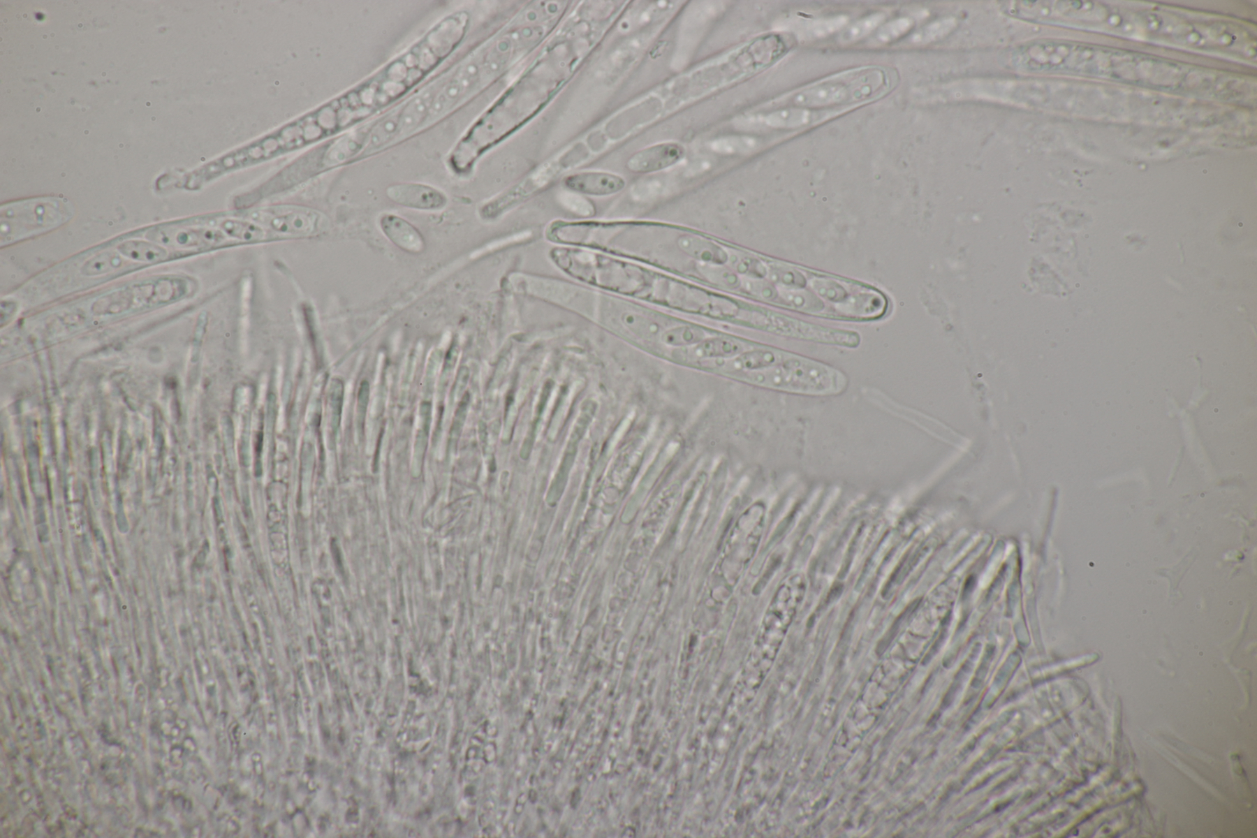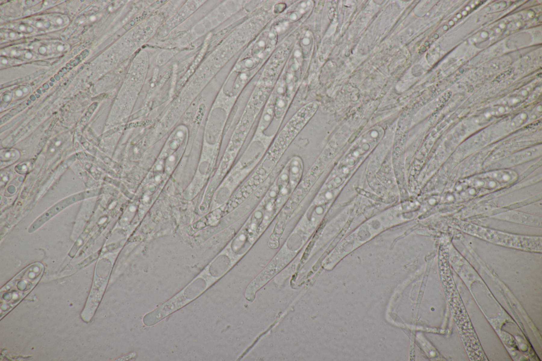 5. Noch ein Ascomycet, an feucht liegender Buchecker. Auch hier fehlt mir der Zugang. Asci mit Lugol blau, Haken evtl. vorhanden