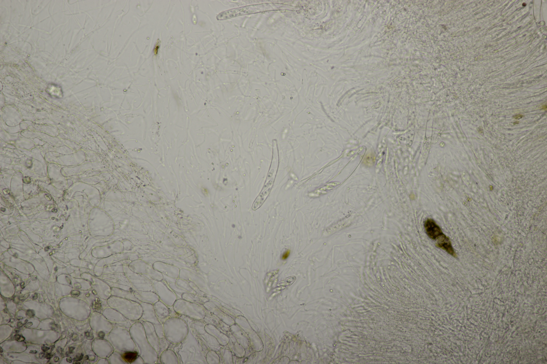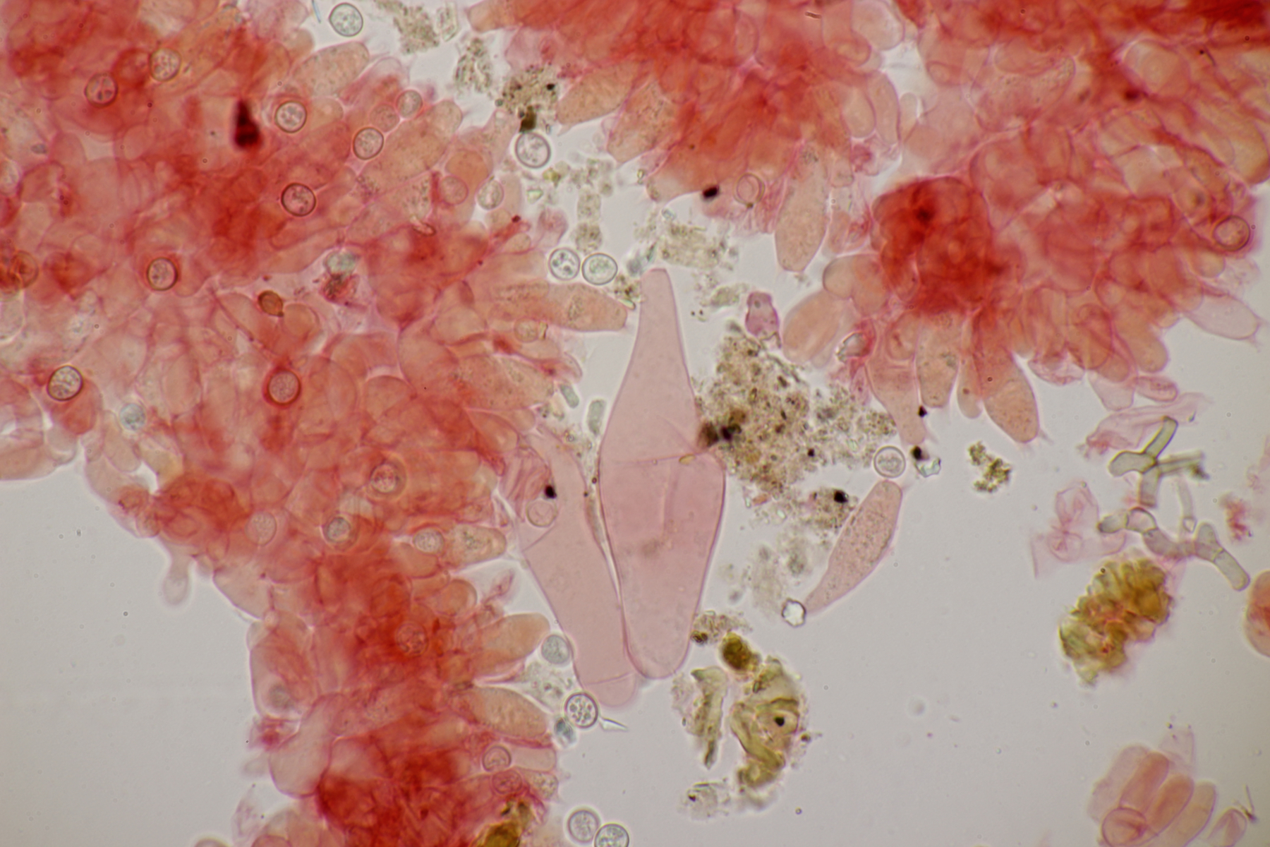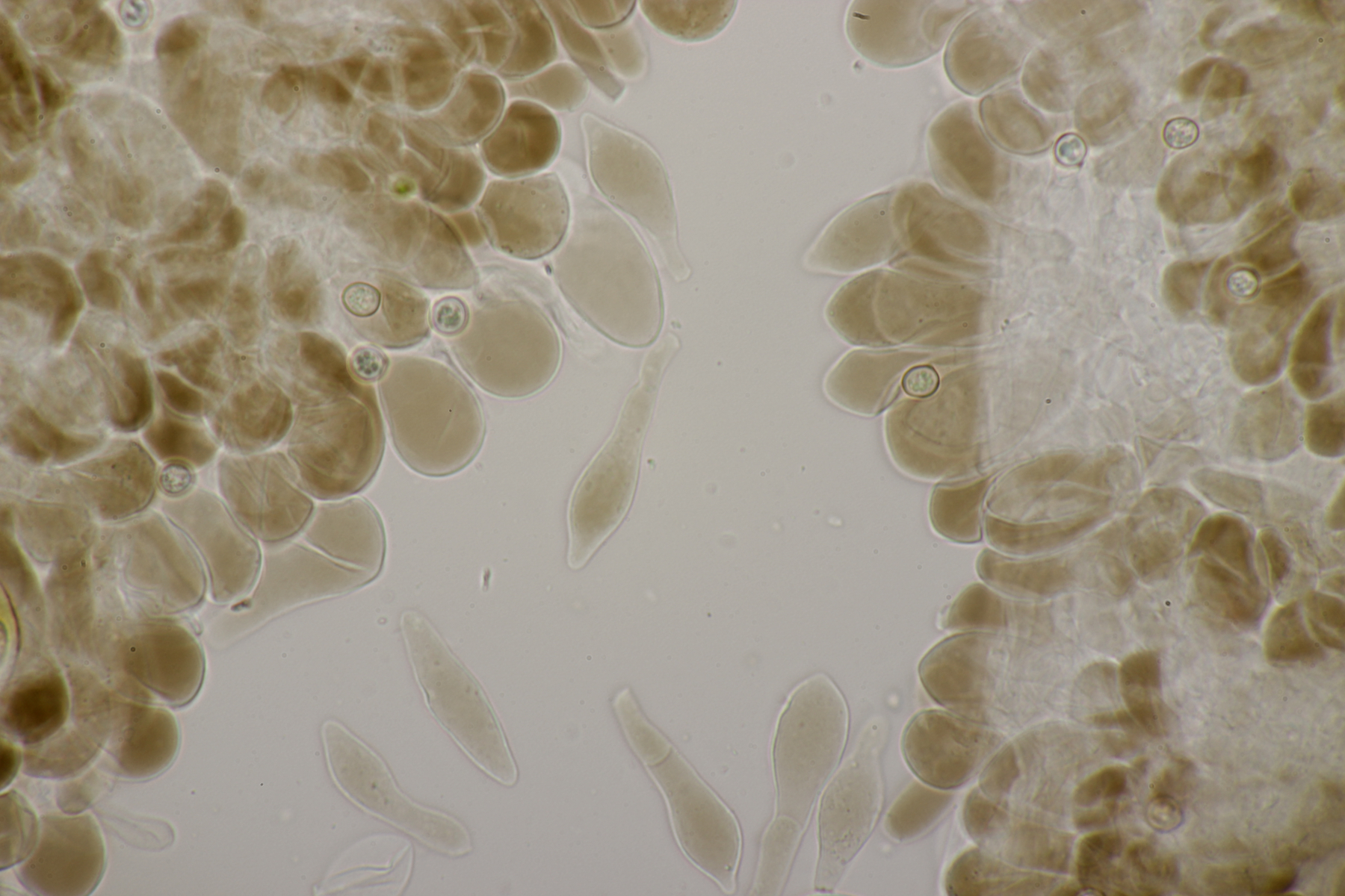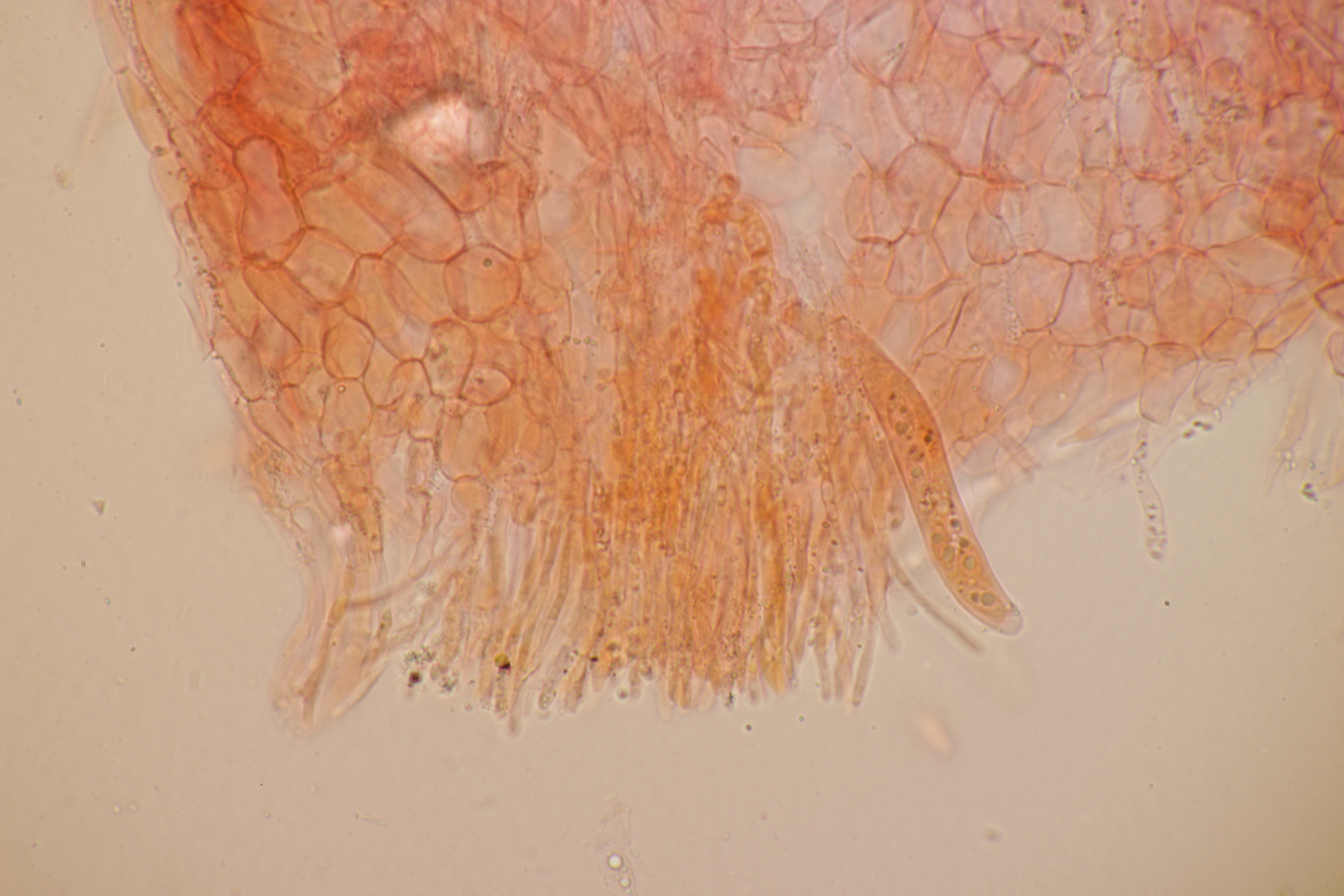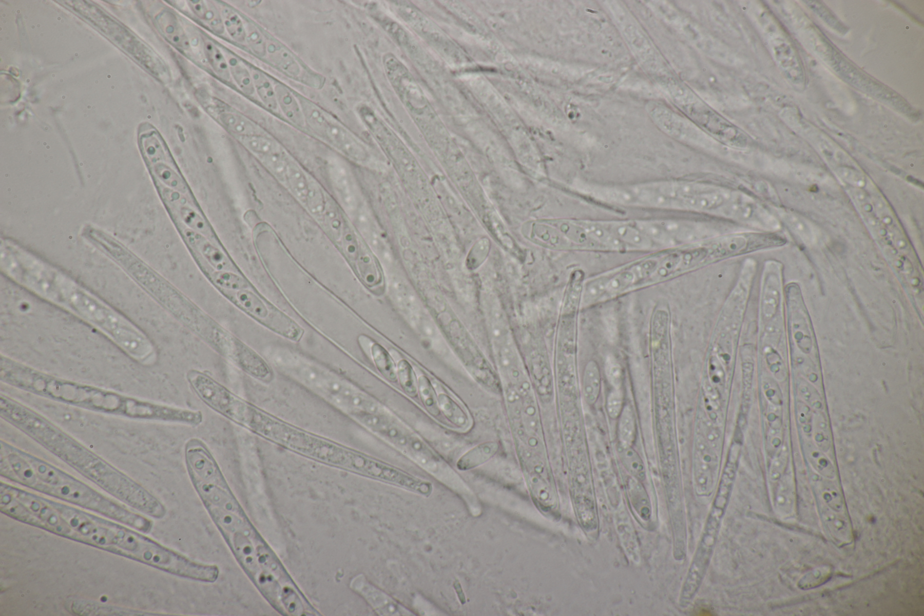5. Noch ein Ascomycet, an feucht liegender Buchecker. Auch hier fehlt mir der Zugang. Asci mit Lugol blau, Haken evtl. vorhanden