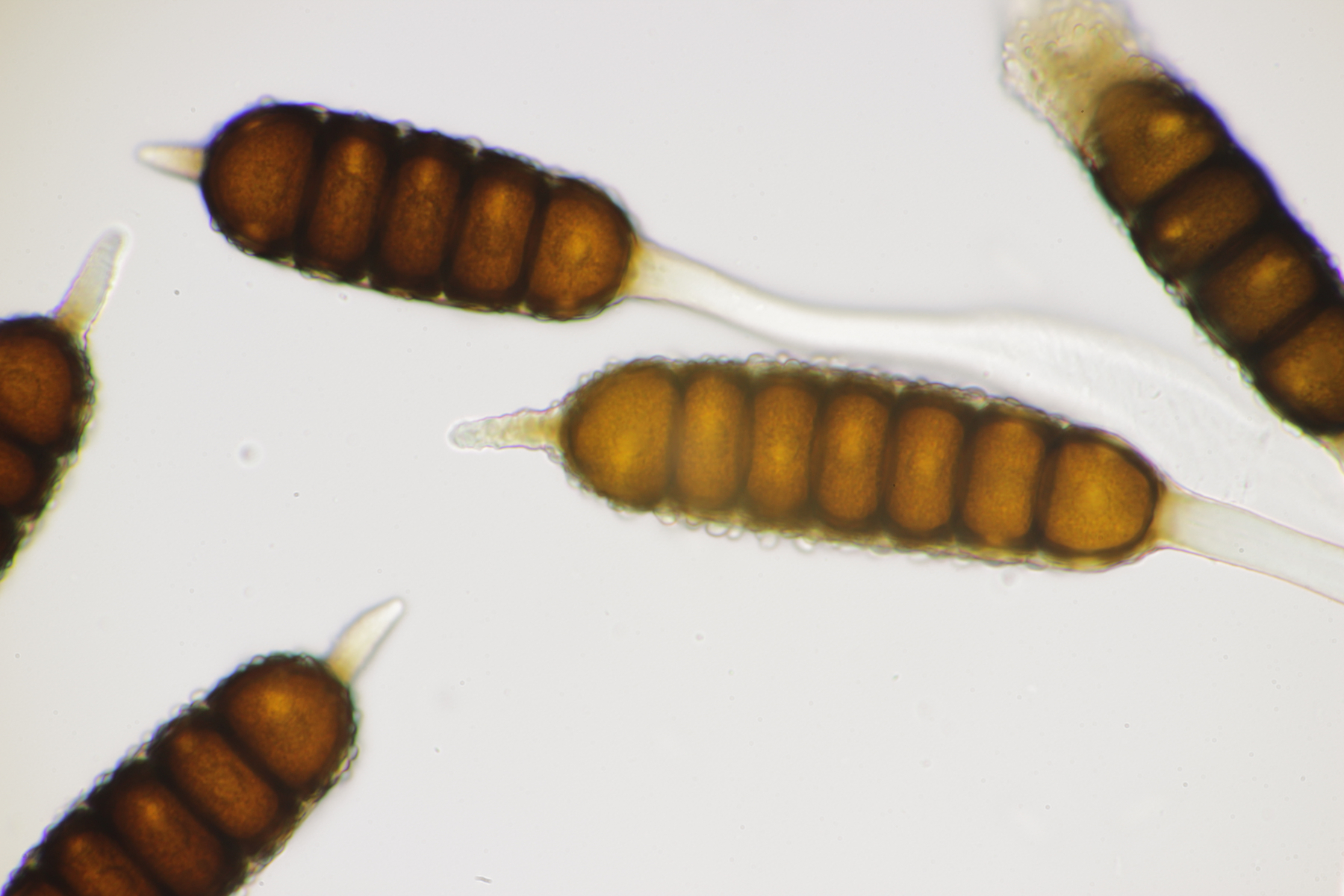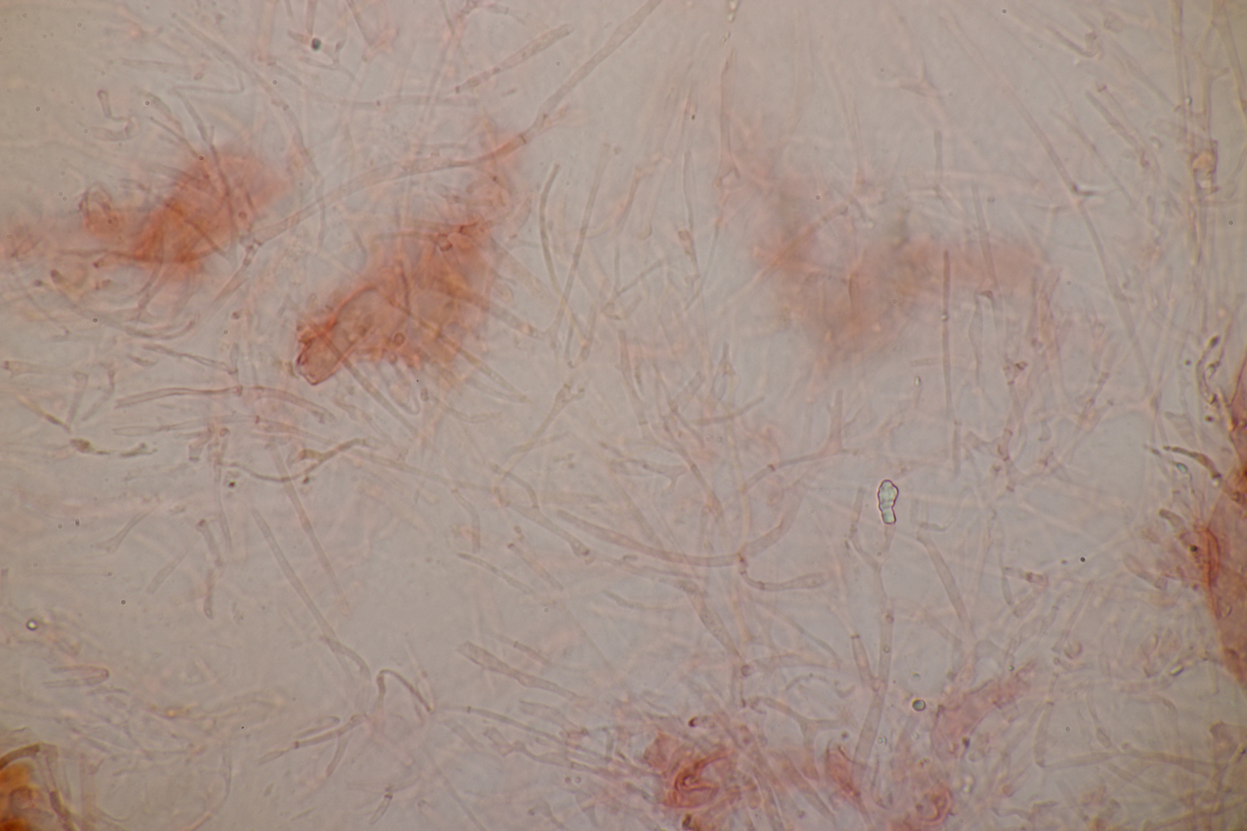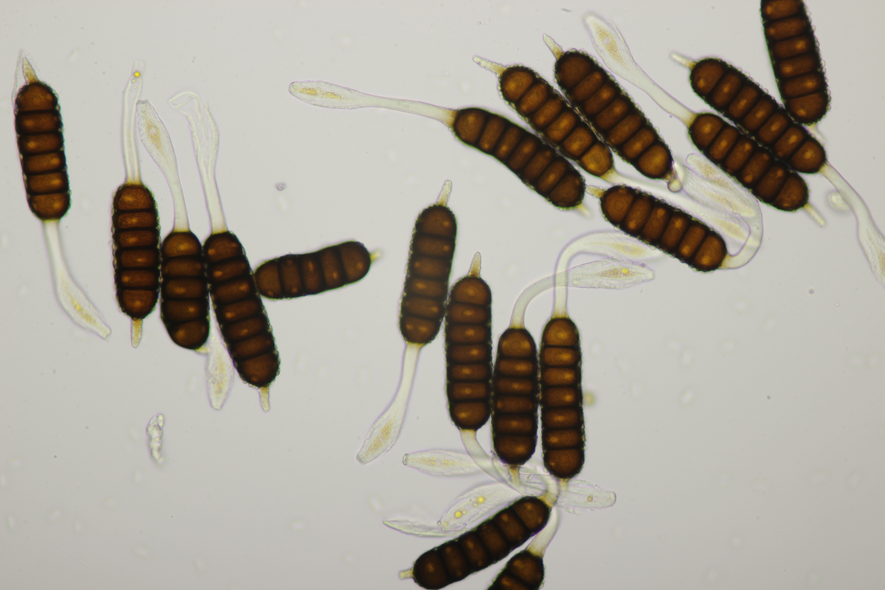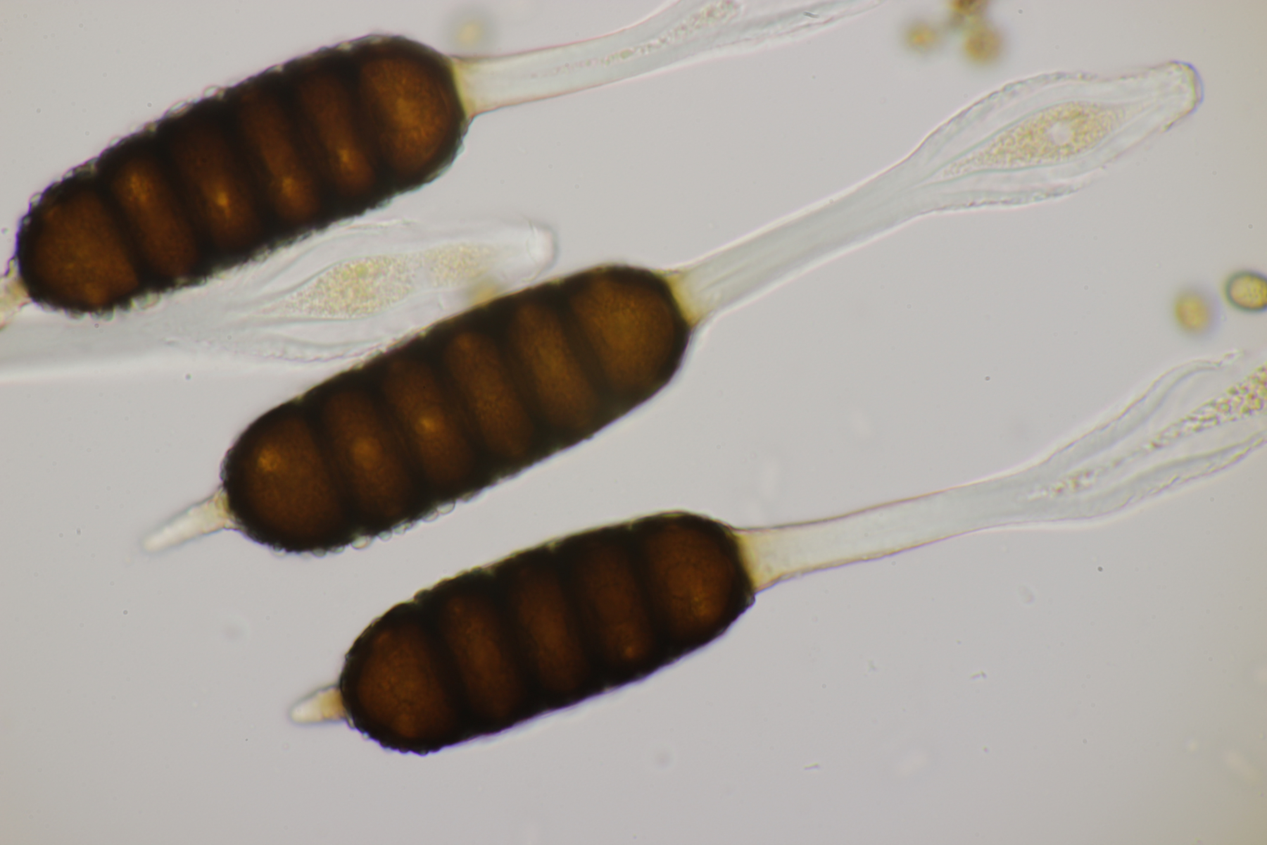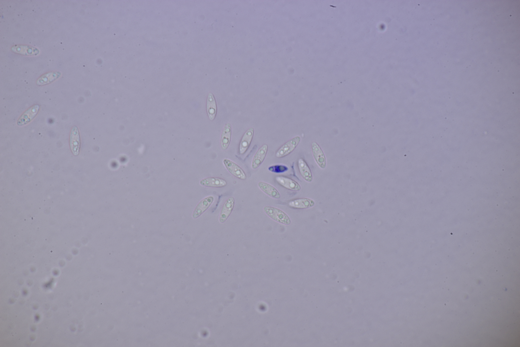 5. Noch ein Ascomycet, an feucht liegender Buchecker. Auch hier fehlt mir der Zugang. Asci mit Lugol blau, Haken evtl. vorhanden