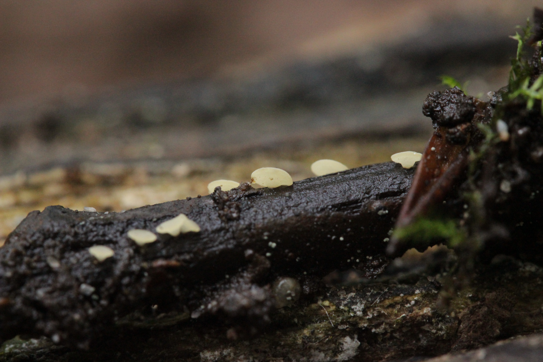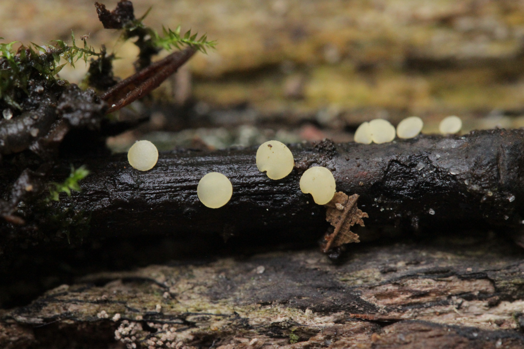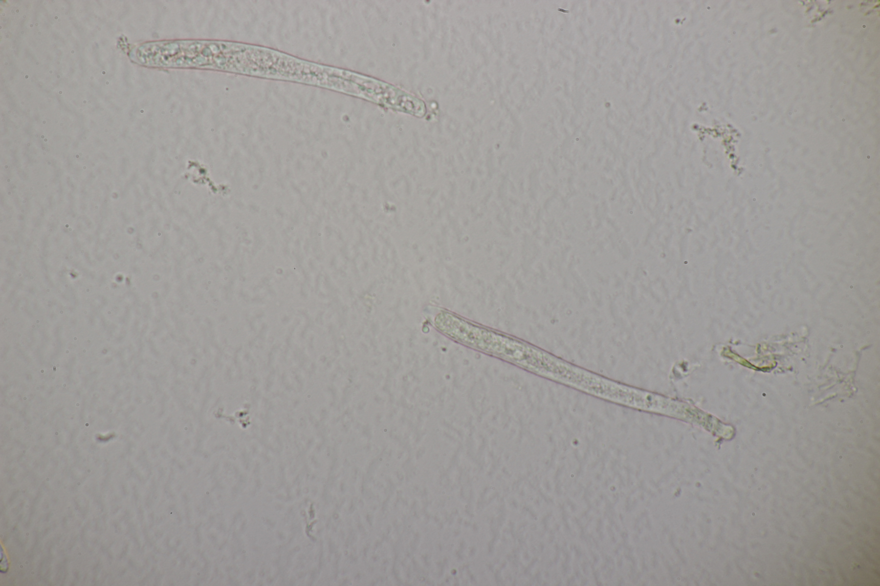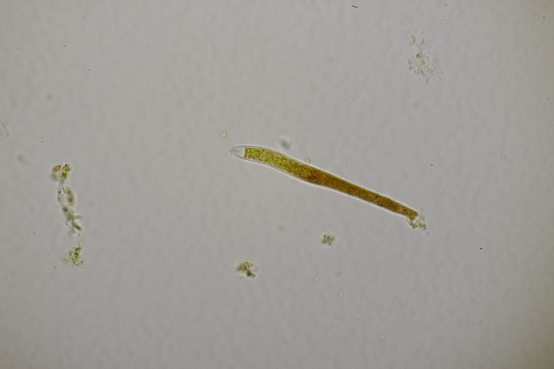 4. Ein Ascomycet an einem feucht liegenden Laubholzstöckchen. Wer hat Ideen? Vielleicht ein Hymenoscyphus? Asci reagieren mit Lugol blau und sind ohne Haken.