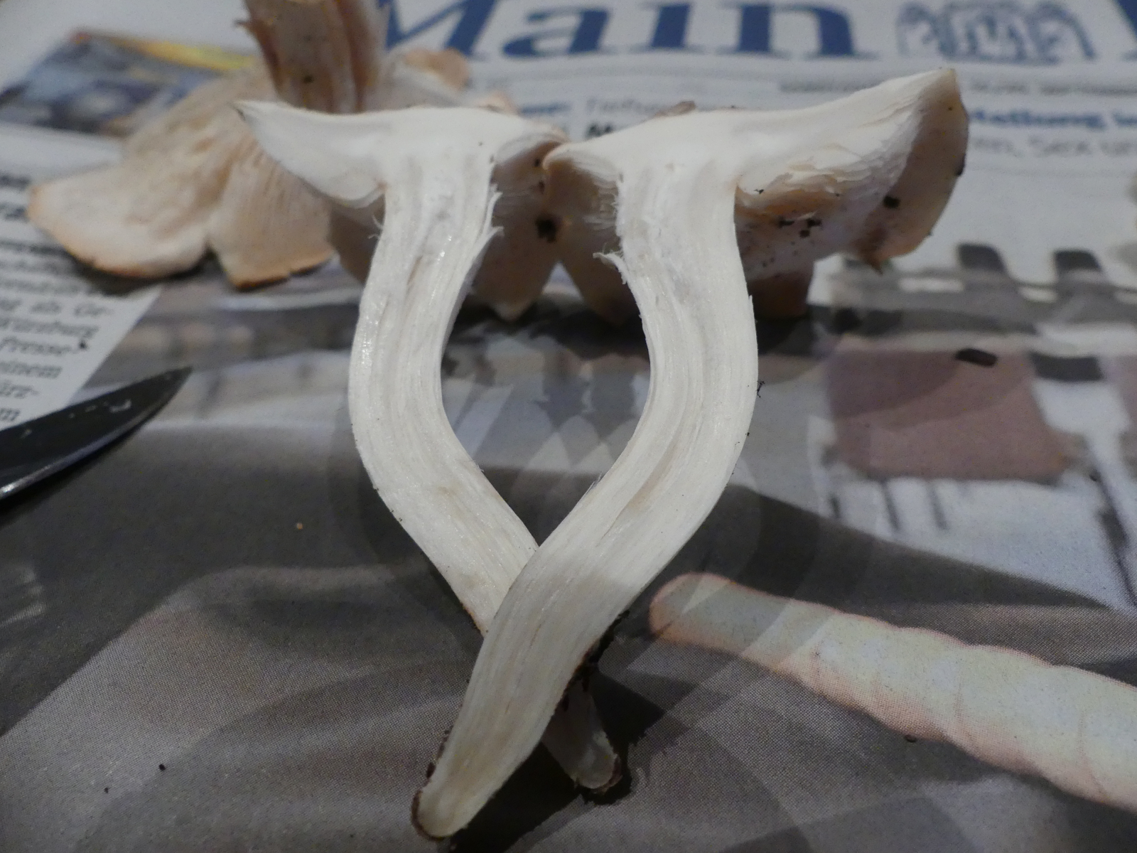 Wie üblich stehe ich auf dem Schlauch. Die Stielform erinnert mich an den spindeligen Rübling, der kann es aber nicht sein.