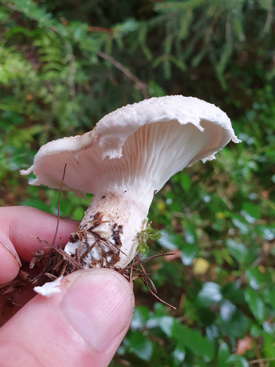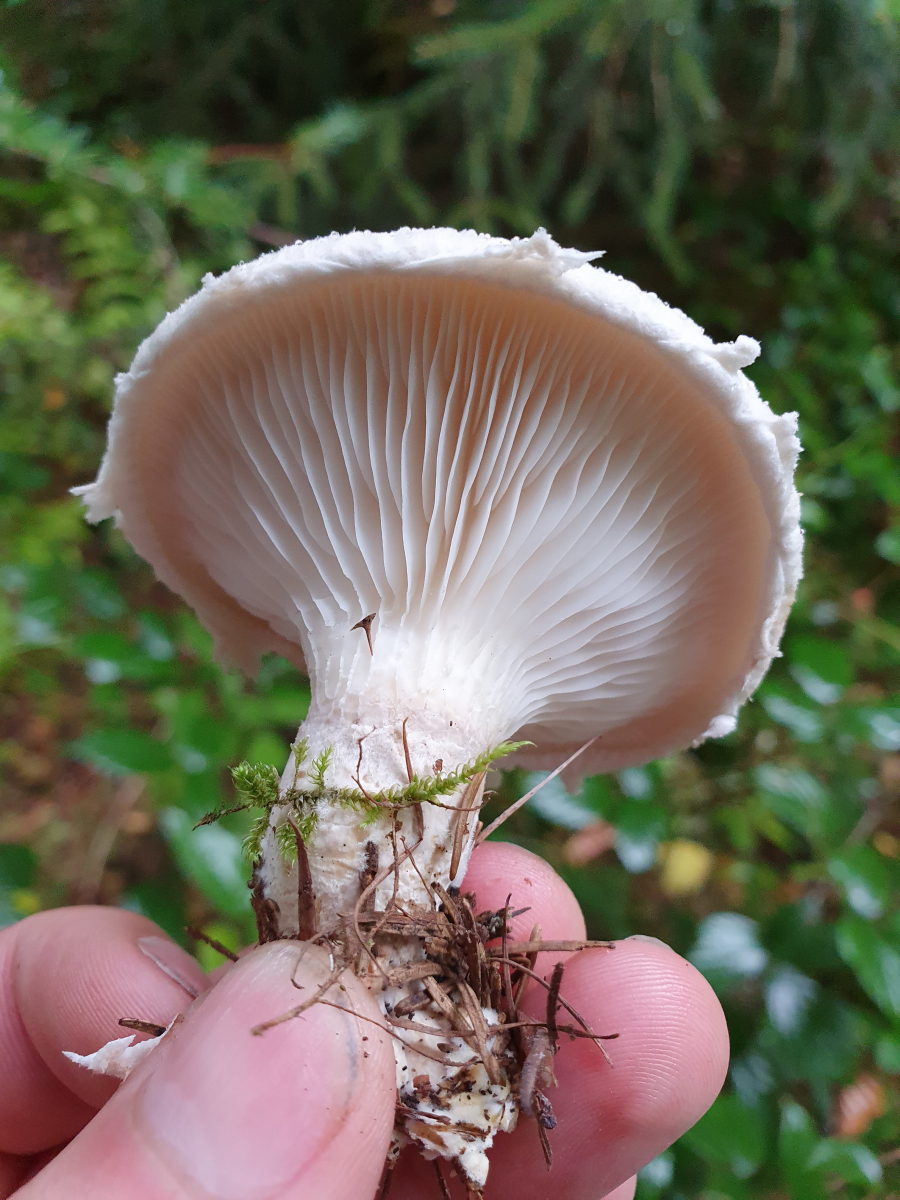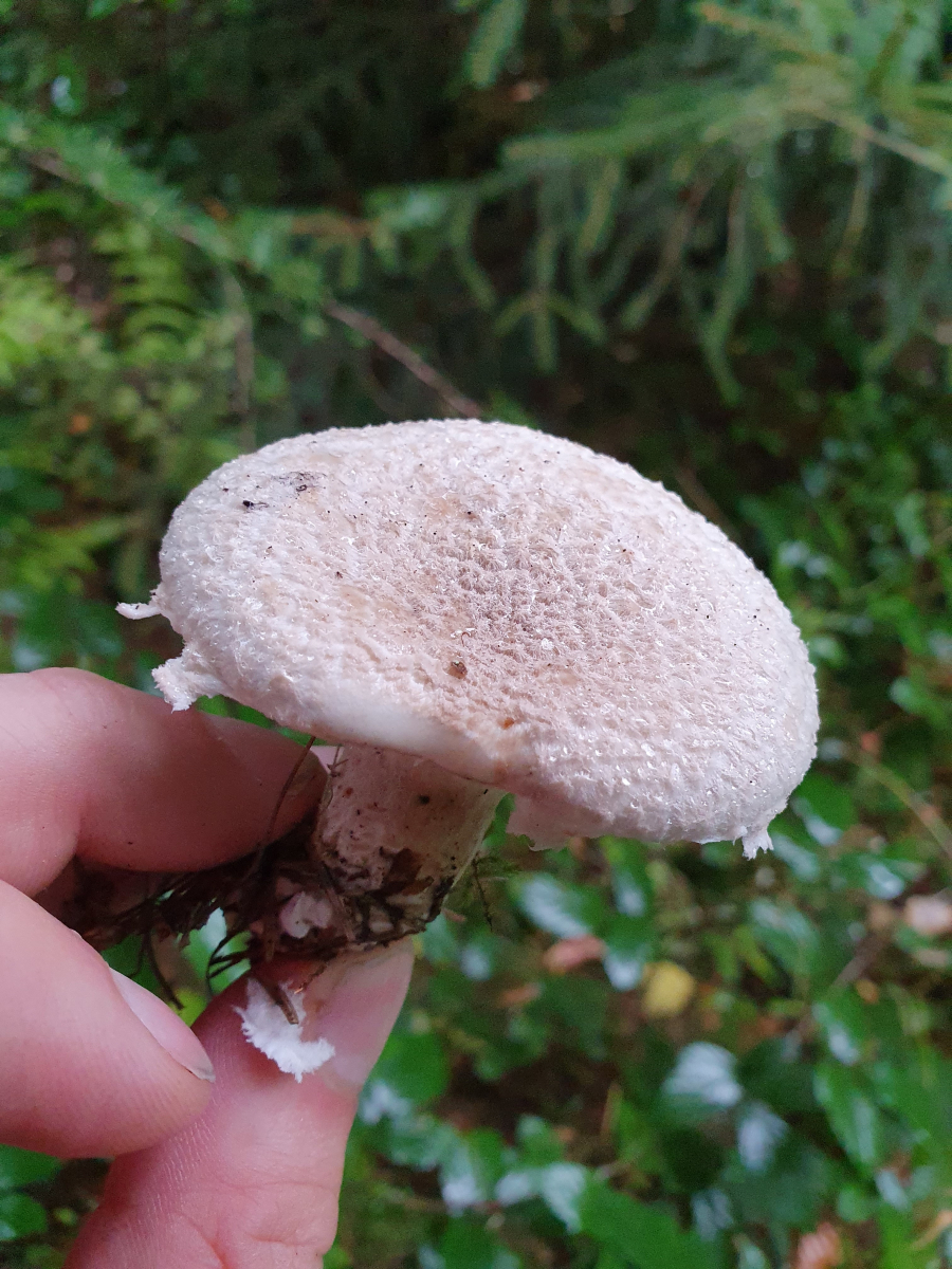 Dachte an Lentinus. Die Lamellenschneiden sind jedoch glatt. Auffallend sind die herablaufenden stark anastomisierenden Lamellen. Der Stiel scheint nicht ganz zentral. Der Hut ist grob schuppig. Insgesamt sehr fest.