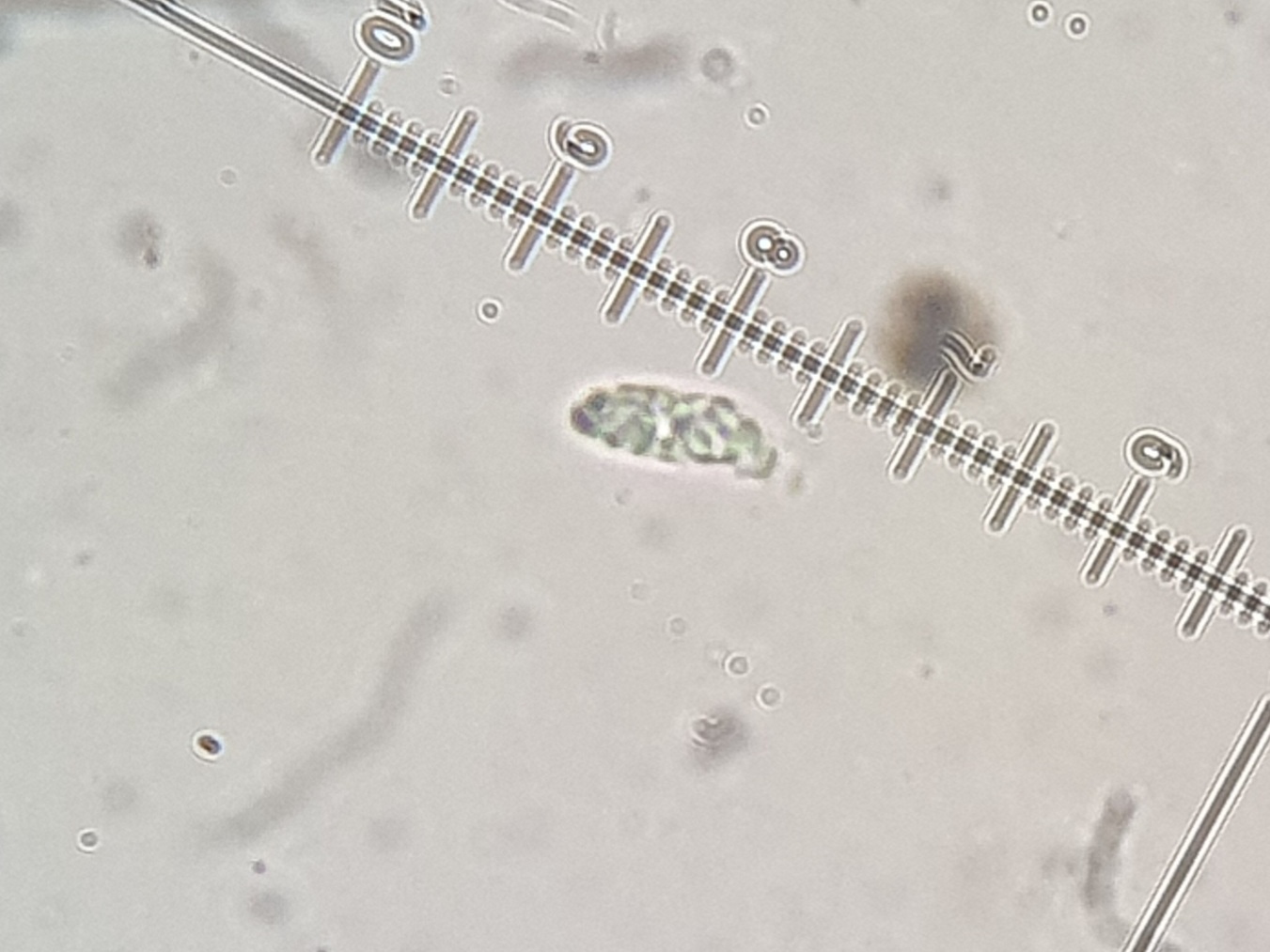 Die Sporen sind länglich und haben eine unebenen Oberfläche, fast möchte ich leicht höckrig sagen. 10x3ym