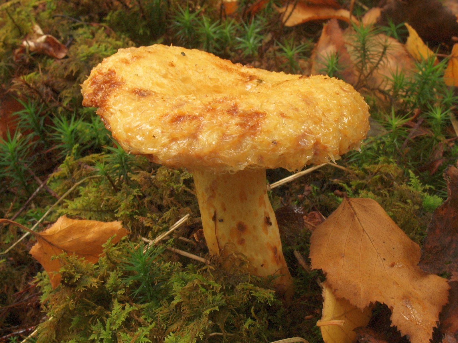 da der inzwischen eingesetzte Regen in den meisten Gebieten noch nicht zu Pilzwachstum führte besuchten ich mit Rainer einen uns schon lange bekannten, überwiegend mit Birken bestandenen Bruchwald und wurden angenehm überrascht. Rauhfüße gab es nur vereinzelt, aber andere Arten tauchten in noch nie gesehener Zahl auf.