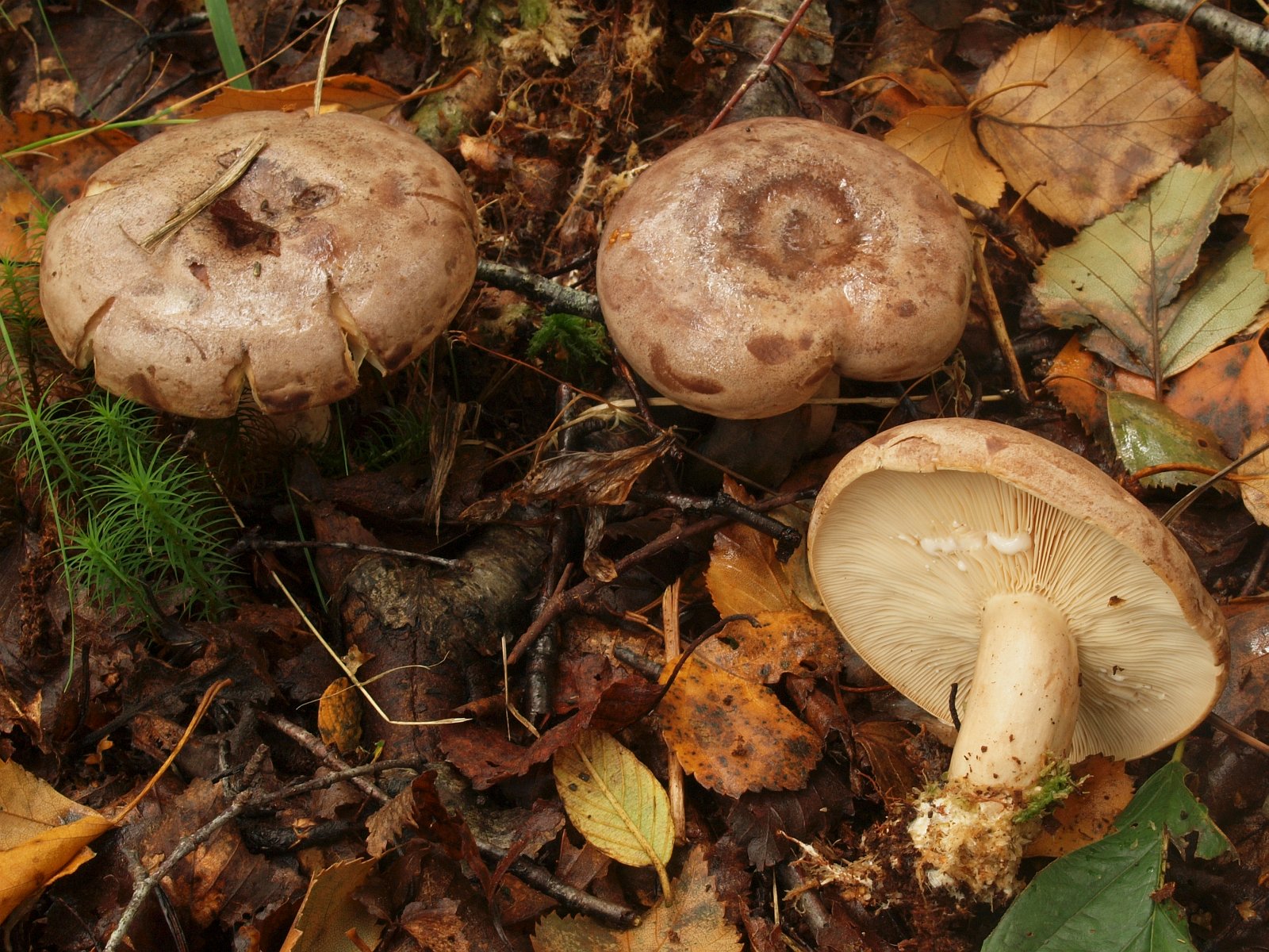 Jung und alt zeigte sich der Graufleckende Milchling (Lactarius vietus), dessen Milch sich beim Eintrocknen graugrün verfärbt.