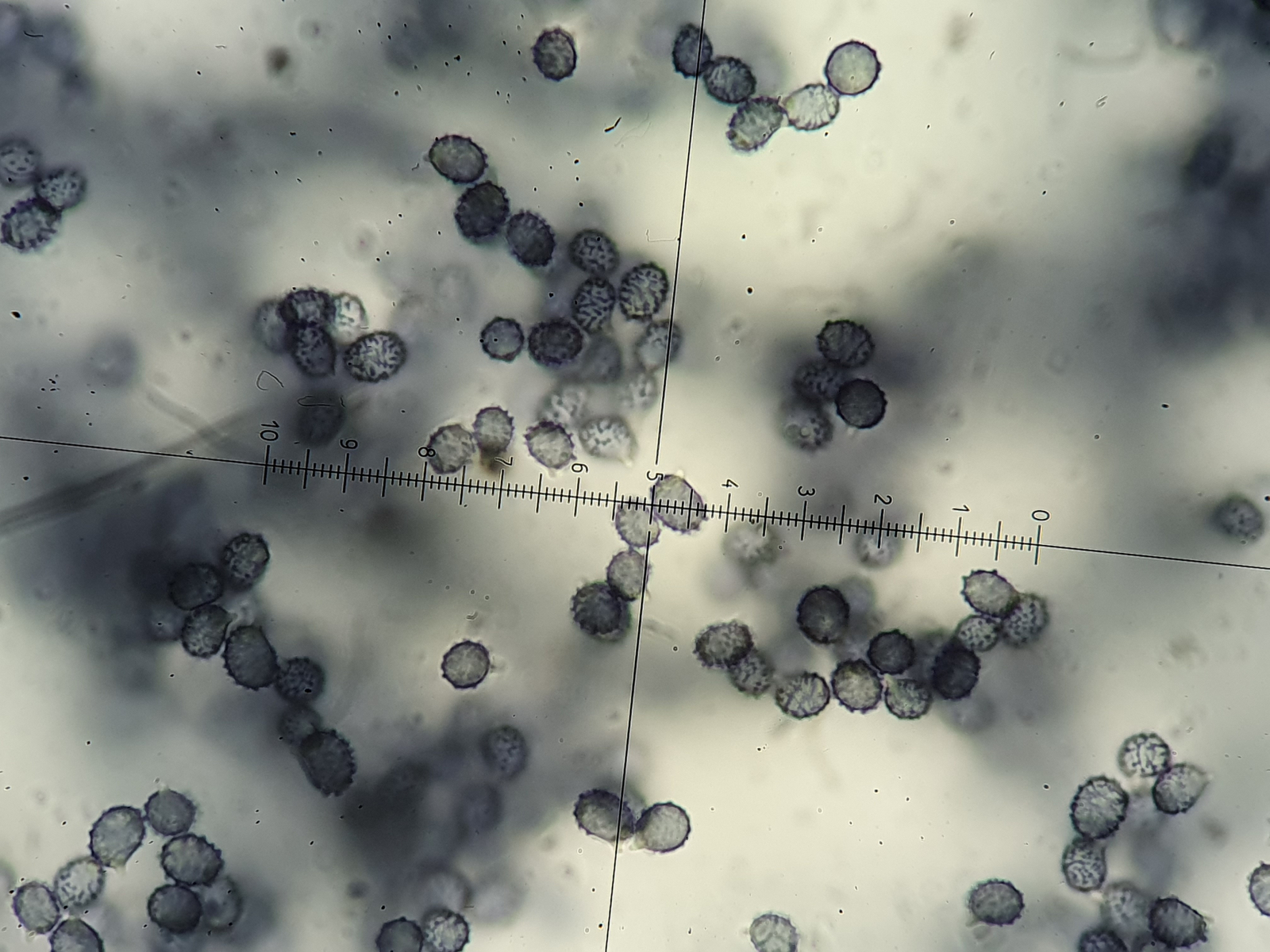 Sporen im Mittel 7x5 (12 gemessen; Ausreiser mit 6-8µm); teilnetzig verbunden
