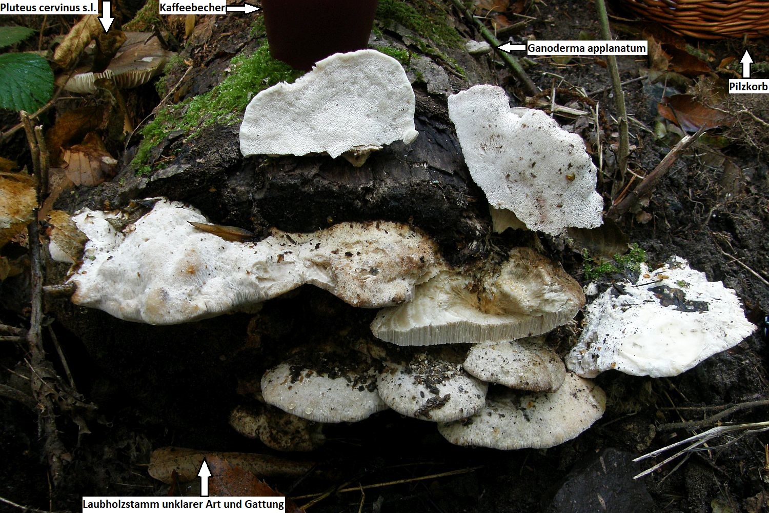 • Hallo, im Frühling hatte ich am Ende des Dorfes einen alten Frk. an einer jungen, umgefallenen Zitterpappel (Durchmesser knapp 10 cm) gefunden. Jetzt war ich schauen, ob die auch wachsen. Tun sie, im Trio.