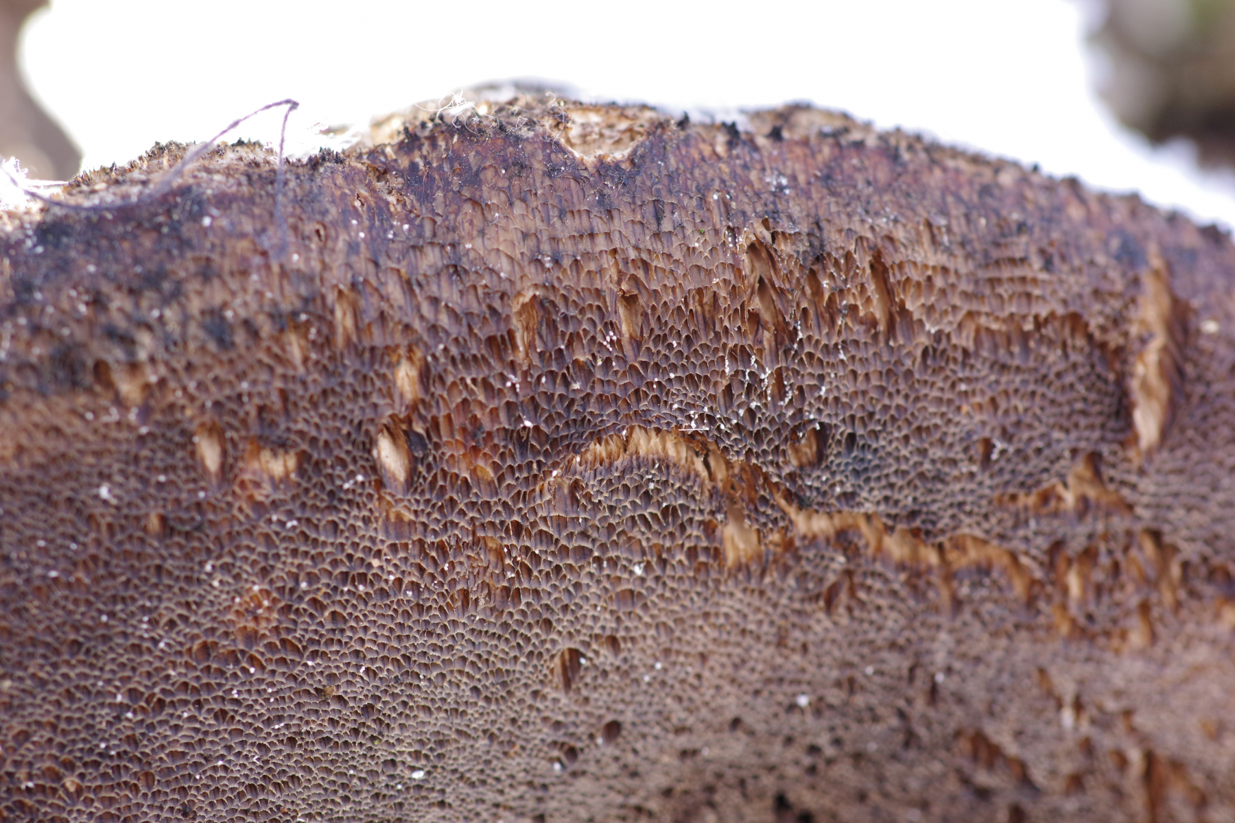 vom gleichen Fruchtkörper wie eingangs gezeigt noch Bilder von Ende März (sieht derzeit immer noch so aus), doch schon erheblich nachgedunkelt.