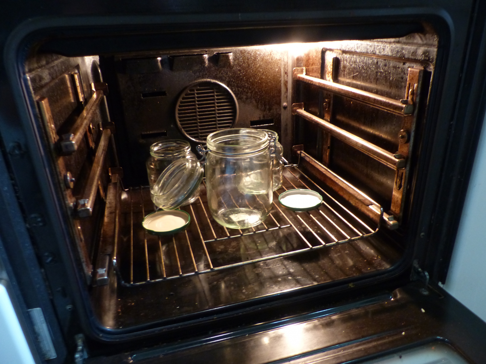In der Zwischenzeit die Gläser im Backofen sterilisieren (Dank an Alex für den Tipp).