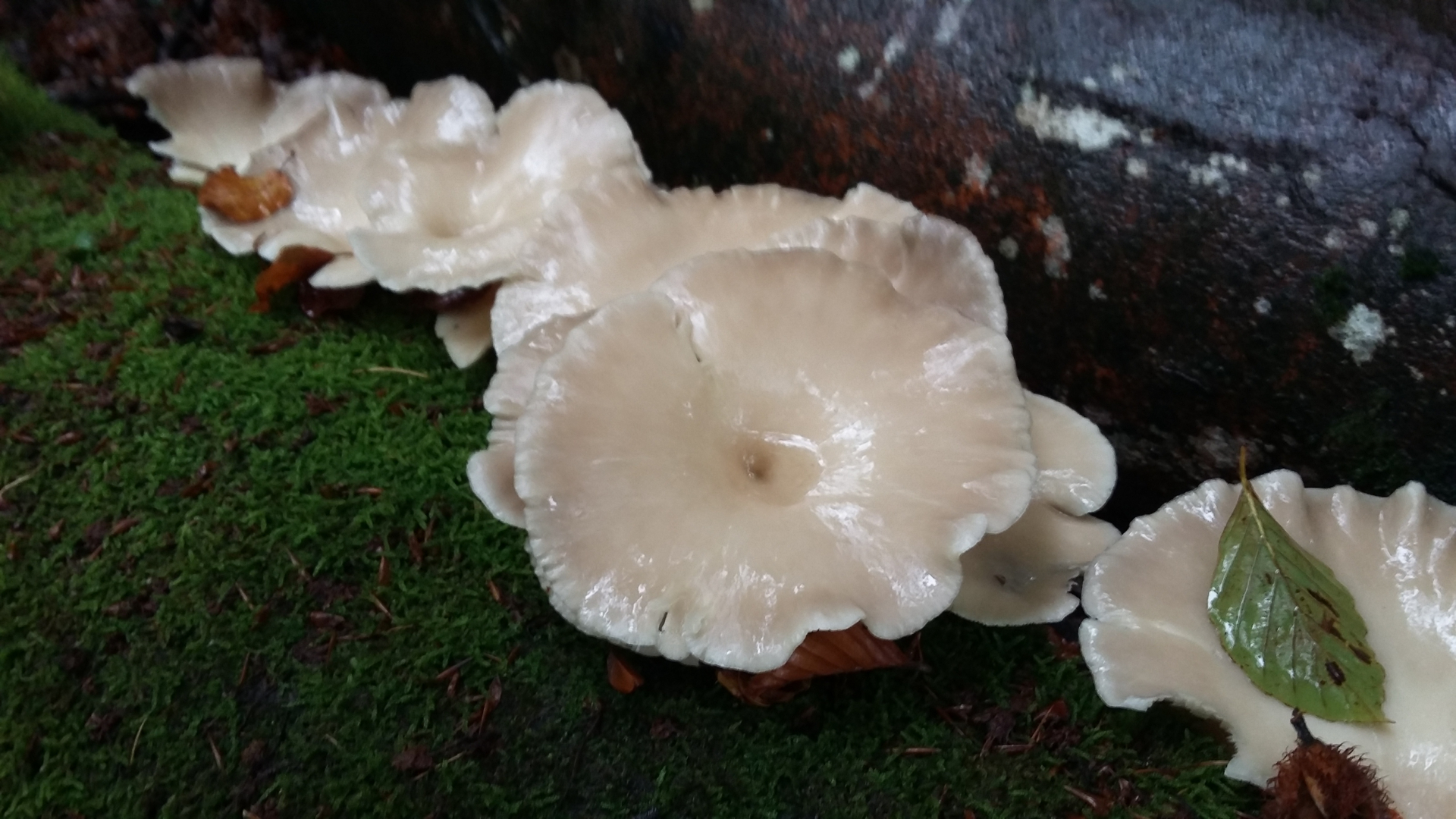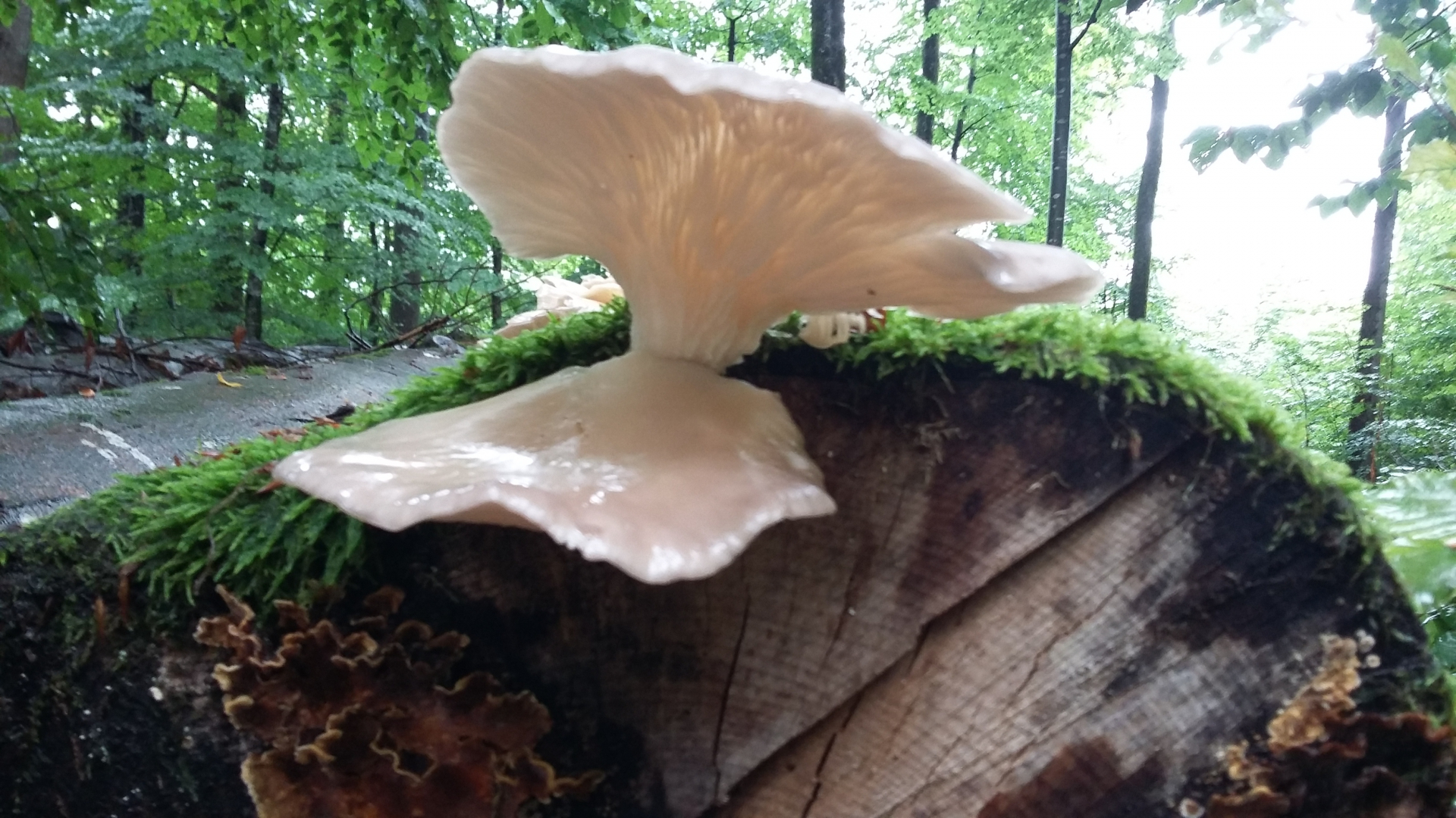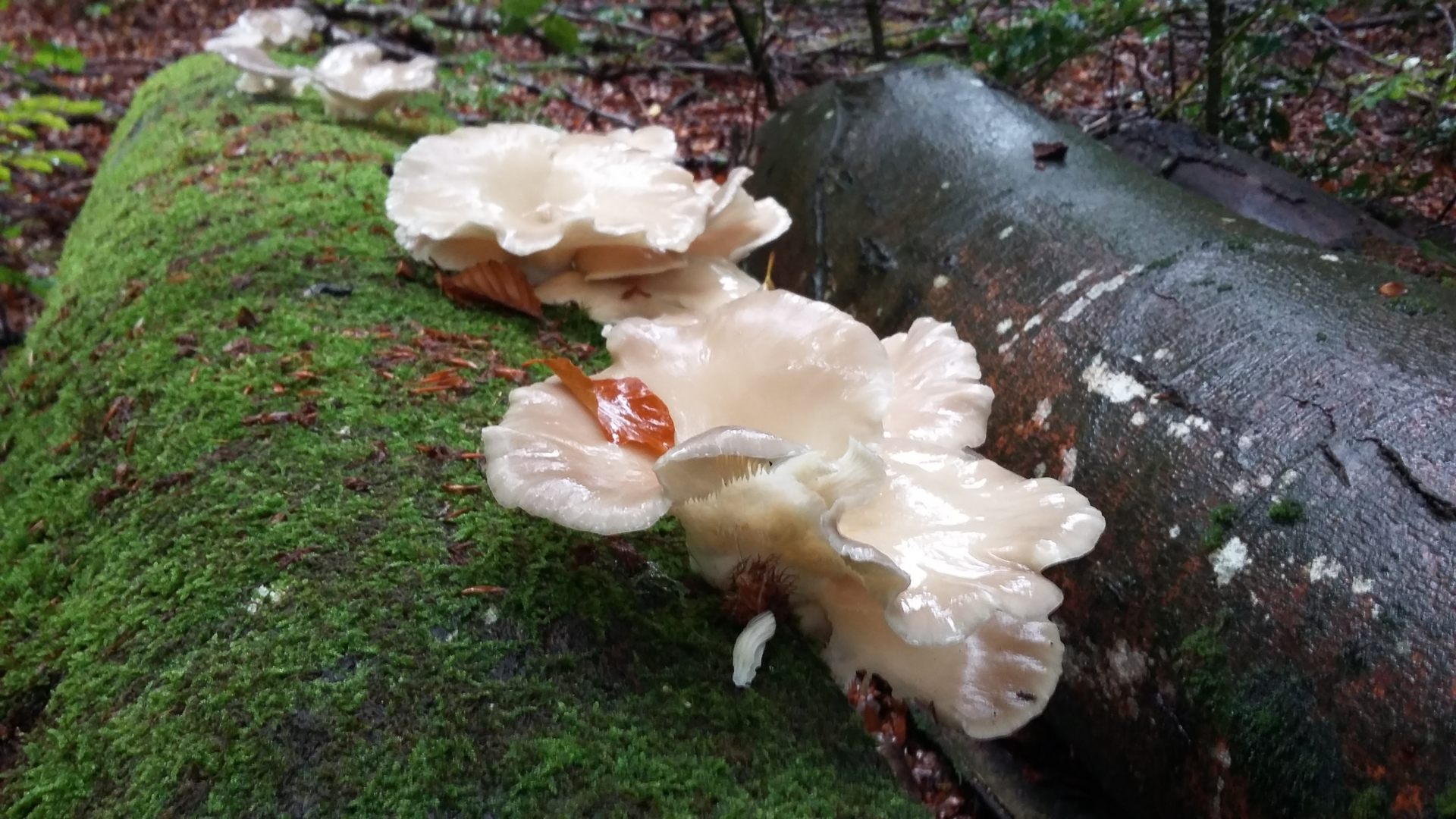 Da Laubholz (Buche) deutet es auf den Austernseitling oder Lungenseitling hin. Der Ohrförmige Seitling wächst angeblich nur auf Nadelholz. Stimmt das?