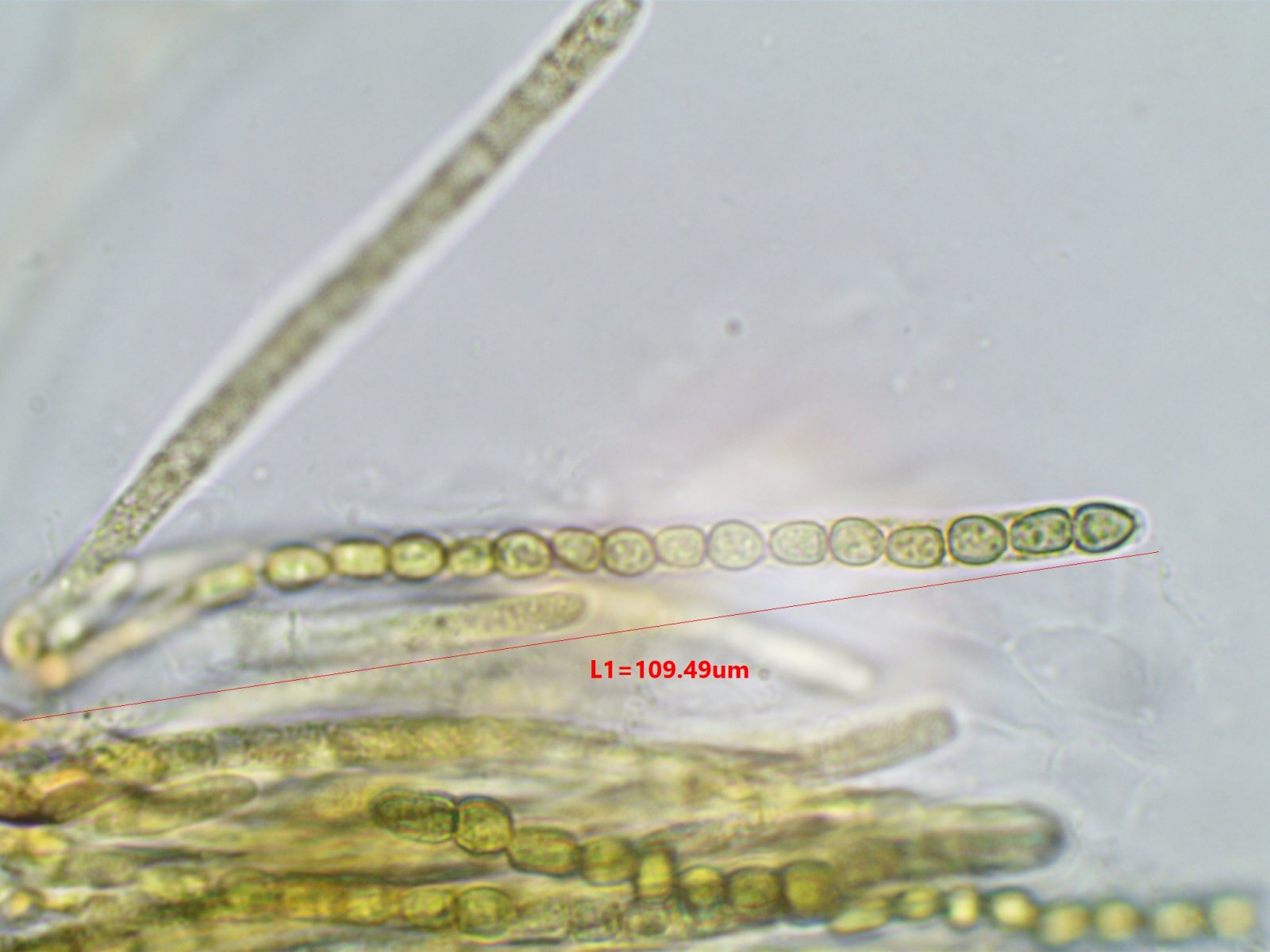 Die Asci sind inamyloid und 16-sporig. Sporenbild ist leider in Lugol. Ich habe fast eine Stunde lang versucht so ein Bild in Wasser zu machen, ohne Erfolg.