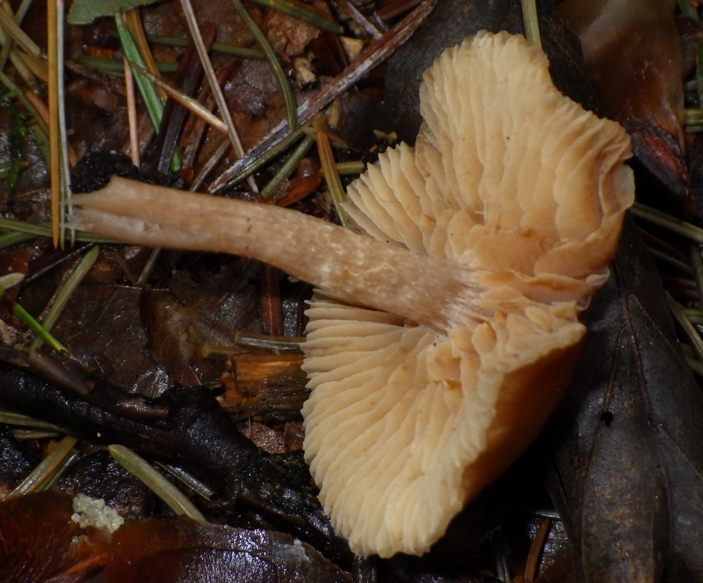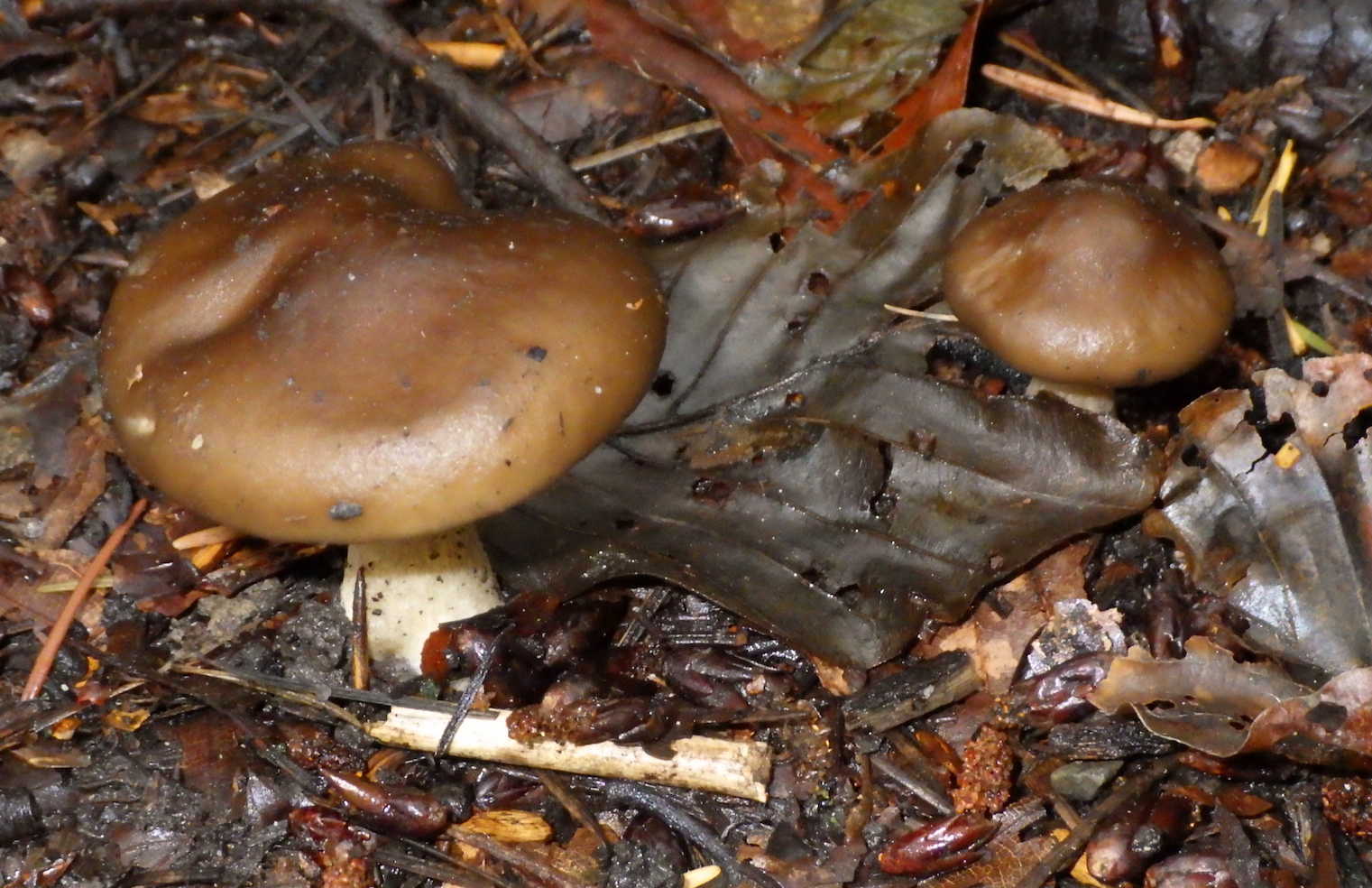 9) Hier bin ich mir unsicher , der braune Pilz hat herablaufende enge weisse Lamellen, jung eingerollte Hutränder, alt ausbreitend, irgend ein Schneckling oder Ritterling? Habe nichts passendes gefunden!