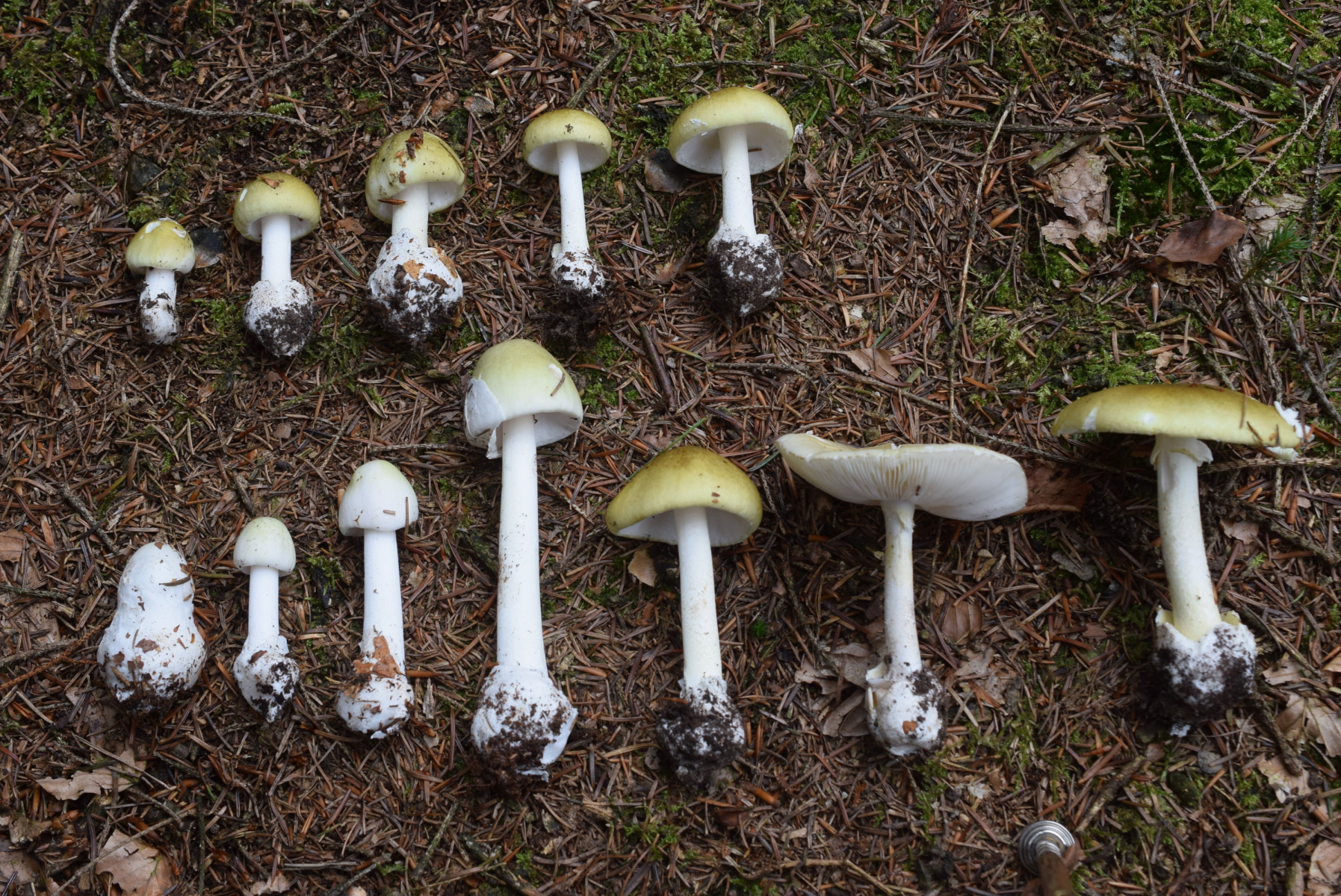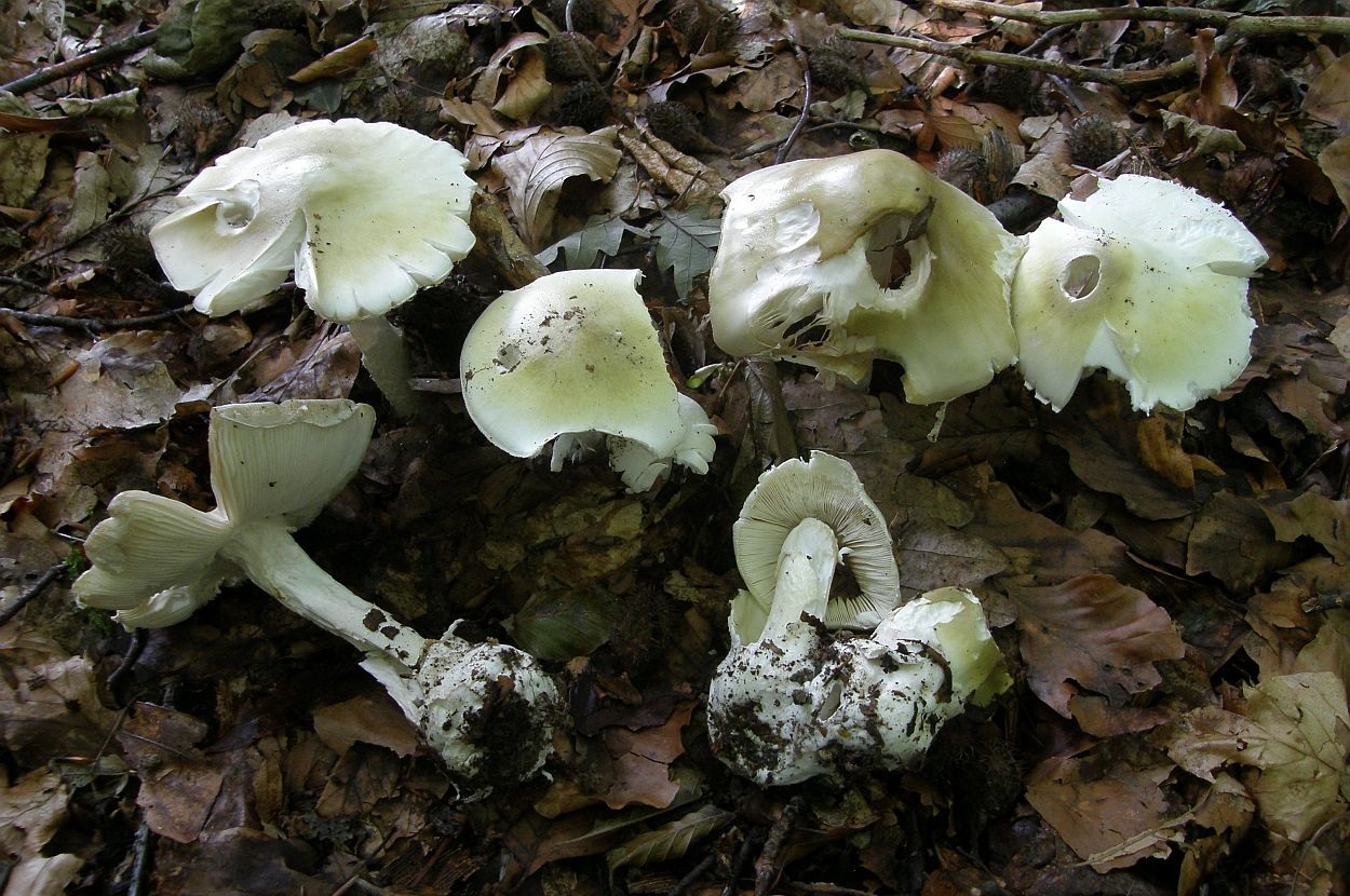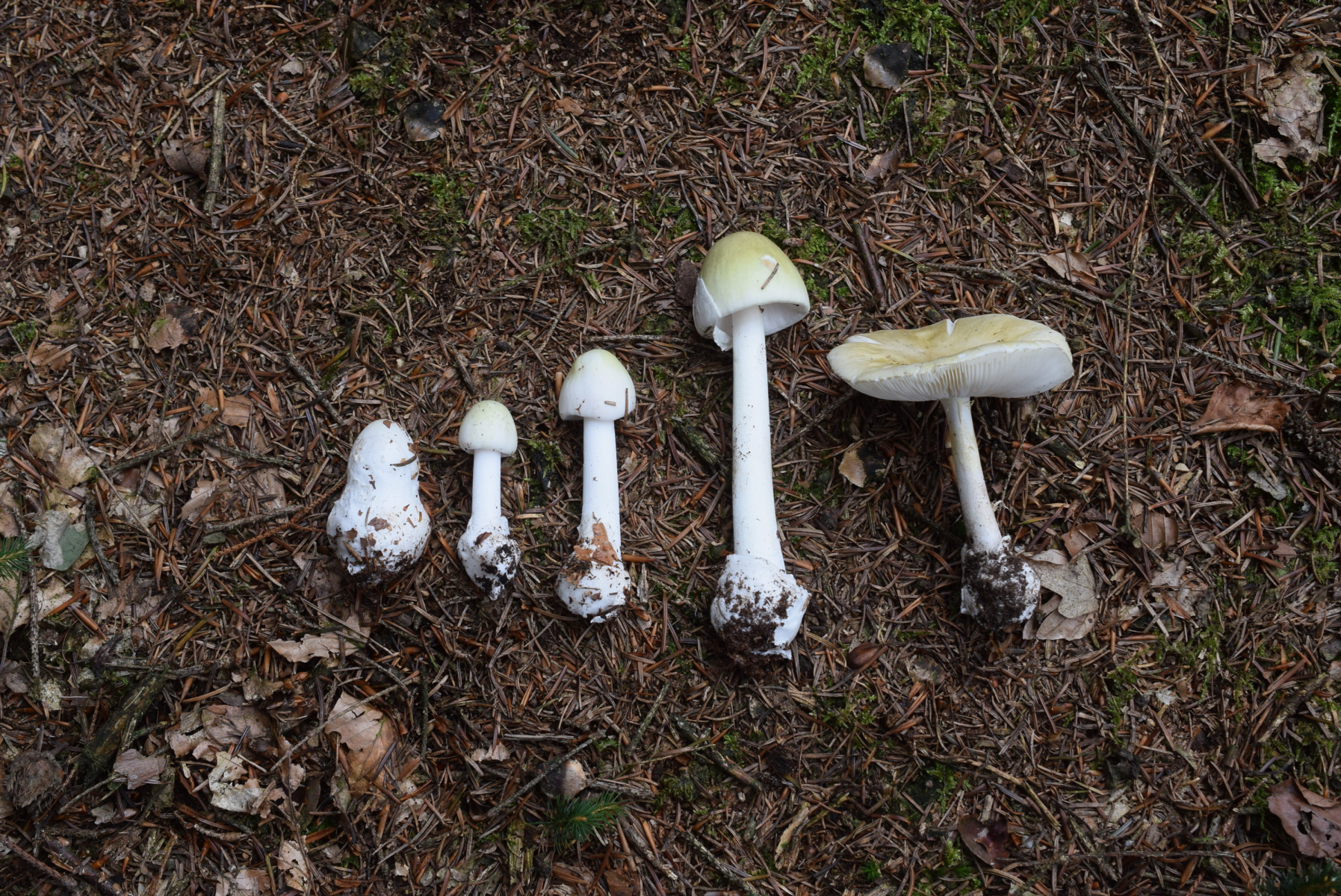 Hab in ca . bis 5 Quadratmeter mehrere weiße Exemplaren fast ein neben andern gefunden . Meine das um A. phalloides var alba gehet . Hab kein KOH Test gemachen . Mehrere Exemplaren ganz weiß ohne irgendwelche grüne oder andere Töne bei 2 Exemplaren hab etwas grünlich gesehen
