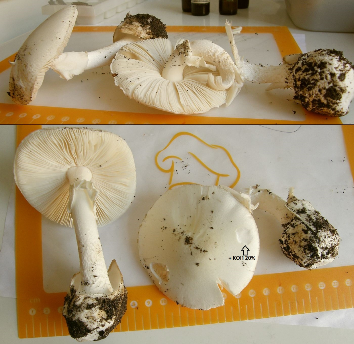 Hab vor paar Tage ein Pilz gefunden . Meine das um A. phalloides var alba gehet , aber an ein kleines Hutrand Tel ist kaum grünliche töne zu sehen . KOH Test negativ
