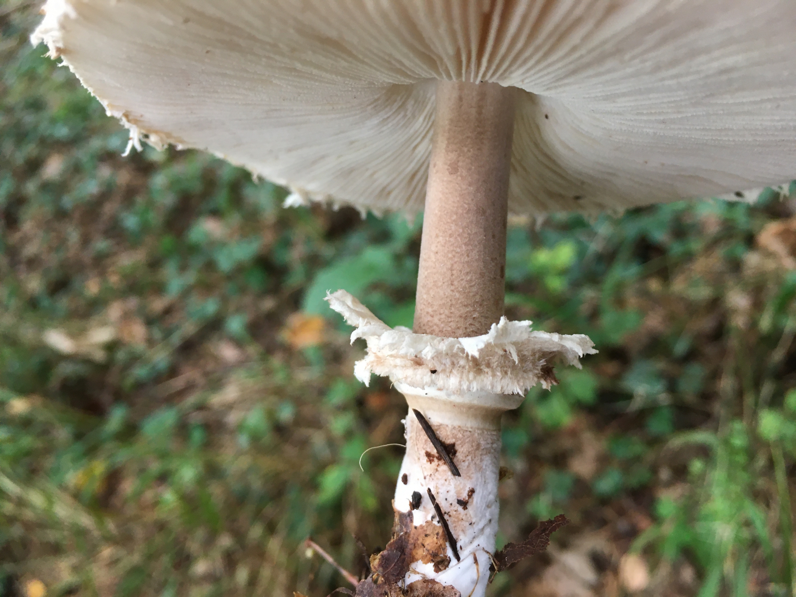 2) zwischen Ahörnern diese Schirmlinge. Nachdem ich den Ring hochgeschoben habe kam doch noch etwas Natterung zum Vorschein. Geruch angenehm. Keine Farbänderung. Hutdurchmesser ca 8-10cm. Trotz der nur kleinen Zitze würde ich den Zitzenschirmling (Makrolepiota mastoidea) vorschlagen.