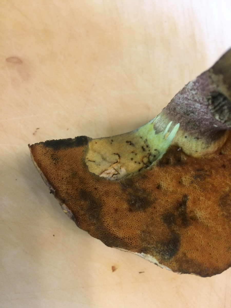 hab sie natürlich nicht gegessen. Die im Stiel tiefrote Verfärbung irritiert mich. Find ich beim Kurznetzigen und glattstieligen Hexenröhrling. Wollen aber beide nicht 100%ig passen.