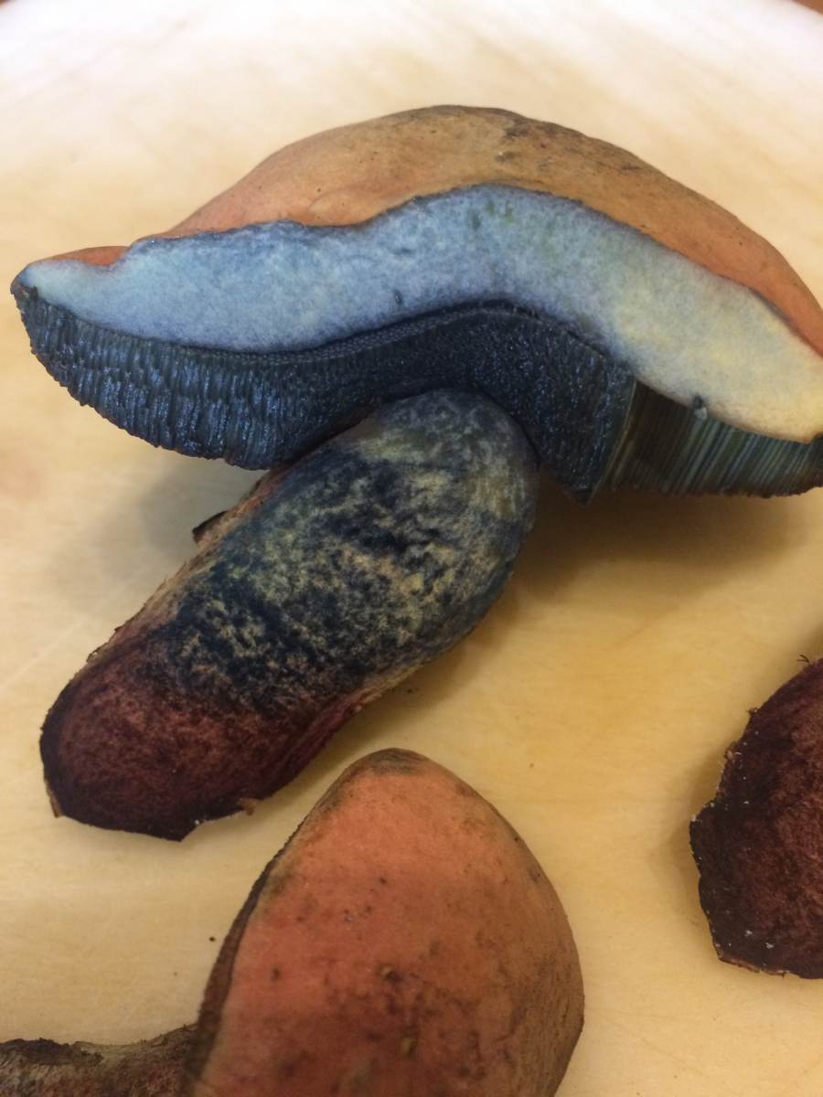 Das Rot in der Stielbasis haben sie alle... So stark kenne ich das nicht von Neoboletus erythropus, der auch mal rot in der Stielbasis sein kann, aber es meist nicht ist. Hier hilft übrigens auch die unterste Stielbasis - die ist bei Neoboletus pelzig-haarig, derbe Rhizomorphen findet man aber da nicht, während Suillellus höchstens alt ein bisserl flaumig wird, aber klare Rhizomorphen ausbildet. Hier wurden die Stielbasen teils entrindet, was alle Merkmale entfernt. Bei Bestimmlingen bitte immer alle Merkmale belassen, nichts wegschneiden... Der Aufbau der Rhizomorphen ist zudem teils gattungsspezifisch.