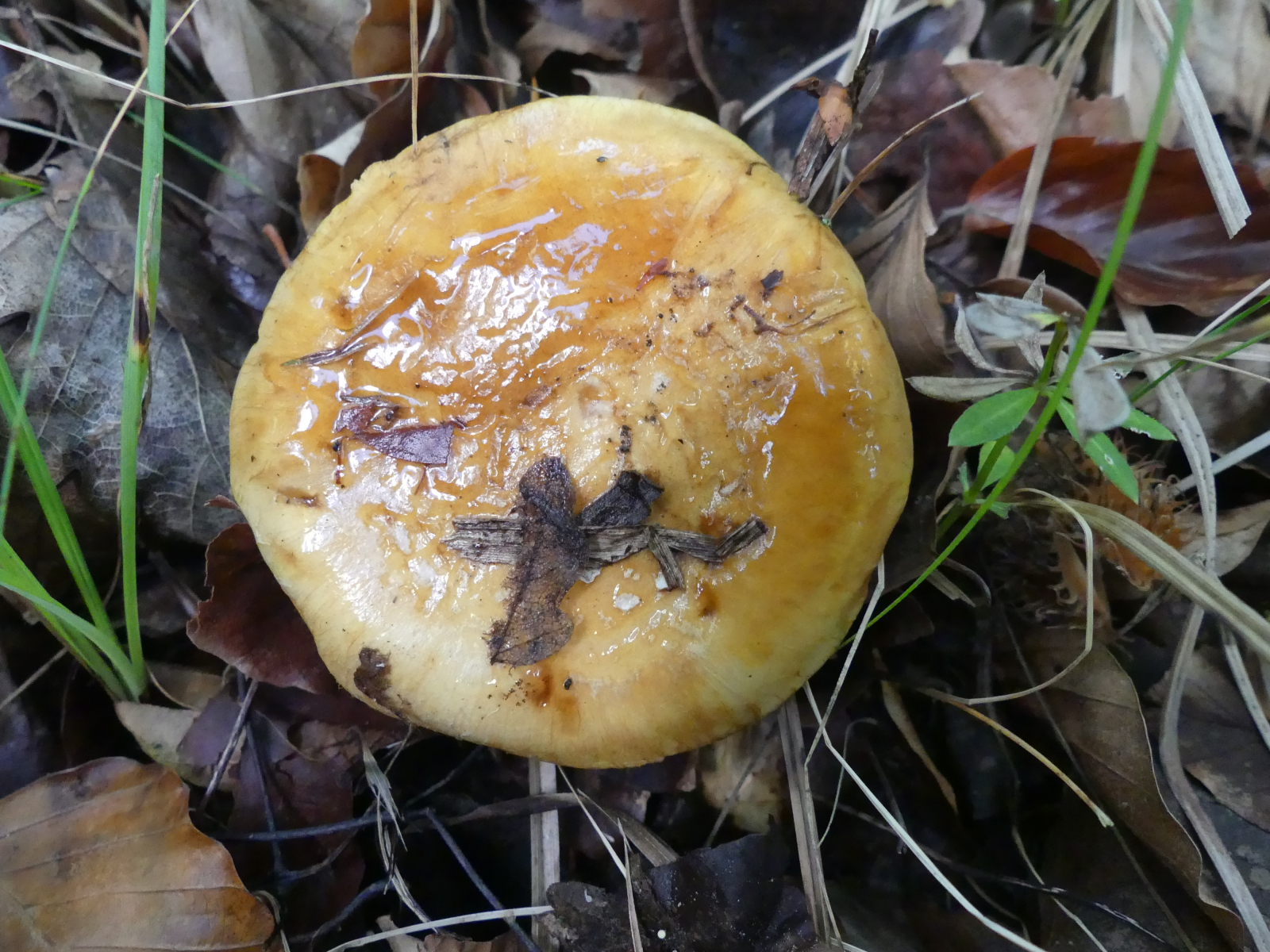 Edit: jetzt habe ich auf Bild Nr. 1 den Eindruck gewonnen, dass auf der Hutoberfläche kleine weiße Velumflocken sein könnten. Unterhalb des großen Blattrestes sieht man etwas kleines Weißes. Ist dem so? Dann käme noch etwas aus der Gegend von C. langei in Betracht, der hat oft weiße Velumflocken auf dem Hut.