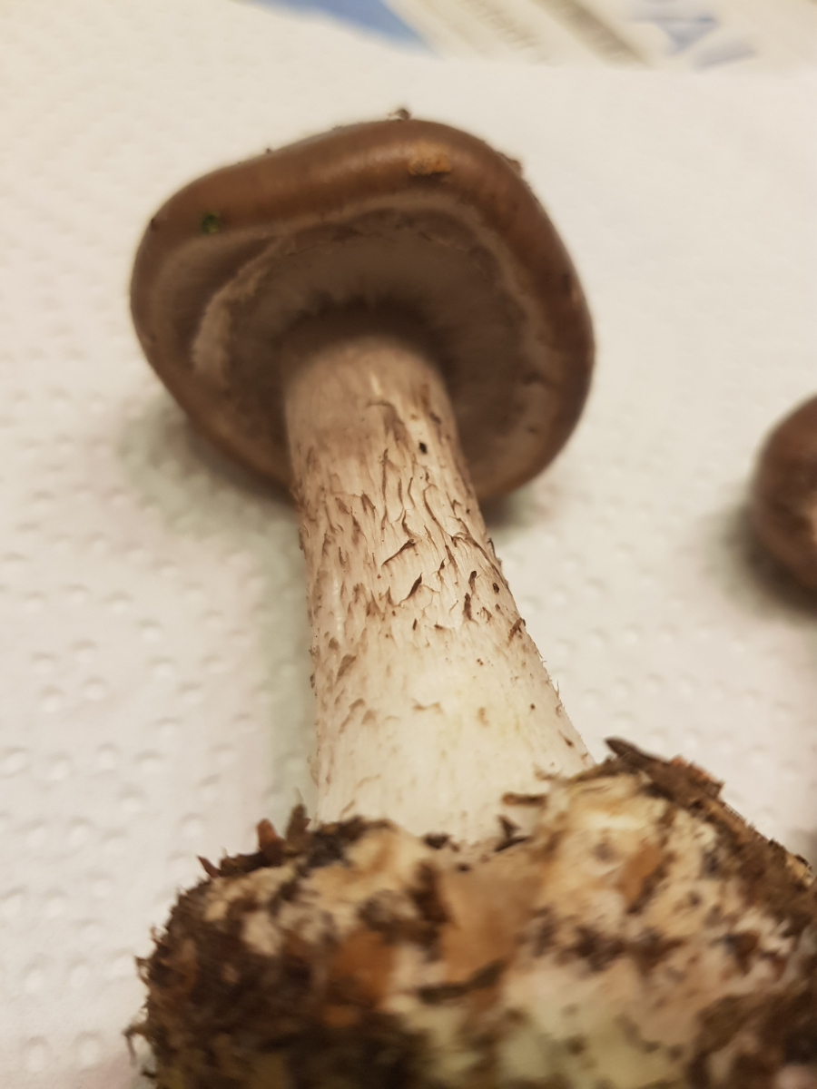 Diese Pilze habe ich heute im Fichtenhochwald gefunden. Von weitem dachte ich erst, es seien Scheidenstreiflinge, doch dann sah ich, dass sie doch größer und fester sind. Sie haben eine geriefte Manschette einen Hutdurchmesser von ca. 5 cm und riechen sehr unangenehm modrig, deshalb würde ich sie auch auf keinen Fall essen wollen.
