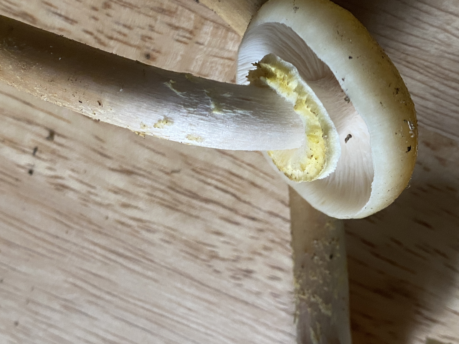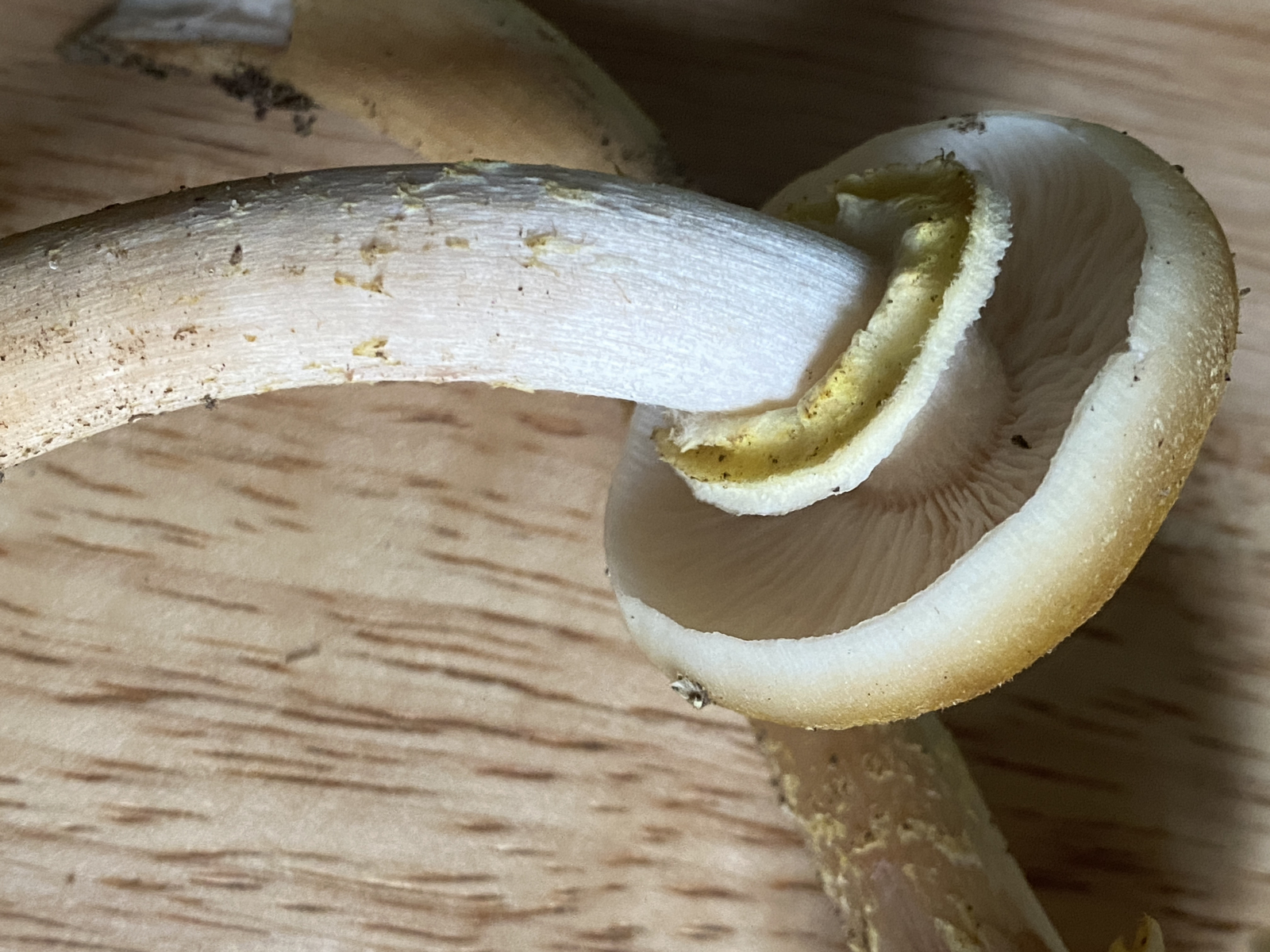 Ist das der Honiggelbe Hallimasch? Geruch: intensiv pilzig (spermatische Note). In großem Büschel an Stubben gewachsen. Honigfarbene Hüte. Beinahe wattiger Ring.