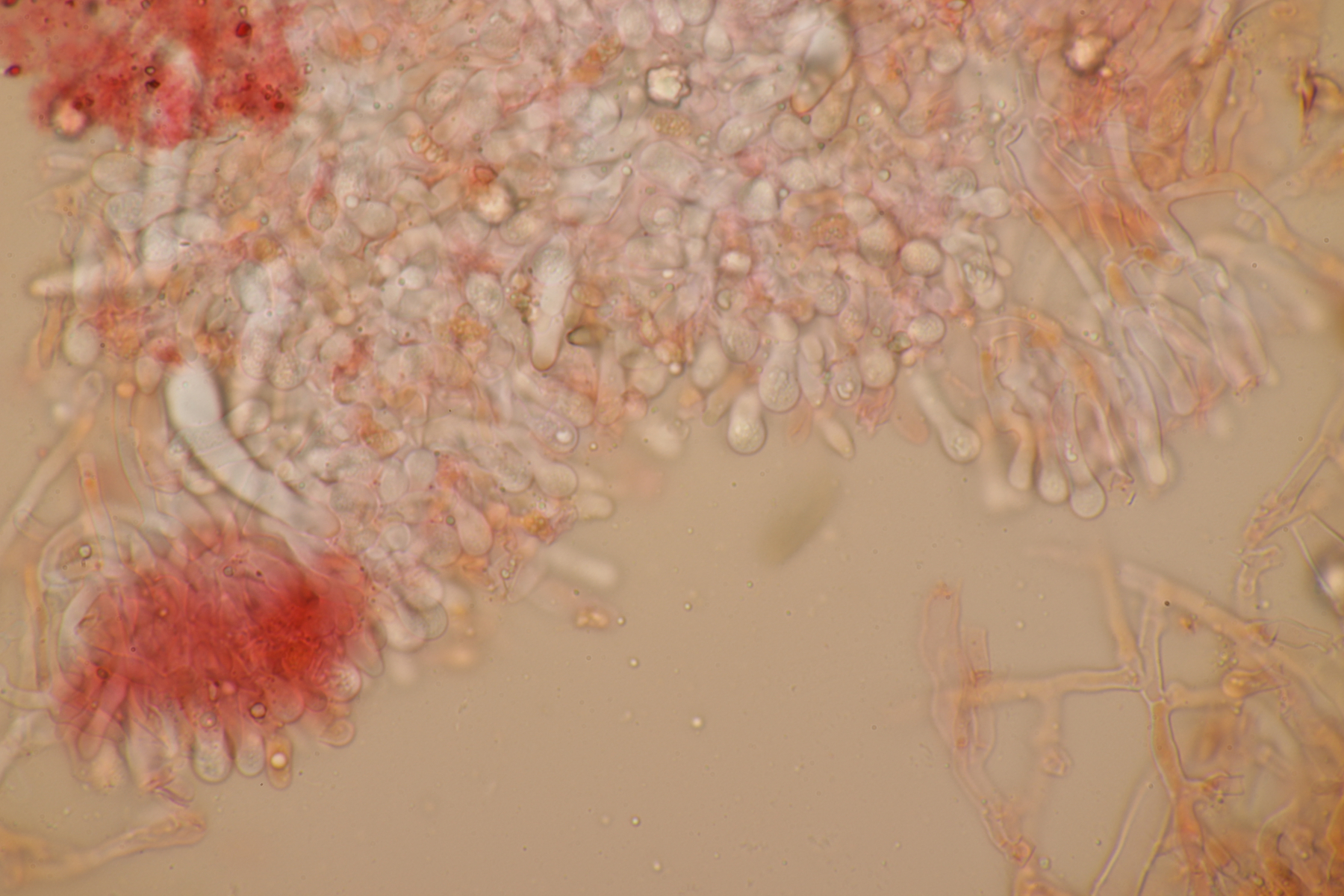 ich bin bei den durchsichtigen Glibberdingern ja auch immer sehr skeptisch. Aus meiner Sicht sprechen aber die nicht gestielten Basidien und die Sporenmaße von (14.0+-0.9) µm x (5.2+-0.3) µm, Q=2.7+-0.2 bzw. (11.6-15.5) µm x (4.5-5.6) µm, Q=2.4-3.0 für Exidia candida. Als Vergleichswerte hatte ich die Beschreibungen in Spirin et al., On some forgotten species of Exidia and Myxarium (Auriculariales, Basidiomycota), Nordic Journal of Botany (2018) herangezogen.