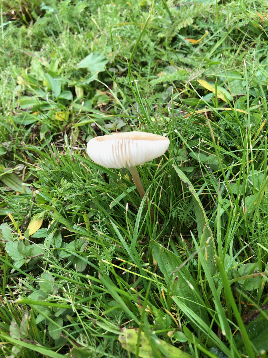mit einem Wiesenpilz komme ich nicht weiter. Wiese 450 m ü.NN, saurer Boden, Weißdorn ca. 15 m entfernt, Ahorn ca. 20 m. Geruch nicht wahrnehmbar